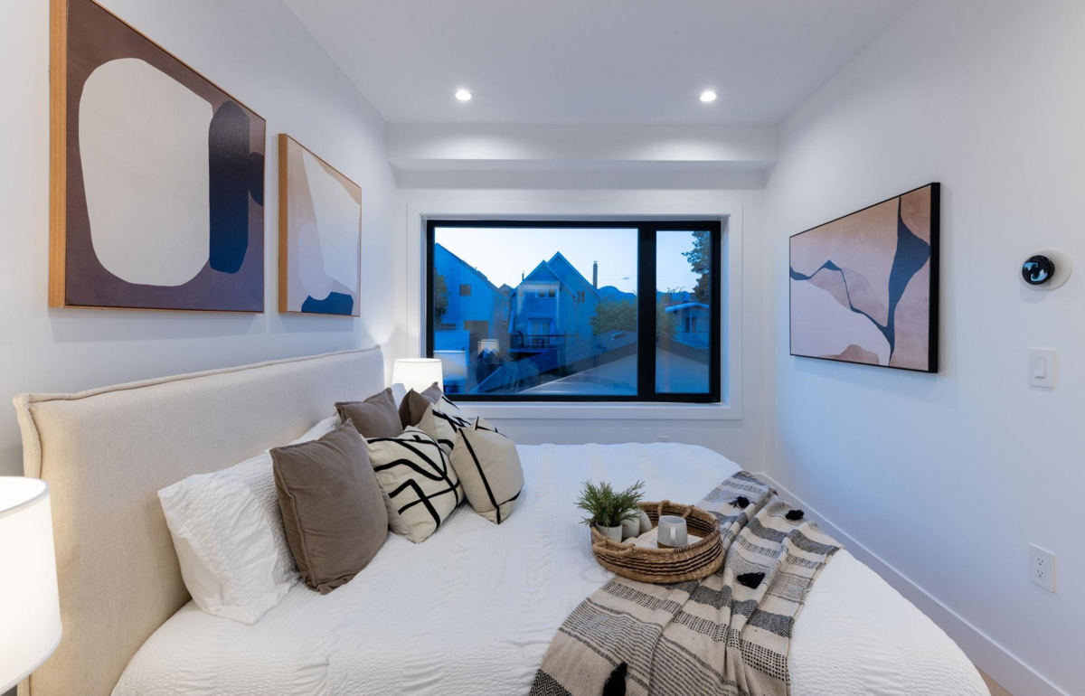 Stunning brand-new back unit duplex in Mount Pleasant! This stylish 3 bed, 3.5 bath home offers 1,468 sq ft of thoughtfully designed living space across three levels. Step inside to a bright open-concept floor plan featuring hardwood floors, elegant finishes, & a stylish kitchen w/ gas range, quartz countertops, custom cabinetry, & accordion patio doors for seamless indoor-outdoor living. Upstairs, two bedrooms w/ its own ensuites perfect for growing families.The top-floor boast a private retreat w/ a full ensuite & balcony w/ mountain views. Located on a quiet tree-lined street, steps to Charles Dickens Annex, Clark Park, Trout Lake, Commercial Drive, & transit. Enjoy the comfort & functionality of modern living in a sought-after neighbourhood! Open House Sun (Nov 30) 3:30 PM - 5 PM.