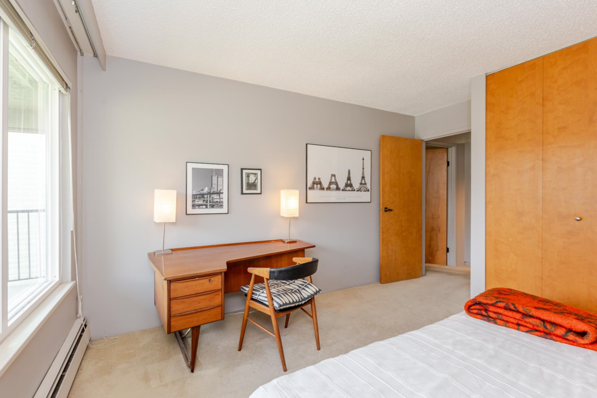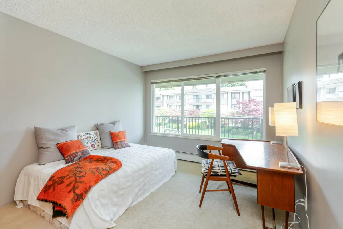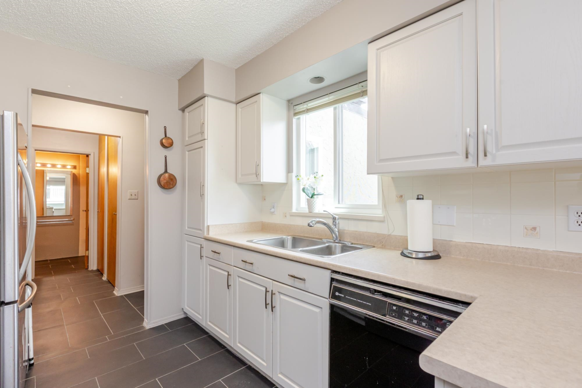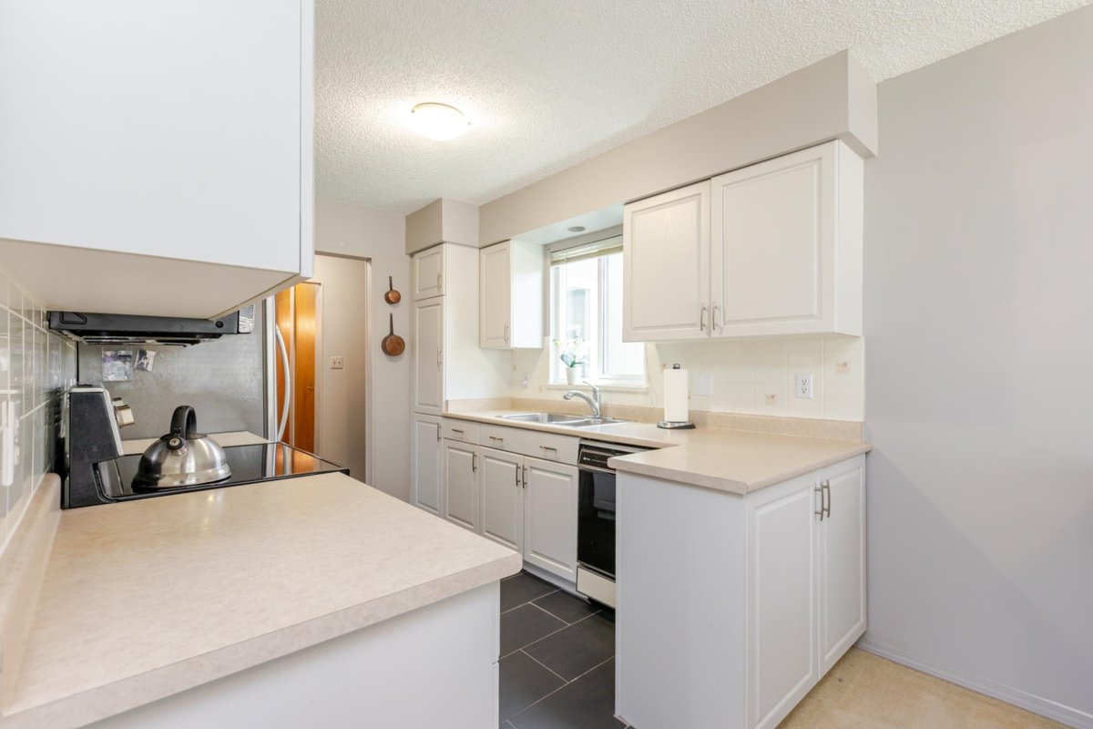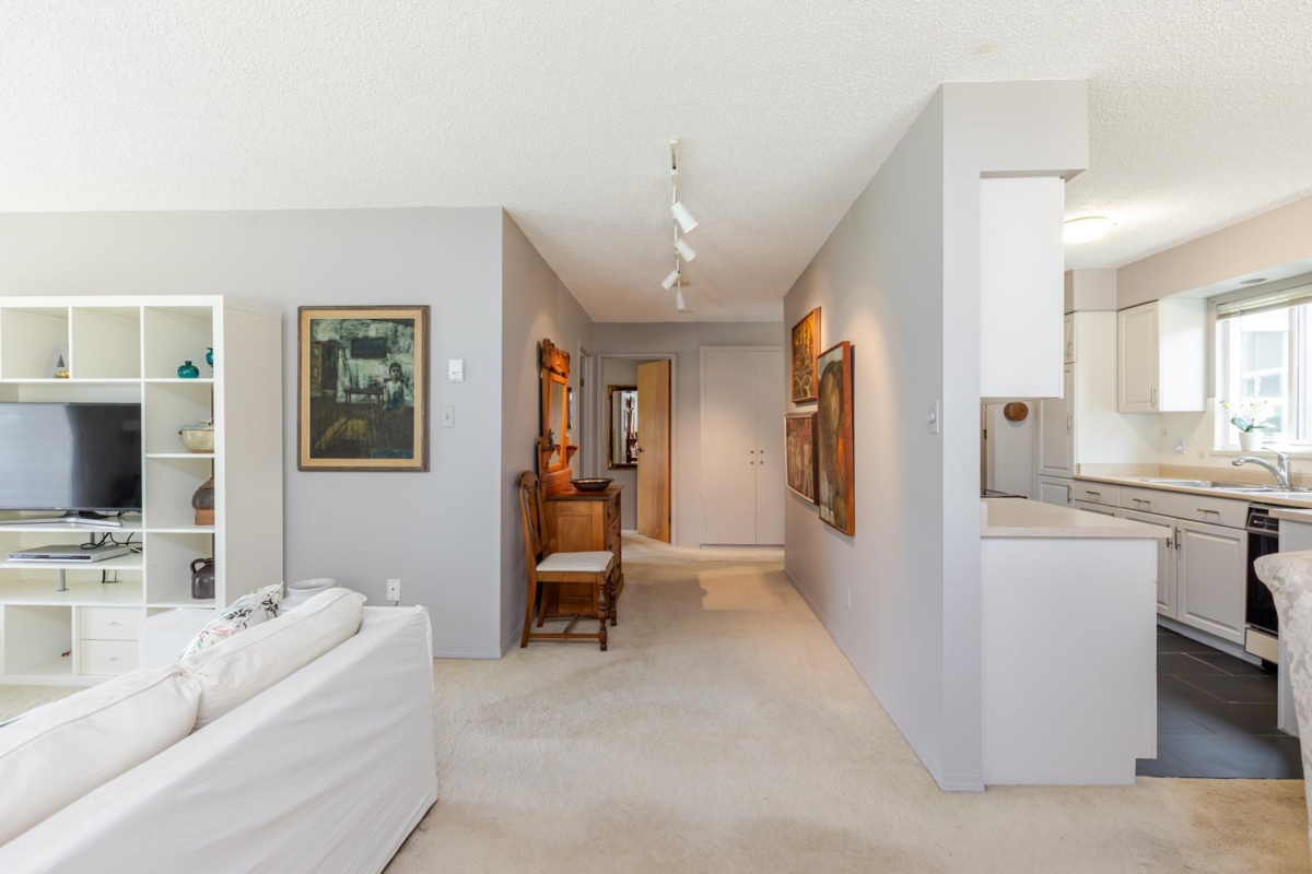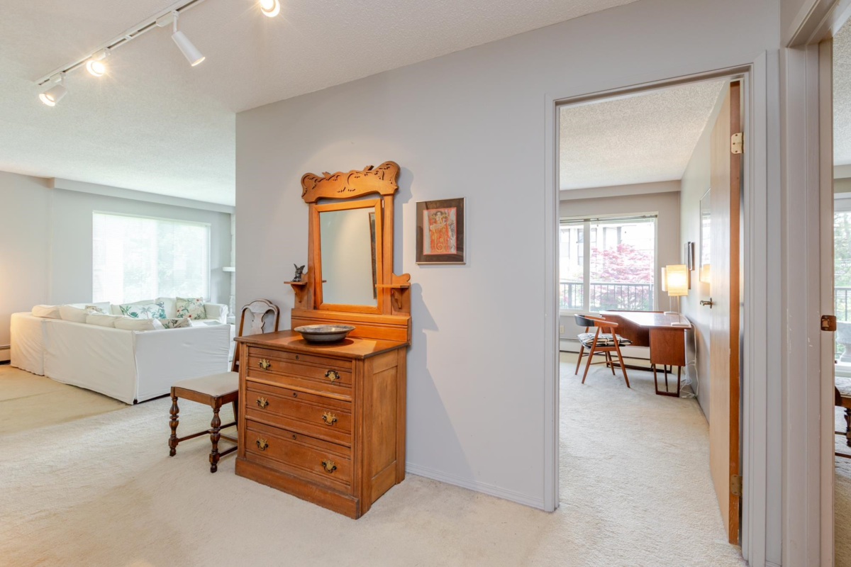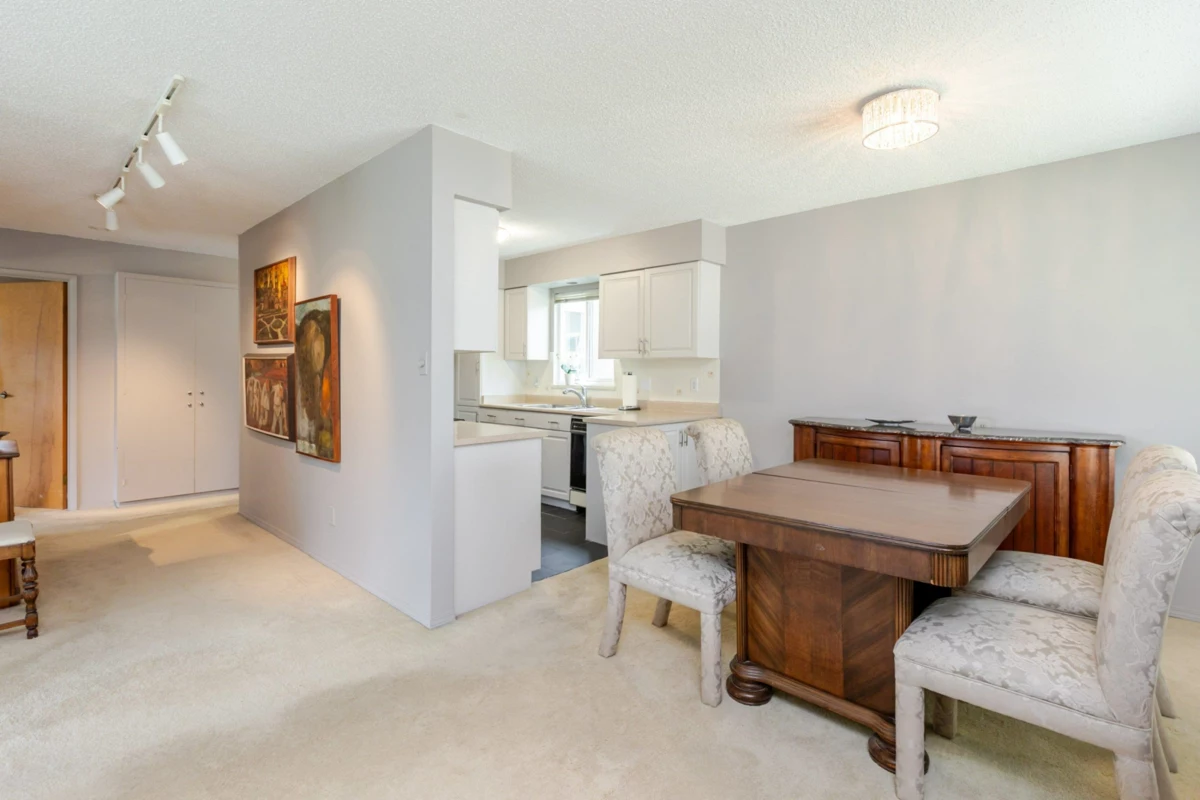 The DOGWOOD. Estate Sale in this sought-after 55+ community in the heart of White Rock. Bright, sunny, top-floor end unit boasts a 28 foot long balcony perfect for sipping coffee and watching the sun rise. This large 1117 sq ft 2 bed/1.5-bathroom suite offers ample natural light and plenty of space to relax. It accommodates house size furniture making it great for downsizing. With in suite laundry, one parking stall and one storage locker included, you'll have everything you need. Bring your decorating ideas and enjoy the best of White Rock living with its beautiful beaches, shops, and restaurants just a short walk away. Plus, with easy access to downtown Vancouver, you can enjoy the best of both worlds. Strata fees cover heat and hot water. Pets allowed. Motivated Seller!