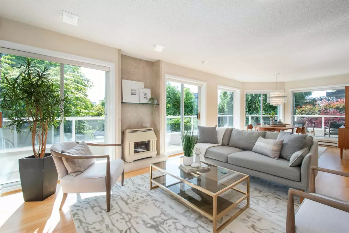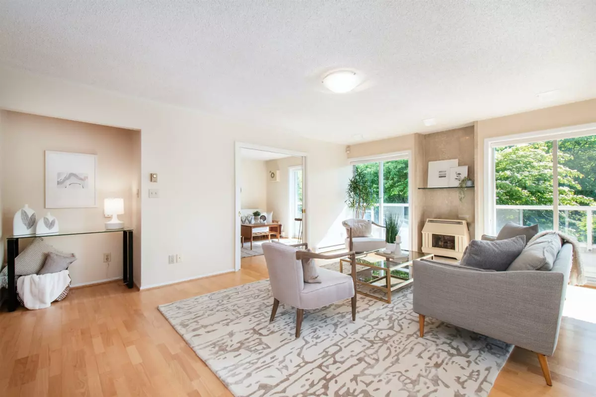 The Regent, ONE UNIT PER FLOOR Condo living with no neighbours! 3 bed, 2 bath residence offers 1,817sqft of single level living with windows on all sides & wrap-around deck that leads directly to the tranquil garden. Floorplans like this seldom come to market and offer a house like feel with exceptional privacy. Features include 2 side-by-side parking (EV charging ready), a generous 116 sqft private storage finished and heated, well managed building, guest suite and meeting room with kitchen. Located in the heart of Ambleside, just two blocks from Fresh Street Market, cafes, restaurants, the seawall, and community centre yet tucked away in a quiet residential setting. A rare West Van find. Open House CANCELLED