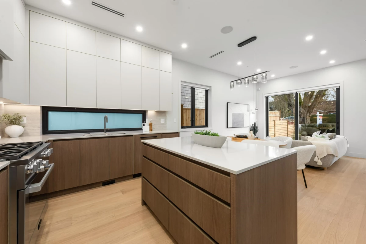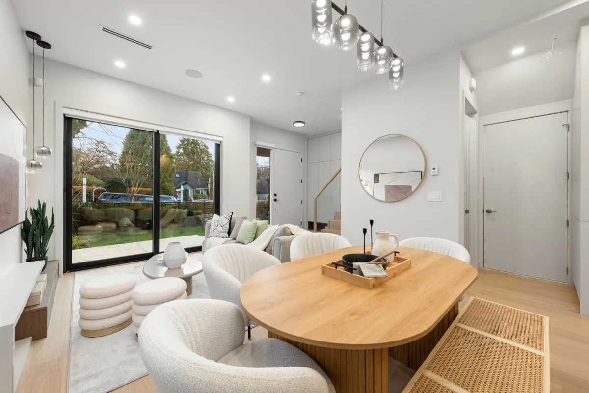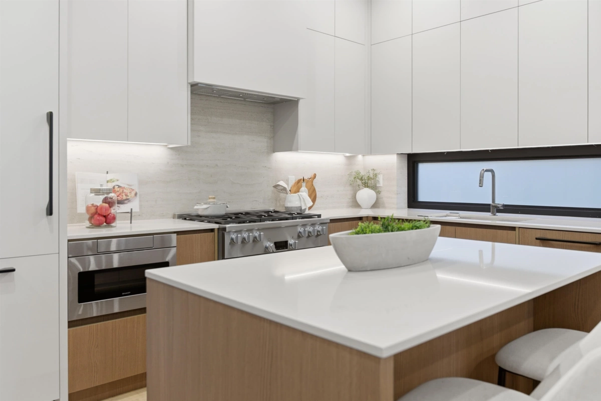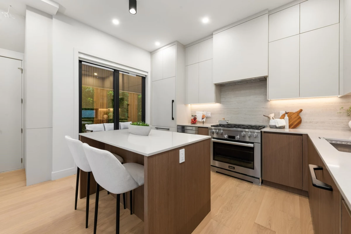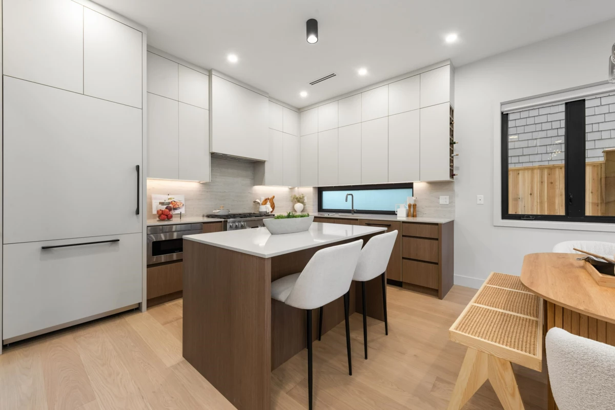 Proudly crafted by Medallion Homes and designed by VictorEric- Georgie Award winning, this south-facing Kitsilano front-unit duplex delivers refined coastal luxury just steps from Kits Beach, parks, cafés, and top Westside schools. Featuring 3 beds and 3.5 baths, it offers thoughtful design and premium finishes throughout. The gourmet kitchen includes Miele and Fulgor Milano appliances, custom cabinetry, and a sleek layout perfect for daily living and entertaining. Enjoy multiple walk-out patios, including an all-season main patio with built-in BBQ, heaters, and a custom green wall. The top-floor bedroom is a serene retreat with a private deck and spa-inspired ensuite. Full crawlspace storage and a detached garage with epoxy flooring complete this exceptional home.