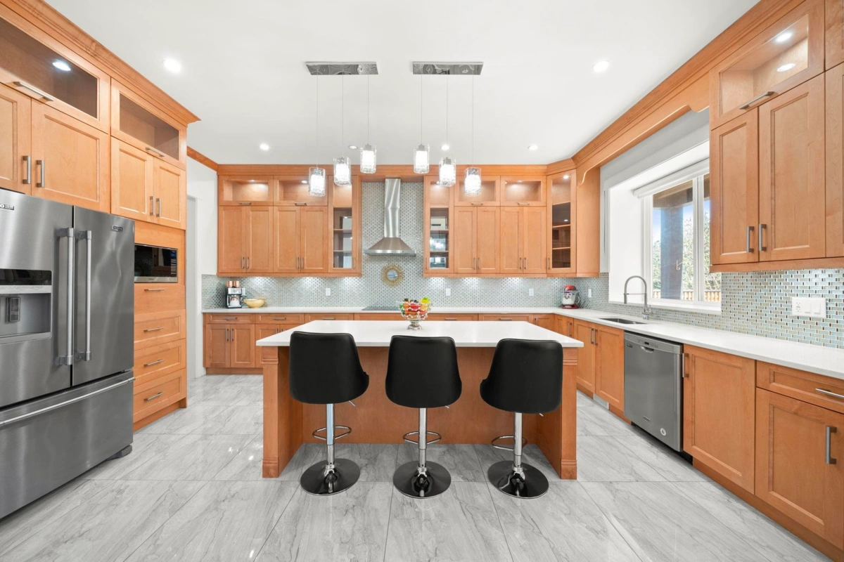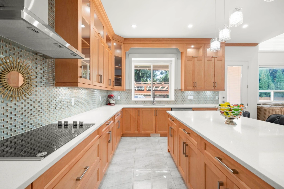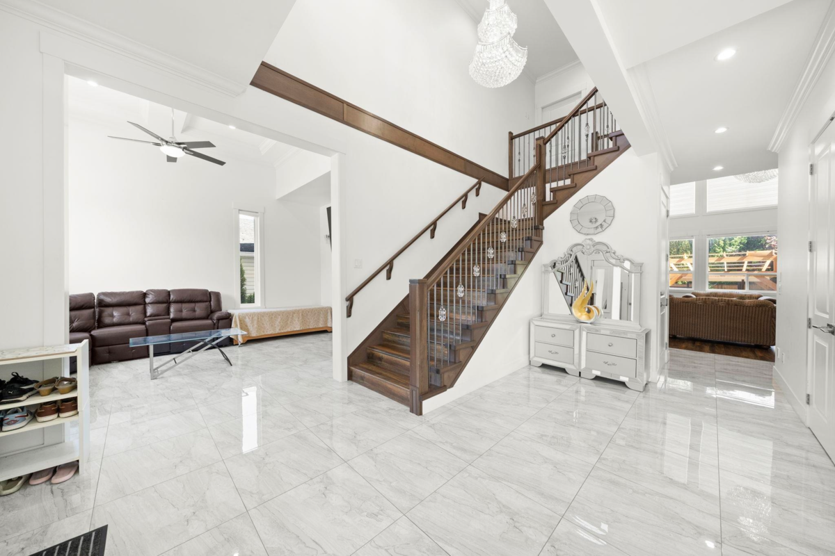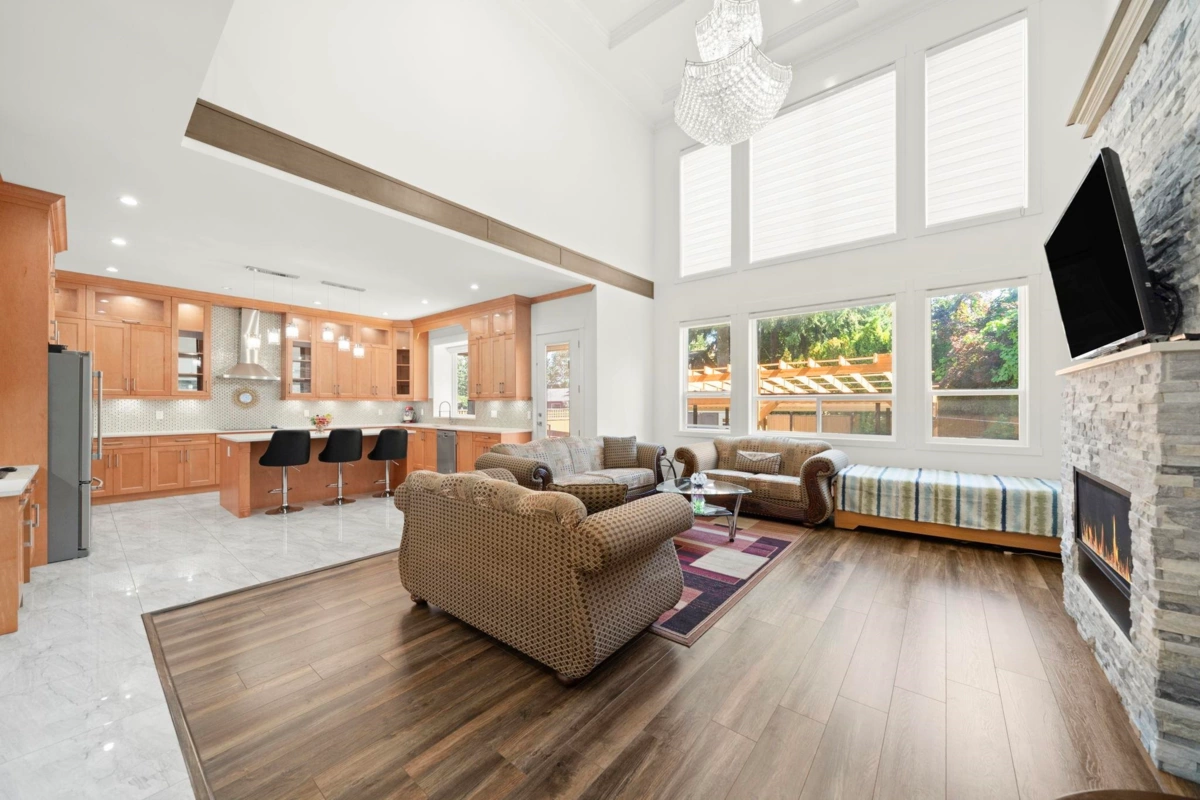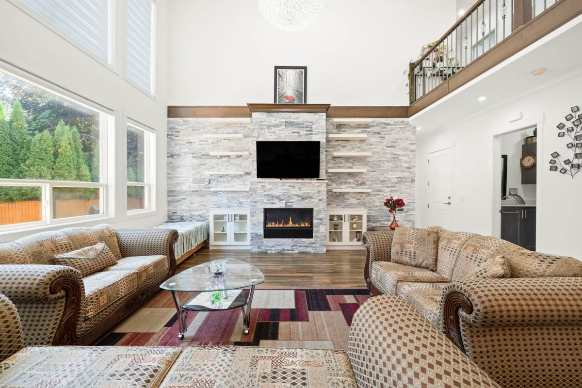 Wake up to breathtaking mountain and farm views in this stunning custom-built home loaded with upgrades and absolutely no strata fee! The bright, open-concept layout features a spacious family room with a sleek electric fireplace, while the gourmet kitchen impresses with quartz countertops, an extended island with seating, built-in microwave, stainless steel hood, and streamlined ceramic cooktop — plus a fully equipped spice kitchen with natural gas stove. Upstairs, retreat to the massive primary bedroom with spa-like five-piece ensuite and huge walk-in closet, alongside three additional bedrooms each with their own bathroom. The lower level includes two 2-bedroom suites, perfect for extended family or strong mortgage helpers. Homes like this don’t come around often — make your move!