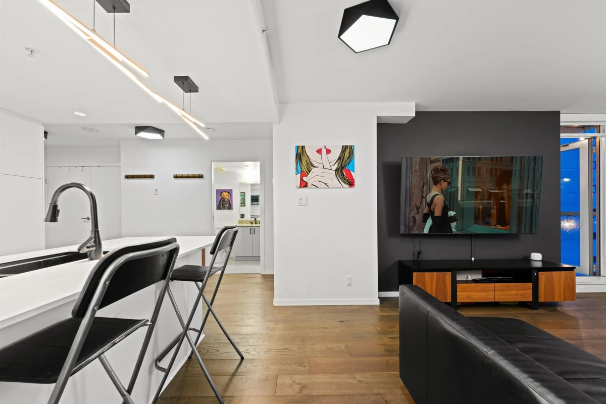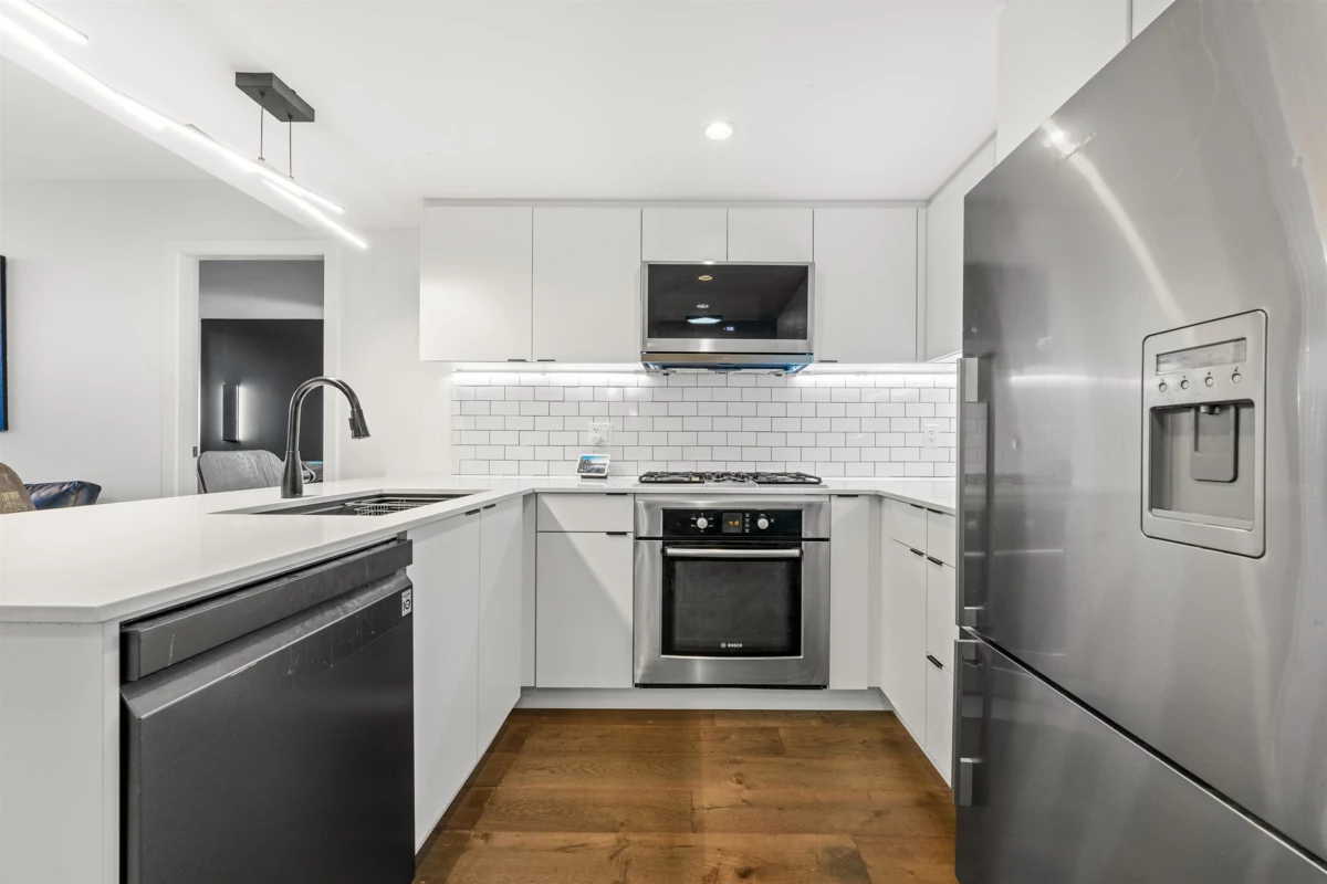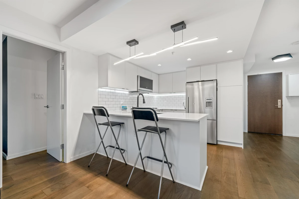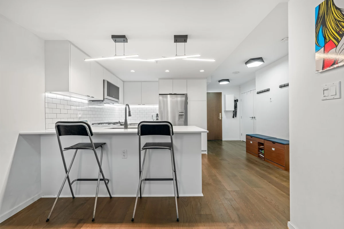 DT LIVING w/ a QUIET, FAMILY-FRIENDLY VIBE; welcome to PINNACLE LIVING FALSE CREEK! This SUB-PENTHOUSE is the one you've been waiting for! Nestled in False Creek/Olympic Village, this 2 bed/2 bath + den home hosts the best of city living w/ bonus city, water & mountain views! Boasting an open floor plan w/ no wasted space, every inch of this home was built for functionality. Includes a fully renovated kitchen w/ silestone counters, large mettalic black s/s sink, black fixtures & hardware, high-gloss subway tile backsplash, new kitchen cabinets, new LG wi-fi microwave, new LG Dishwasher, updated engineered hardwood floors, newer LG washer/dryer & more! Steps away from the Seawall, shops, cafes, restaurants, recreation, parks, transit & more! 1 parking & 1 storage locker includ.O/H CANCELLED