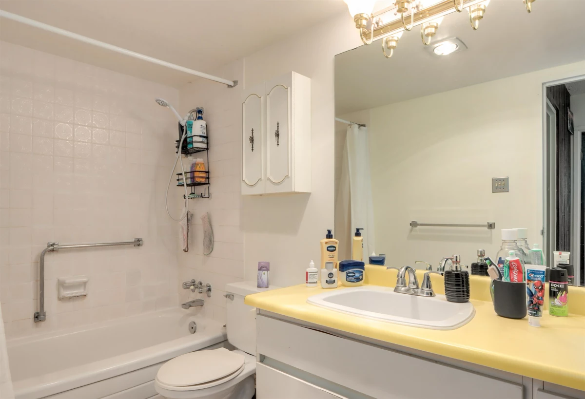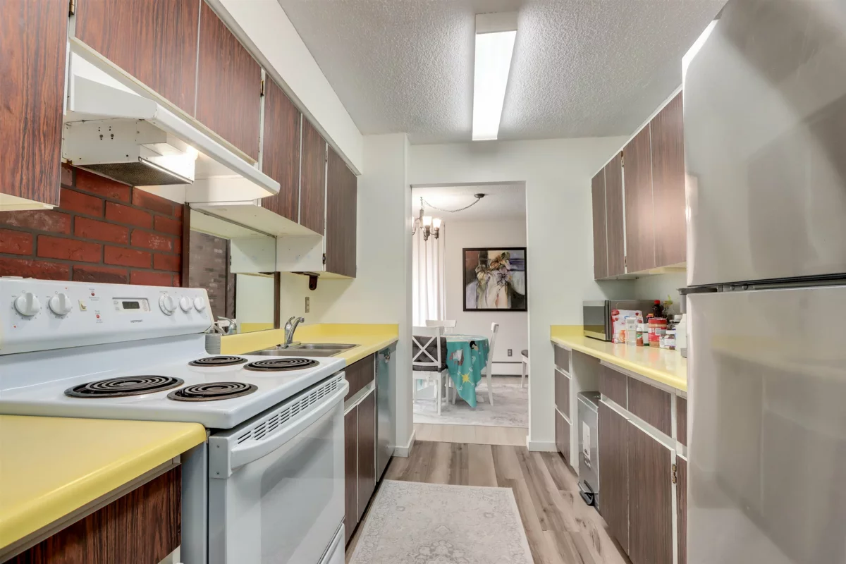 Sought after corner two bedroom in one of Woodcroft's most desired buildings - Capilano. N/W outlook to trees with good ambient light & afternoon sun. Laminate flooring installed but mostly in original condition & priced accordingly. Maintained in good condition by caring tenant. These spacious floor plans allow for four residents. Oversized insuite storage could be a home office. Building has many infrastructure upgrades including hot & cold water plumbing replacement, roof replacement, elevator rebuilding as well as complete common area renovation including the lobby area. Parkade membrance replacement is complete for this building & all paid for. New garden areas are installed & really enhance the building lifestyle. AGENTS: please read Realtor Comments BEFORE booking a showing.
