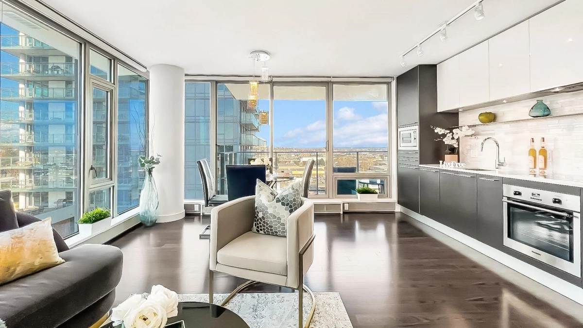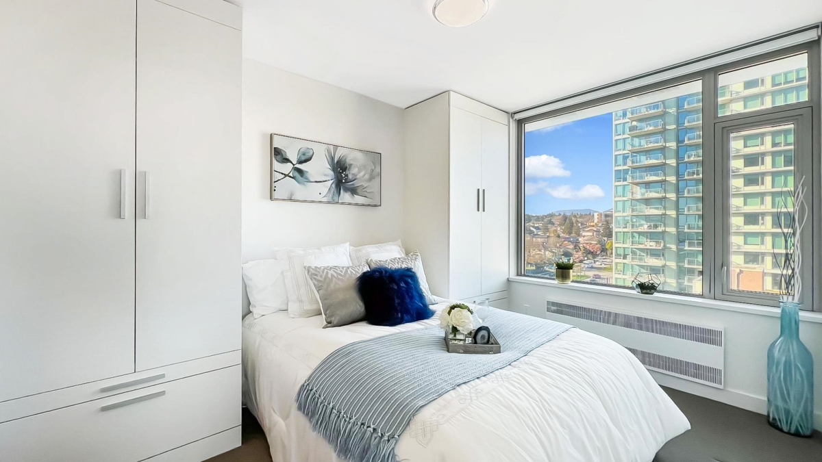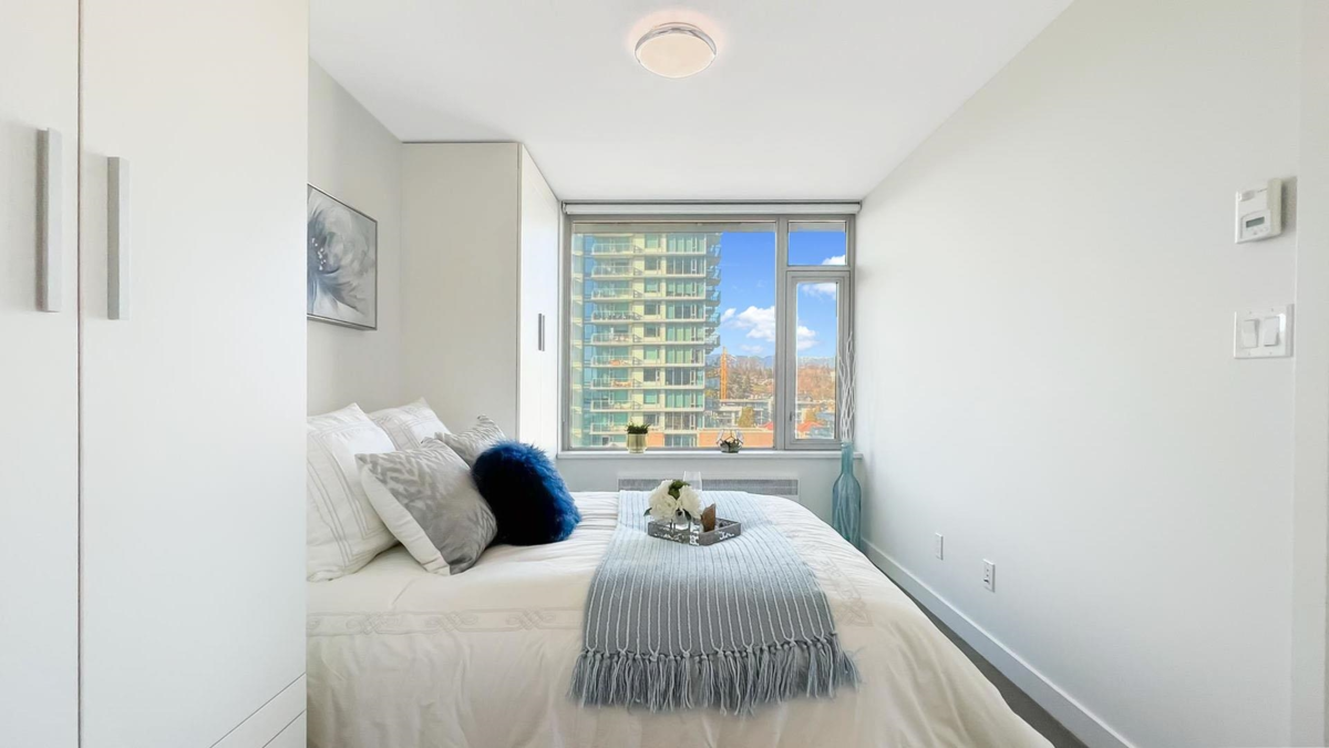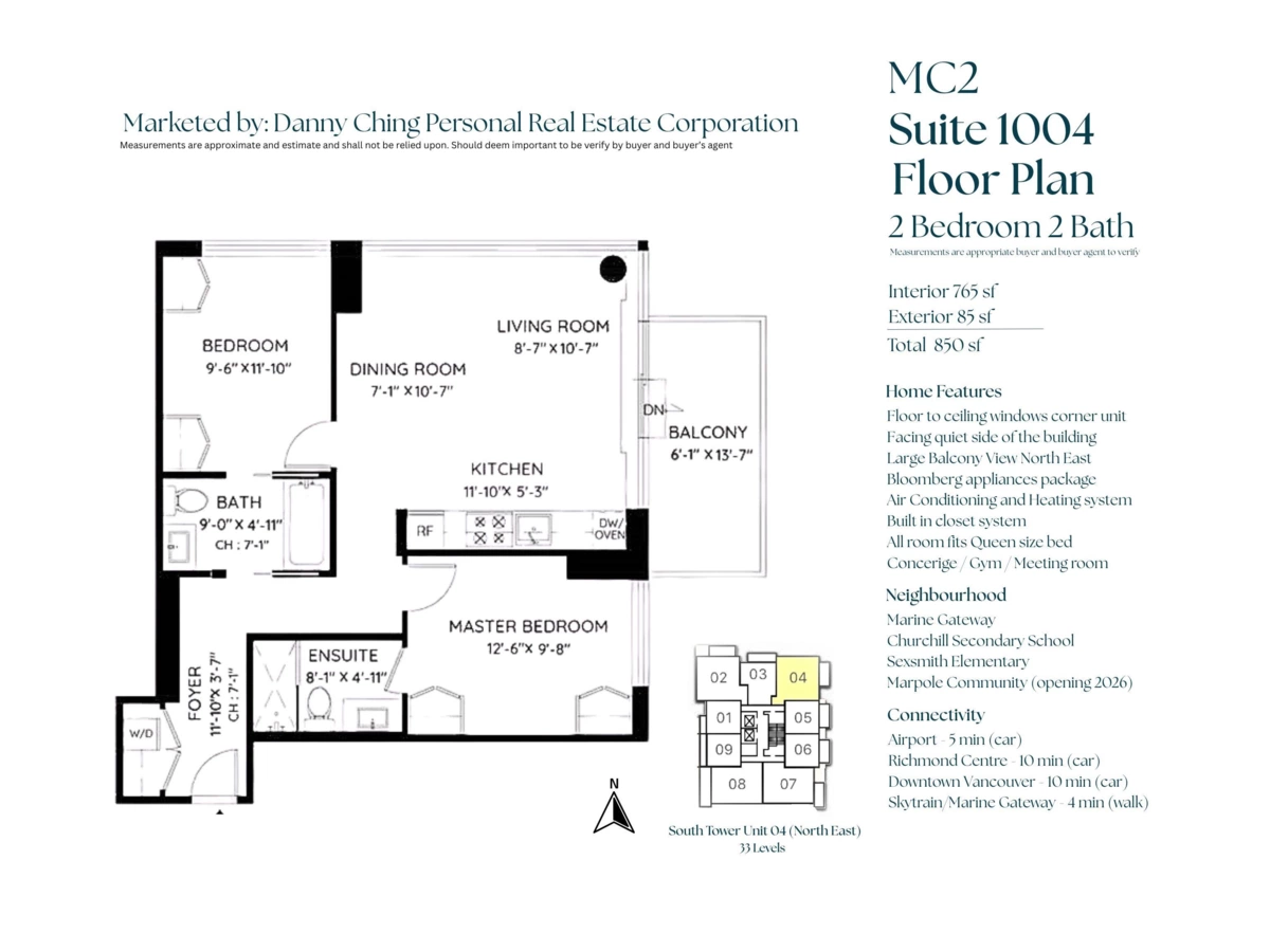 MC2 North by Intracorp. This bright NE corner 2 BED 2 BATH contemporary home offers floor to ceiling full width windows in your open concept living, dining & kitchen. Stay comfortable w/Jaga Briza cooling & heating or relax on your large covered balcony. Gourmet kitchen w/Bloomberg appliances, Caesarstone counters & marble backsplash. Armony Cucine cabs thru-out inc. custom closet systems in your non adjacent bedrooms both w/spa-inspired ensuites! Amenities inc. concierge, gym, meeting room. Minutes to Richmond & STEPS to Canada Line Skytrain, T & T, Winners, Cineplex, Starbucks, Shoppers, dining & more! 1 parking. 1 locker. PUBLIC OPEN Sat 2-4pm
