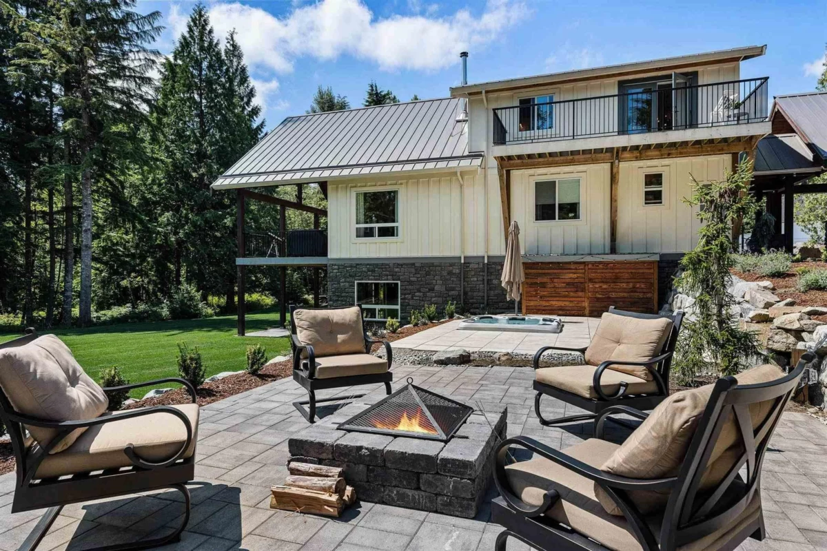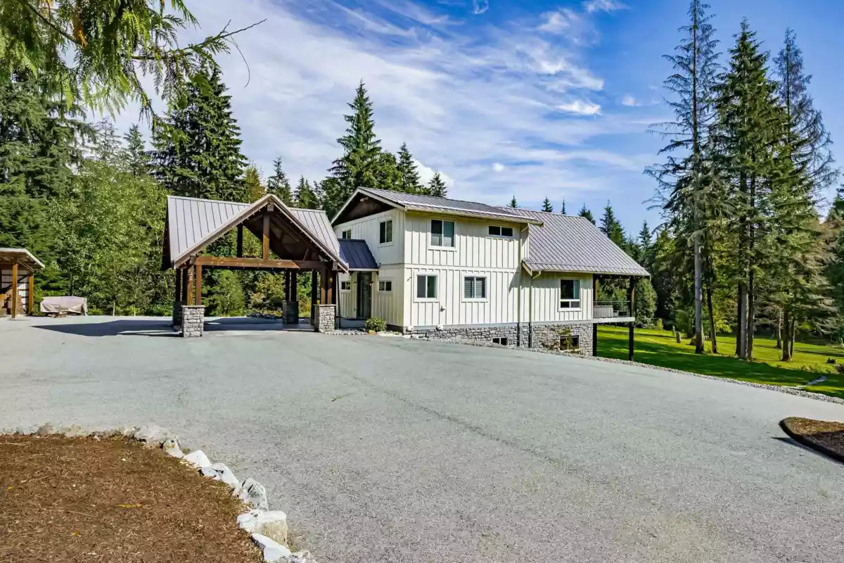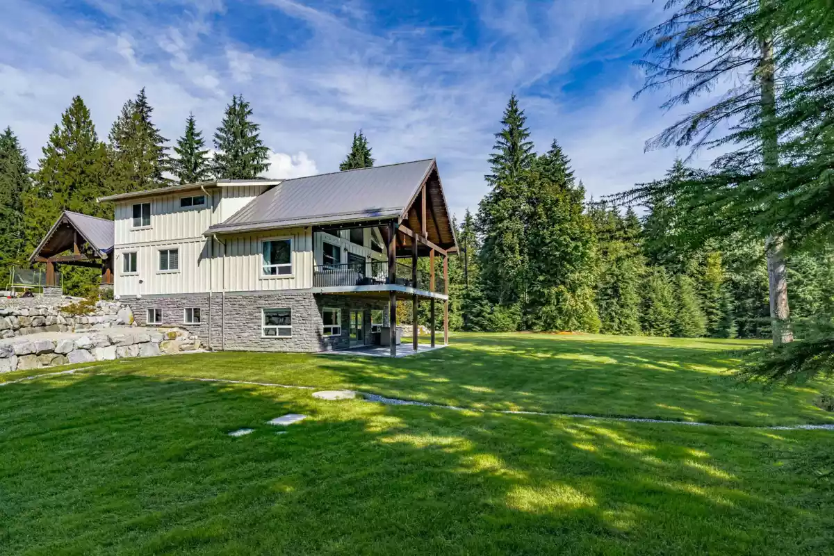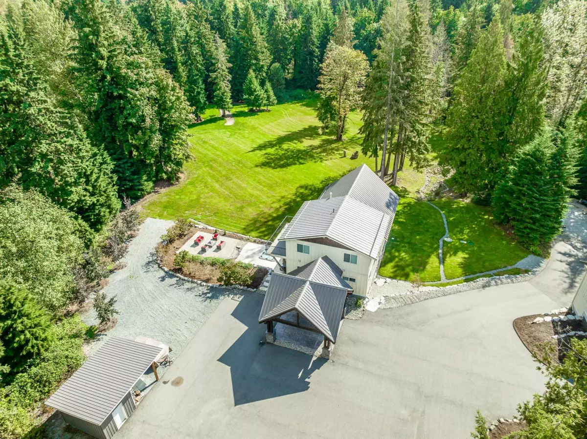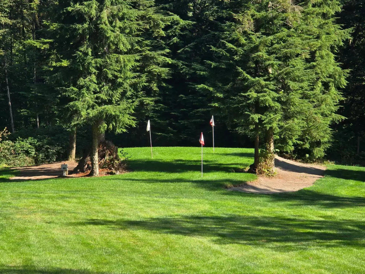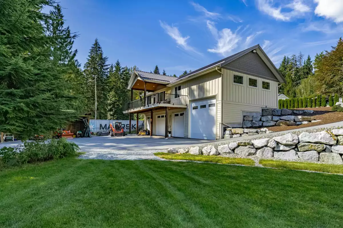 CAR ENTHUSIASTS or HOBBIESTS. Impressive 5 bedroom 3 bathroom newer home with a DETACHED 4 BAY GARAGE, on a mostly CLEARED AND MANICURED 4.05 ACRES, including a self contained SEPARATE COACH-HOUSE (2 bedroom) for guests or extended family. Main house high-end upgrades and finishes were done afterwards by a German Master-Craftsman. Stunning gourmet kitchen with stainless steel appliances, including a double wide refrigerator, (walk-in pantry), adjacent to the great-room with soaring vaulted ceilings,( floor-to-ceiling stone gas fireplace) and chalet style windows lead out to huge covered patio (29' x 14') looking out onto the GOLF GREEN. Amazing Primary Bedroom (29'x21') has massive walk in closet with built -in cabinetry and a luxurious en-suite with designer tub and separate glass shower