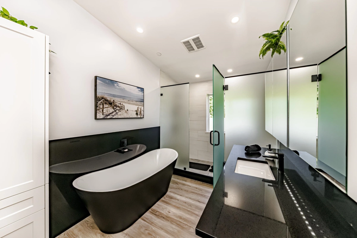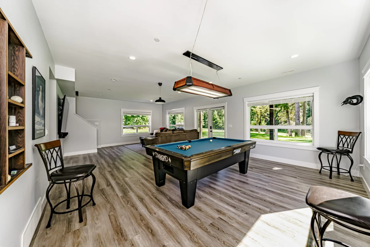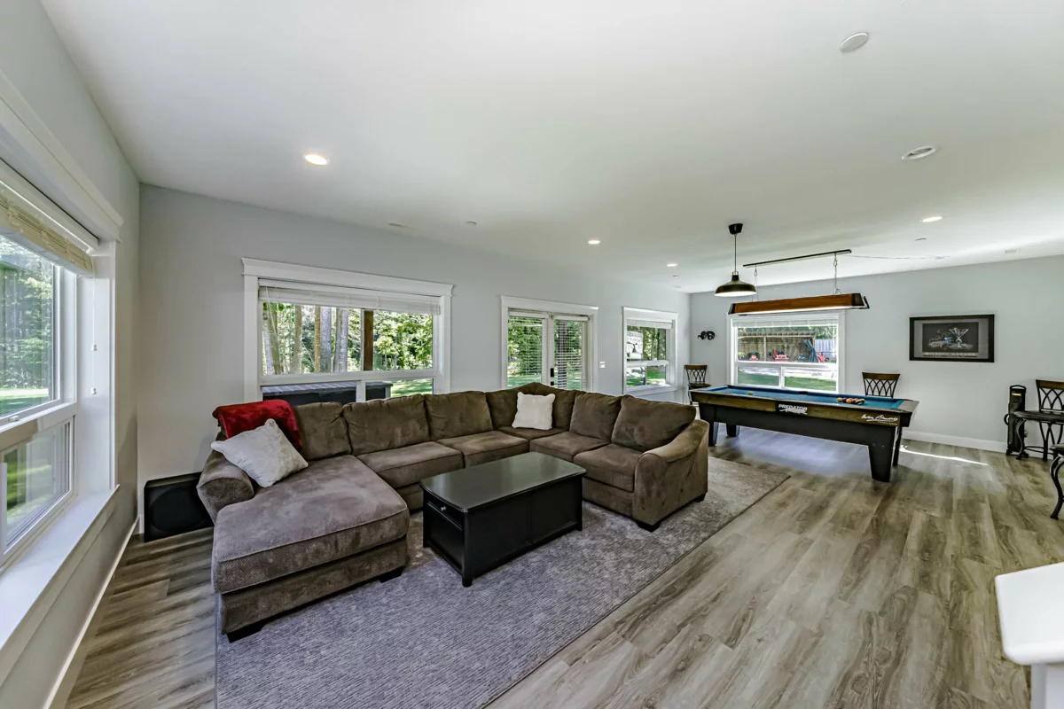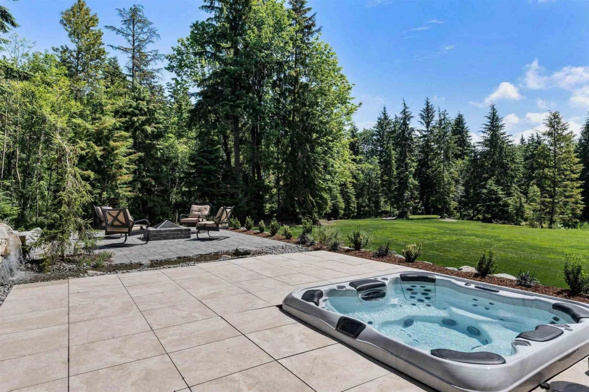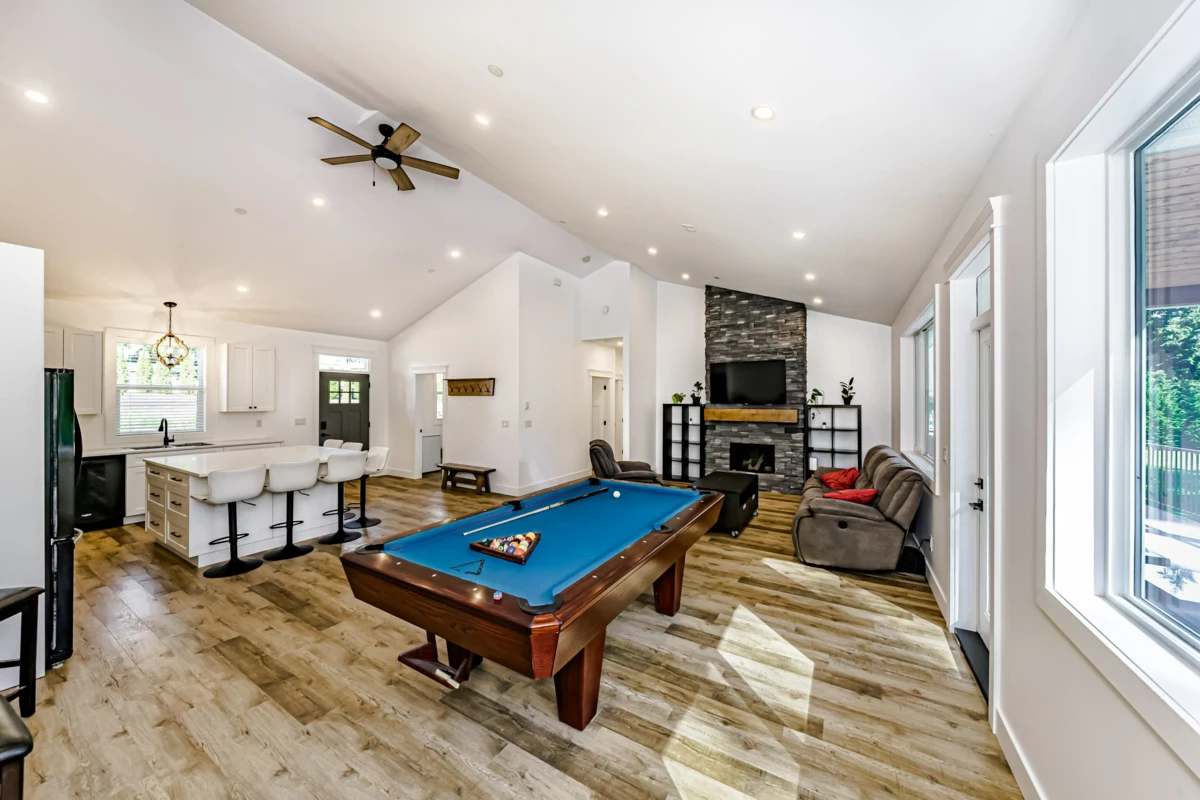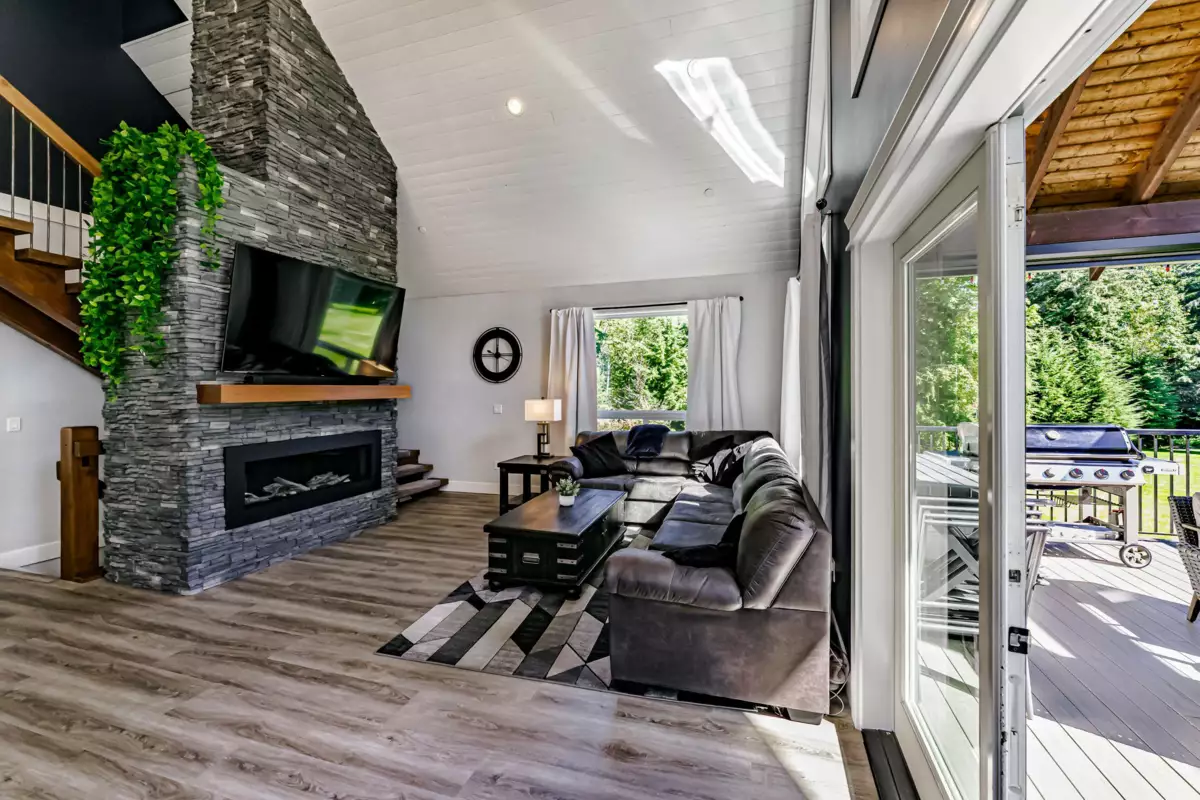 CAR ENTHUSIASTS or HOBBIESTS. Impressive 5 bedroom 3 bathroom newer home with a DETACHED 4 BAY GARAGE, on a mostly CLEARED AND MANICURED 4.05 ACRES, including a self contained SEPARATE COACH-HOUSE (2 bedroom) for guests or extended family. Main house high-end upgrades and finishes were done afterwards by a German Master-Craftsman. Stunning gourmet kitchen with stainless steel appliances, including a double wide refrigerator, (walk-in pantry), adjacent to the great-room with soaring vaulted ceilings,( floor-to-ceiling stone gas fireplace) and chalet style windows lead out to huge covered patio (29' x 14') looking out onto the GOLF GREEN. Amazing Primary Bedroom (29'x21') has massive walk in closet with built -in cabinetry and a luxurious en-suite with designer tub and separate glass shower