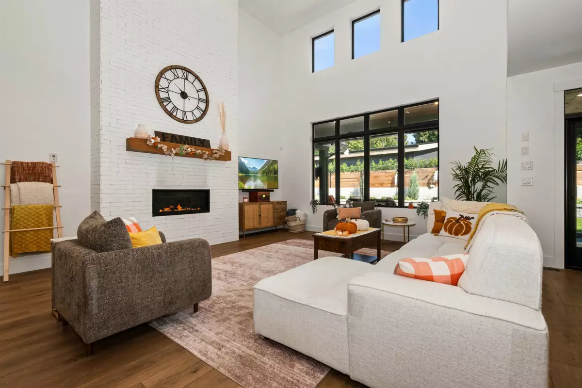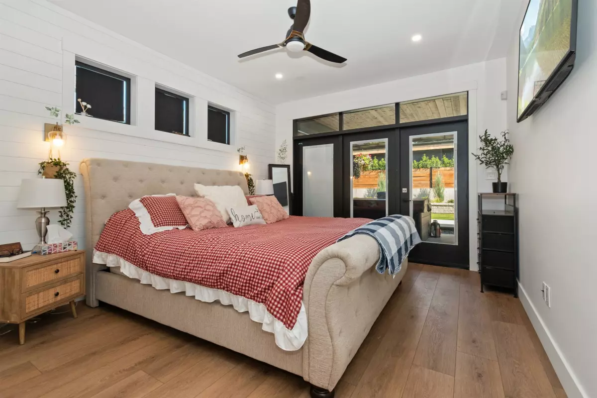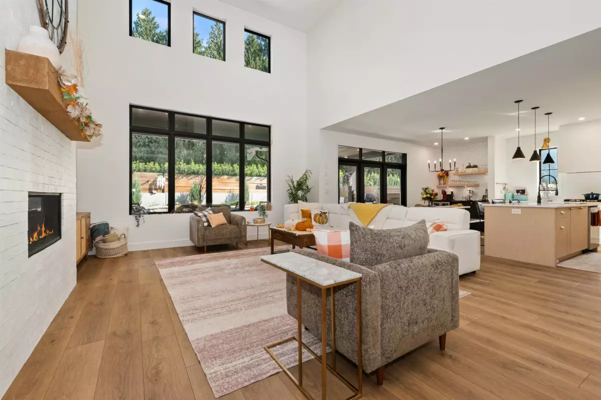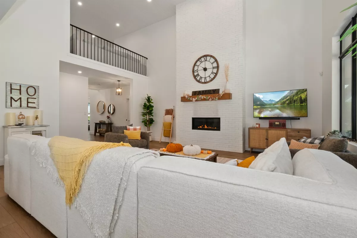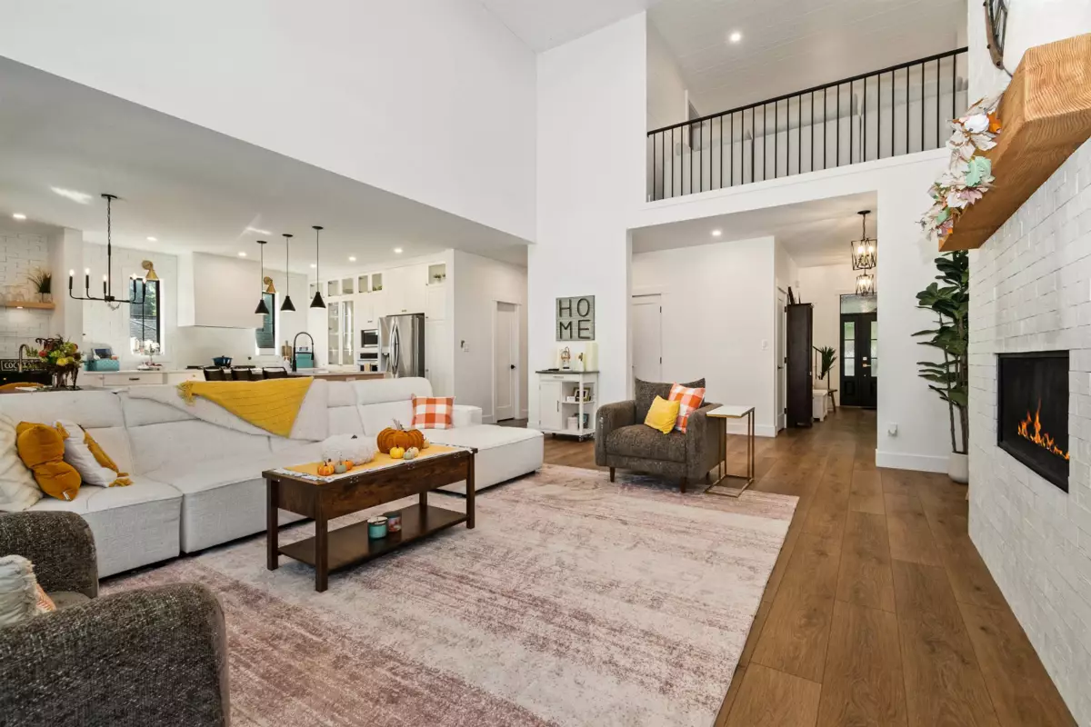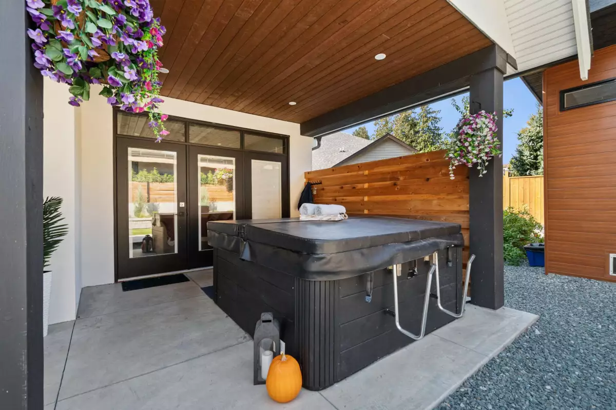 Step into this stunning executive home where luxury meets comfort. The main-floor primary suite offers style & functionality, with an elegant ensuite and patio doors leading to a spacious deck and hot tub for outdoor relaxation. The chef’s kitchen features soaring ceilings, a coffee bar, stainless steel appliances & abundant pantry space, flowing seamlessly into the family living room with its 20’ fireplace. Upstairs are 2 large bedrooms, a bathroom, and a versatile flex room. Additional highlights include an office, double garage, RV parking, a large driveway, and a very private backyard with a covered back patio & charming outbuilding. More than a house - It’s your dream home waiting for you to make it your own!