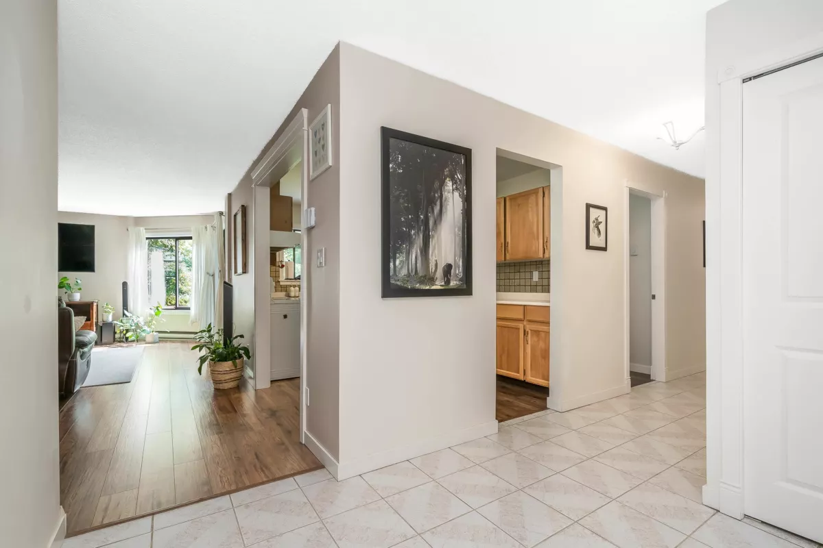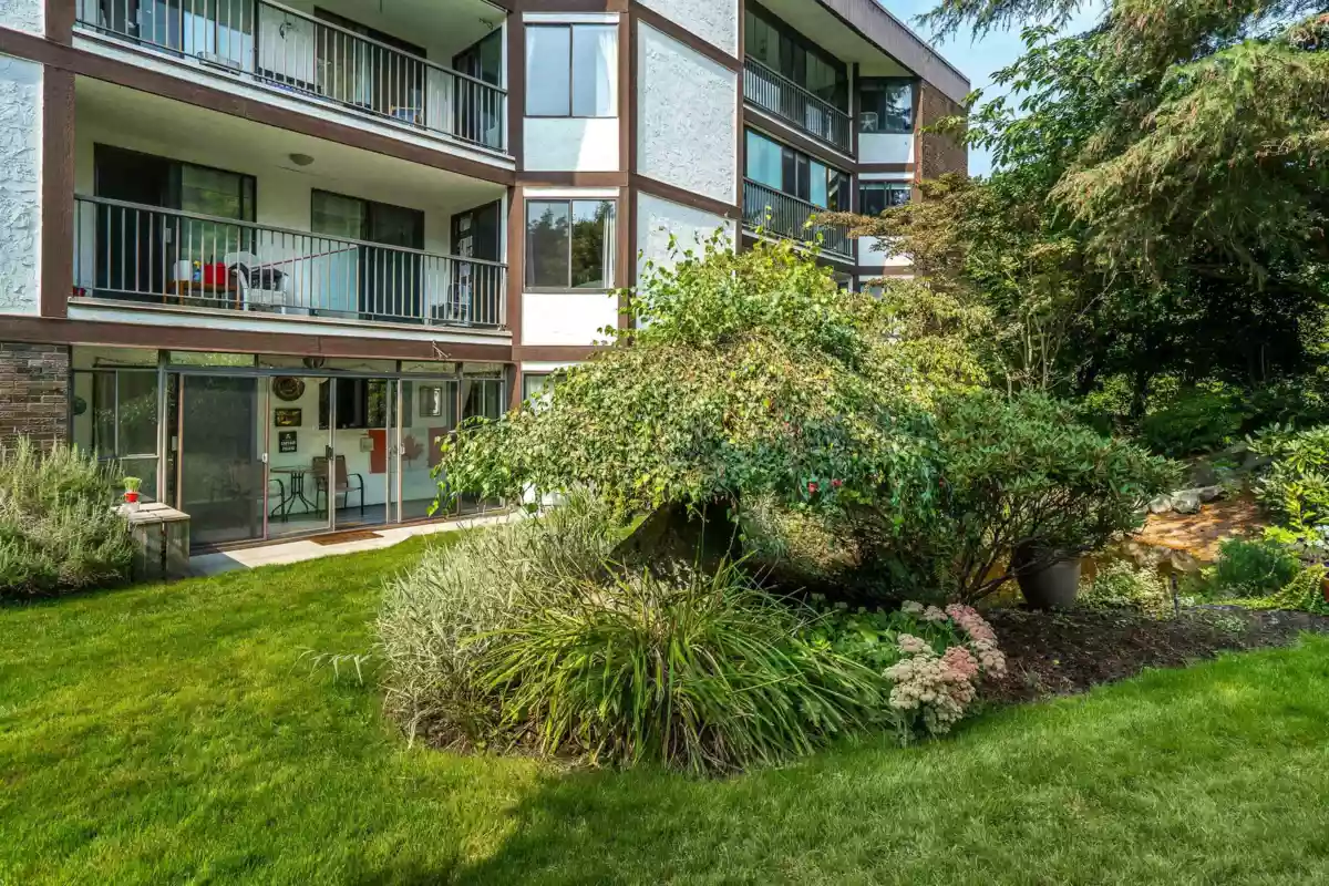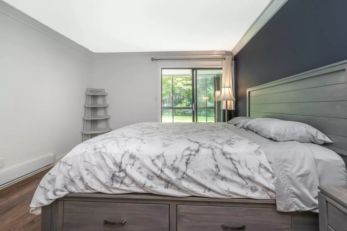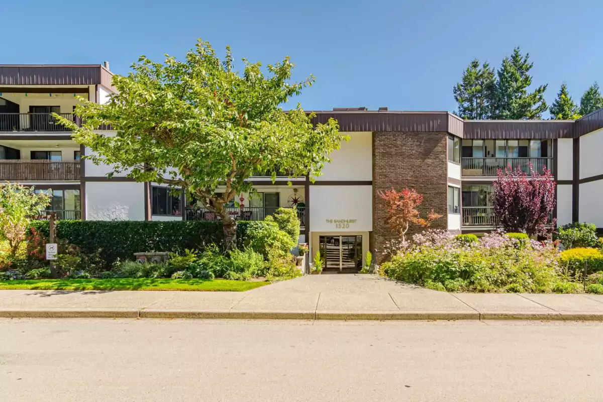 Welcome to The Sandhurst! One of the bigger units in the building, this spacious 1351 sqft apartment offers ample room for all your furniture & abundant storage. Enjoy White Rock's best value by price per sqft, just steps from the beach and minutes from the border. Conveniently located one block from buses to Vancouver, the airport, and SkyTrain. The large entrance foyer and extra-wide hallway welcome your guests in style. The master bedroom boasts extensive closet space and a full ensuite bath. Both bedrooms open to year-round patios. Updated bathrooms and paint in some areas. In-suite laundry, bright exposure, secure parking, and storage included. Call now for your private viewing of this ground floor unit!