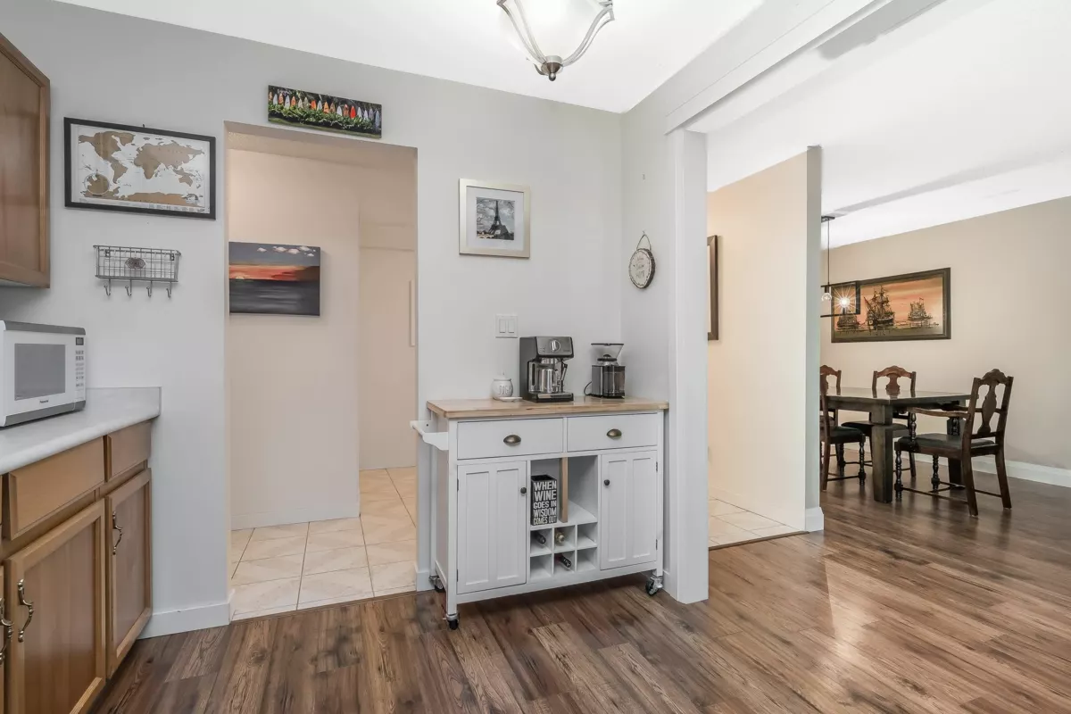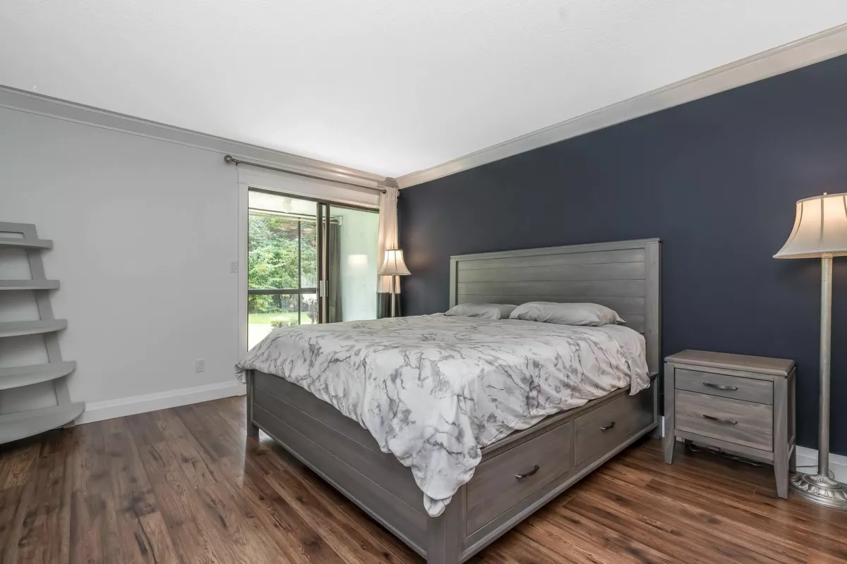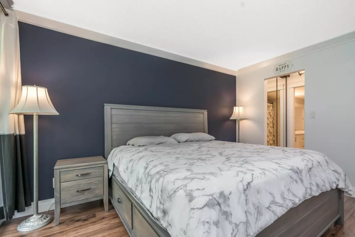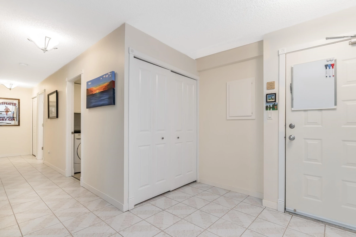 Welcome to The Sandhurst! One of the bigger units in the building, this spacious 1351 sqft apartment offers ample room for all your furniture & abundant storage. Enjoy White Rock's best value by price per sqft, just steps from the beach and minutes from the border. Conveniently located one block from buses to Vancouver, the airport, and SkyTrain. The large entrance foyer and extra-wide hallway welcome your guests in style. The master bedroom boasts extensive closet space and a full ensuite bath. Both bedrooms open to year-round patios. Updated bathrooms and paint in some areas. In-suite laundry, bright exposure, secure parking, and storage included. Call now for your private viewing of this ground floor unit!