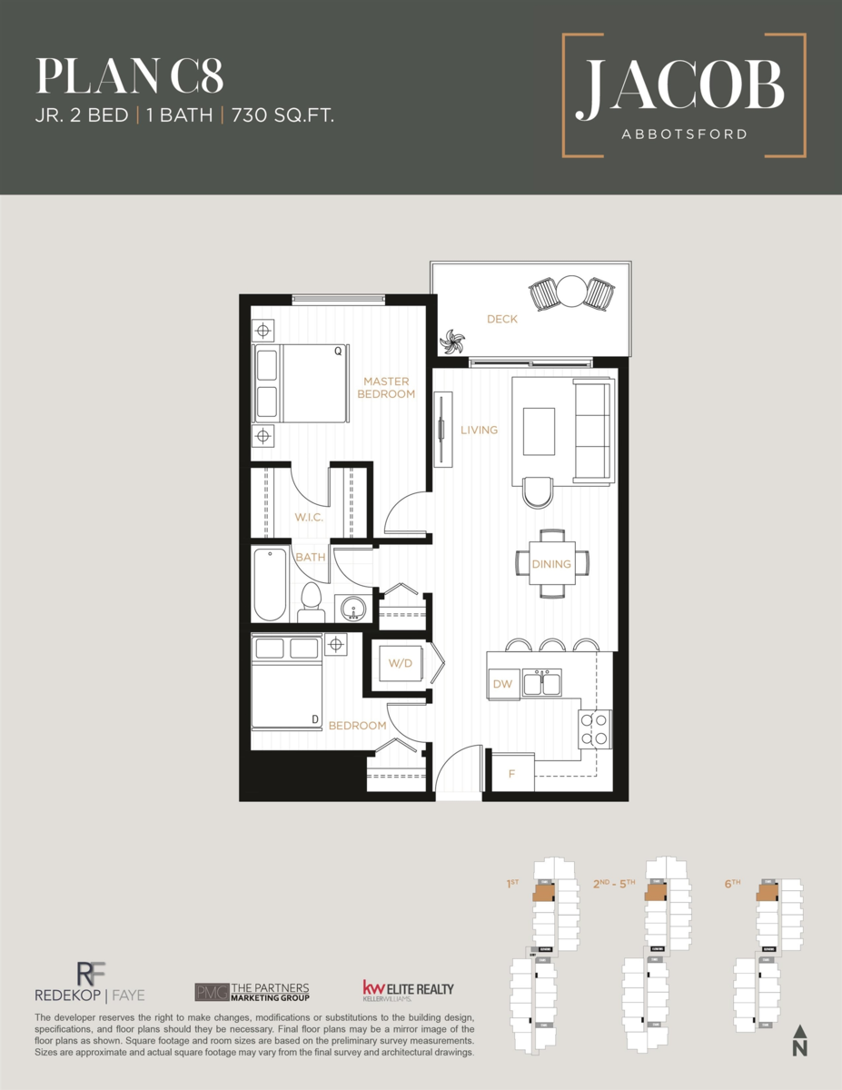 Move in Ready! Introducing Jacob. This stunning new development is only a short drive from historic downtown Abbotsford, schools, parks and trendy local businesses. The high-quality finishes and modern design contain sleek cabinets, stainless steel appliances, and laminate flooring. The building features an expansive courtyard called the Gathering Place. Nestled in a suburban neighbourhood, Jacob caters to young families as well as first-time home buyers, as this up-and-coming area develops and grows. Please reach out to our sales team for more information and appointment availability. This home includes 2 parking stalls and upgraded laminate in bedrooms.