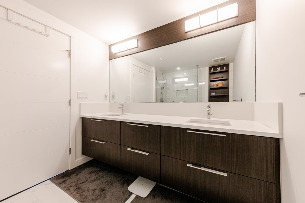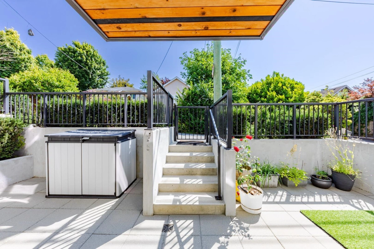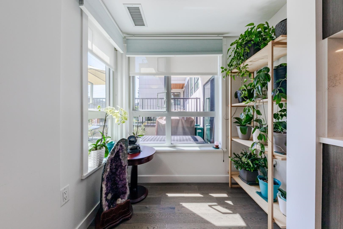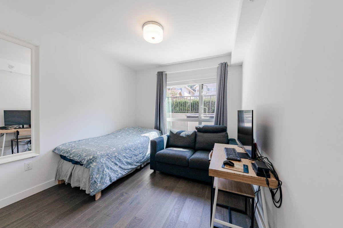 Welcome to The Leveson, nestled in the vibrant South Granville neighborhood. This QUIET (away from Granville) ground-floor, single-level 2 Bedroom + Office home boasts 460 sq ft of private outdoor space. With its elegant, contemporary A/C design and dual access from the street and building, it feels more like a townhome. The chef-inspired kitchen features premium Bosch appliances, a gas cooktop, and quartz countertops with a sleek waterfall edge. The spacious primary bedroom easily fits a king-sized bed, includes a large walk-in closet, and a luxurious double vanity ensuite. Two generous patios with gas hookup are ideal for BBQs and entertaining. Unbeatable location near transit, shops, dining, and top Vancouver schools. Includes 1 EV parking and upgraded locker attached to the stall.