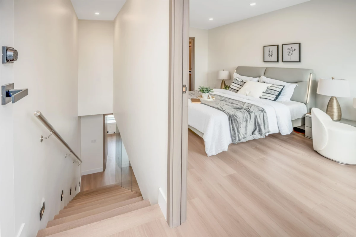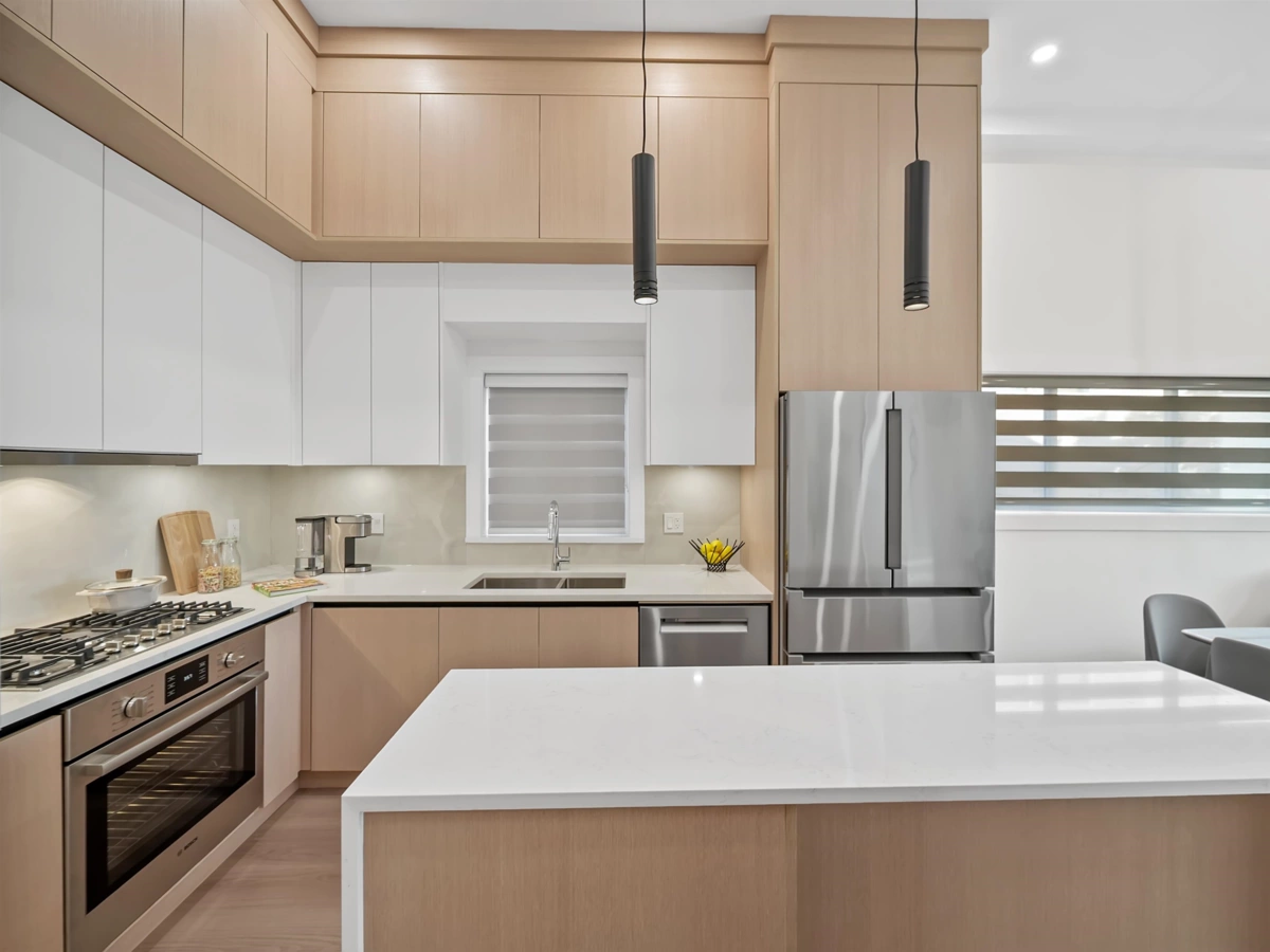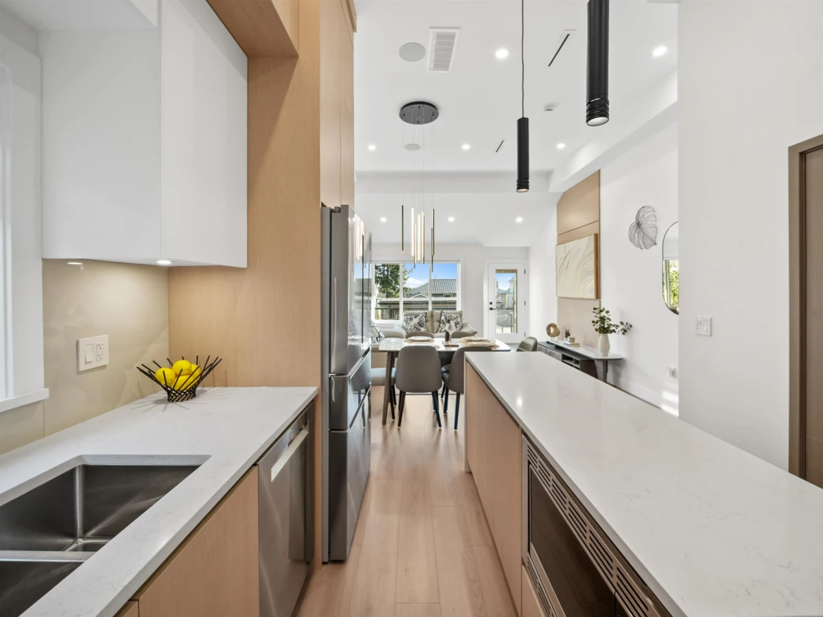 Experience luxury living at ASPEN, an exclusive collection of four townhomes by ZAKO Development, nestled in the serene residential area of Maillardville, Coquitlam. Enjoy the perfect blend of serenity and convenience, just minutes from grocery stores and restaurants. Each home offers four spacious bedrooms plus a den, almost 5 bedrooms, with a den that has a window, three elegant bathrooms, and two parking spaces. Designed with 12-foot ceilings, Bosch appliances, a waterfall island, smart home features, and built-in speakers, these homes exude sophistication. Relax on the third-floor sun deck with stunning Fraser River views, and indulge in the master suite with a luxurious walk-in closet. ASPEN redefines luxury in Mailardville.Easy to show.Open house Sat & Sun November 29th & 30th.