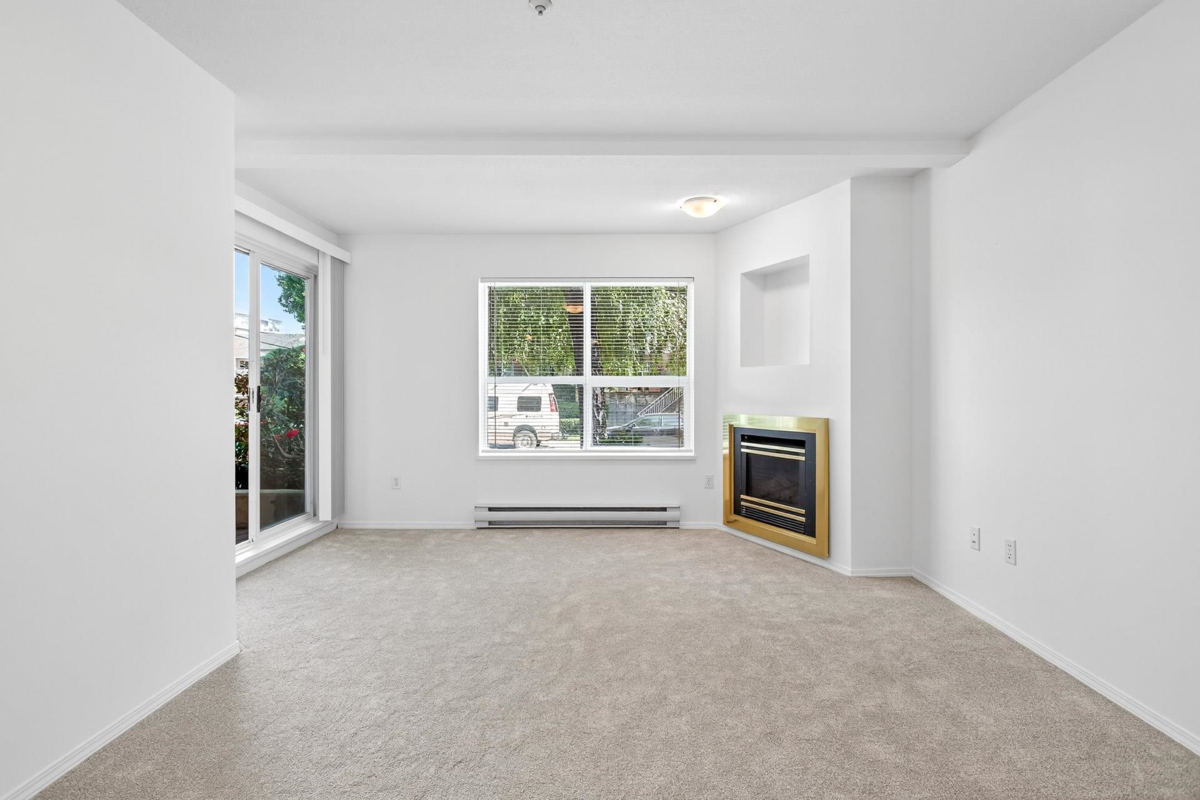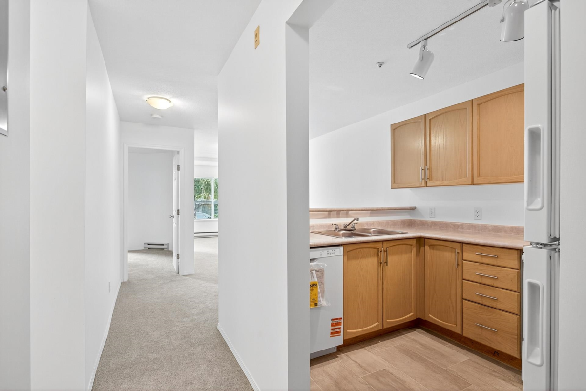 *STIRLING CLASSIC* This central Port Coquitlam home is clean & bright with a private east facing patio. Features lots of in unit storage, a spacious bedroom, cheater ensuite + an oversized living room/dining room with gas fireplace. Comes with a secured storage locker & secured parking under the building. Well maintained building is professionally managed by Profile Properties with a proactive strata council. 2025 upgrades include new kitchen sink, new bathroom sink & toilet, new fridge, new stove, new dishwasher, new light fixtures, new window coverings, new carpets & new paint. Convenient location near bus, major transit routes, downtown PoCo, schools, parks & shopping. WOW!