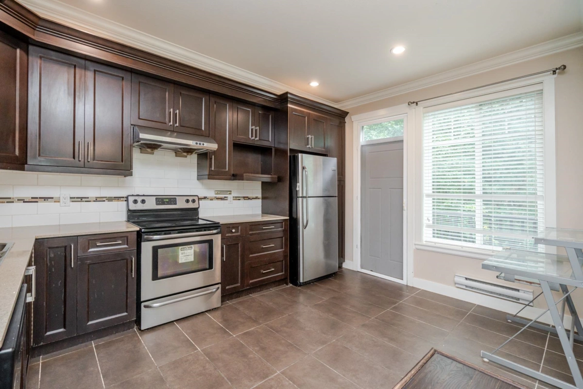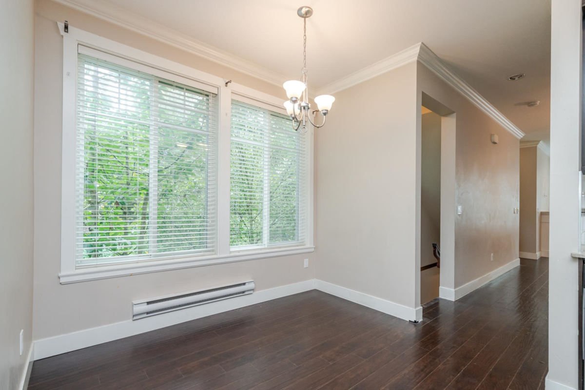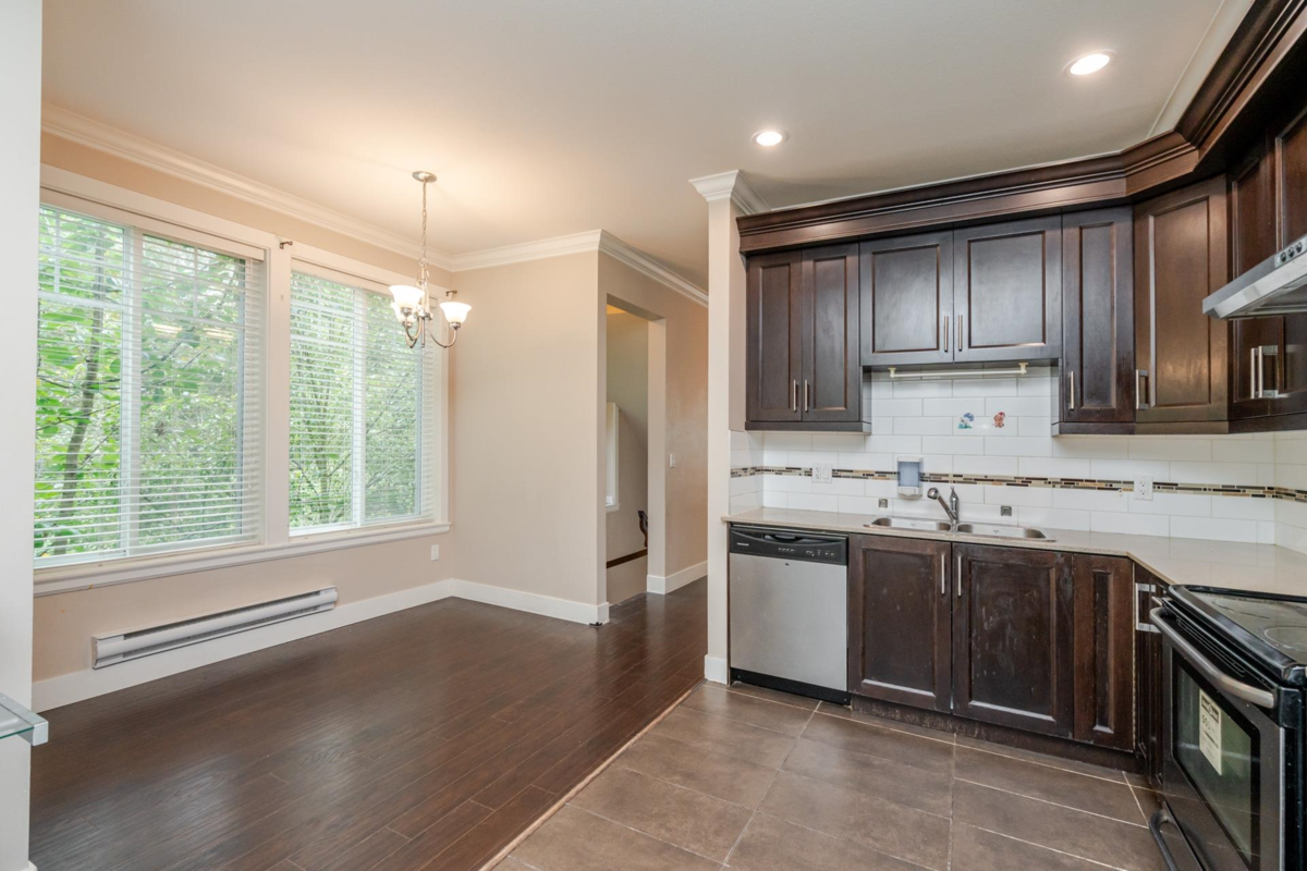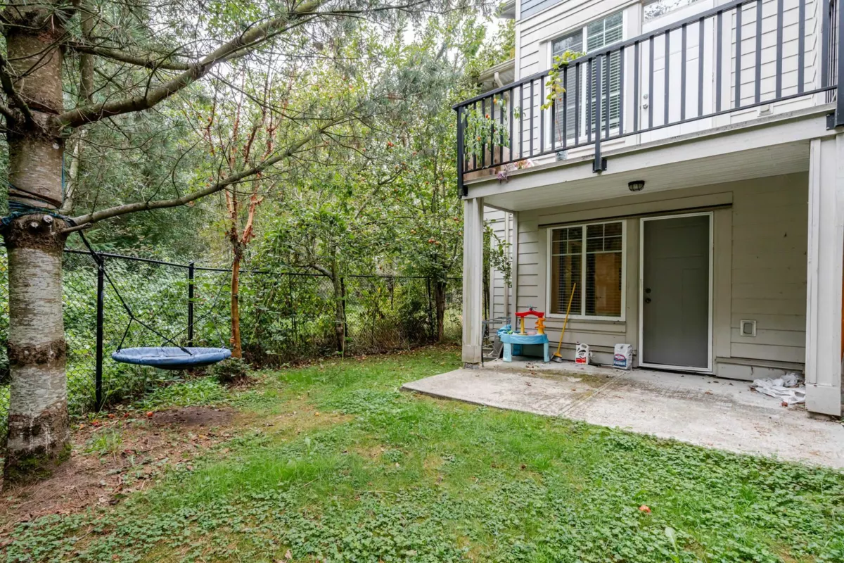 Townhome in Guildford Green! Rarely available corner unit backing directly onto green space in the heart of Guildford. Features 9’ ceilings, open-concept living and dining, and a functional kitchen with stainless steel appliances and direct access to a balcony overlooking the beautiful backyard. Main level is finished with laminate flooring, gourmet kitchen, stylish bath fixtures, and a cozy fireplace. Upstairs offers two spacious bedrooms with two full baths, plus an additional bedroom with full bath on the lower level. Residents enjoy a large clubhouse with sauna, party room, and meeting space. Steps from Guildford Town Centre, library, recreation center, fine dining, and with easy access to Hwy 1.