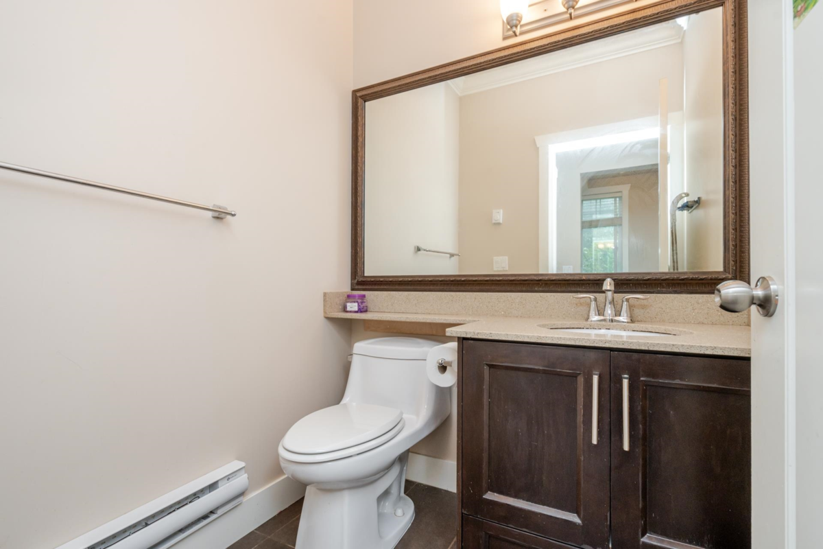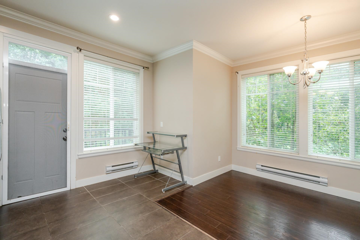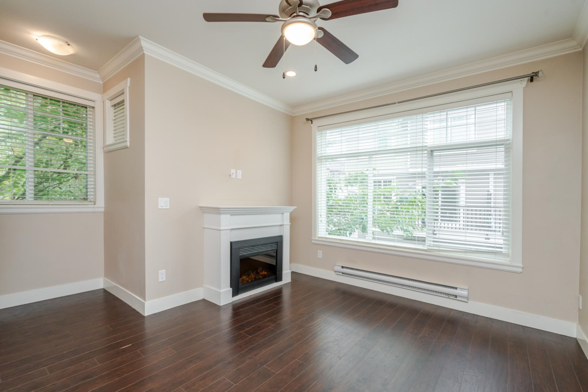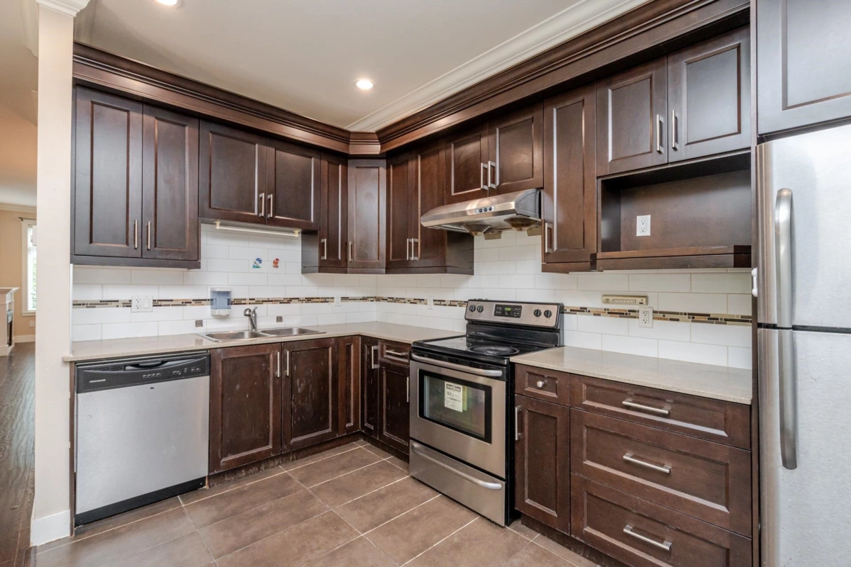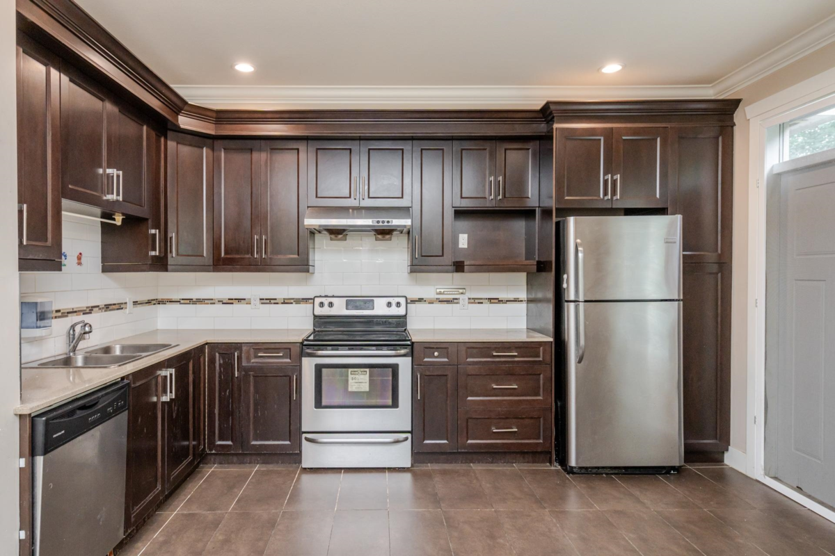Townhome in Guildford Green! Rarely available corner unit backing directly onto green space in the heart of Guildford. Features 9’ ceilings, open-concept living and dining, and a functional kitchen with stainless steel appliances and direct access to a balcony overlooking the beautiful backyard. Main level is finished with laminate flooring, gourmet kitchen, stylish bath fixtures, and a cozy fireplace. Upstairs offers two spacious bedrooms with two full baths, plus an additional bedroom with full bath on the lower level. Residents enjoy a large clubhouse with sauna, party room, and meeting space. Steps from Guildford Town Centre, library, recreation center, fine dining, and with easy access to Hwy 1.