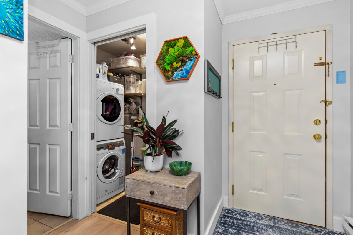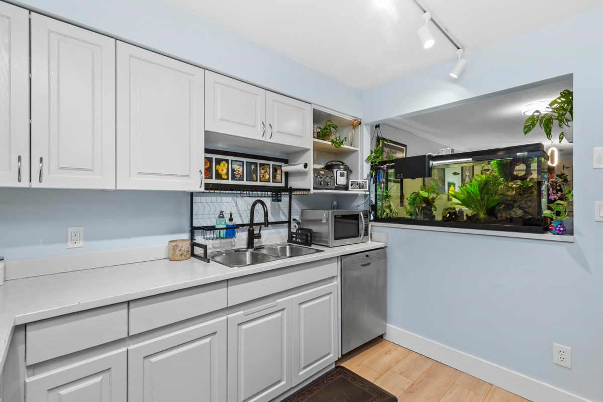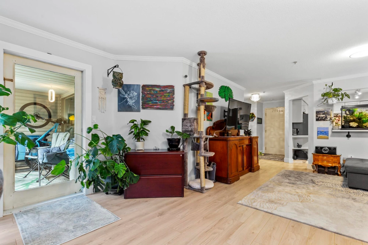 Welcome to Oxford Place! This bright, south-facing 1-bedroom unit on the ground floor is freshly painted and well-maintained. It offers a spacious layout with in-suite laundry, stainless steel appliances, ample in-suite storage, and a large storage locker conveniently located near the storage room door. Unwind on your quiet, private patio with raised garden beds perfect for gardening. The unit includes 1 secure parking space, with additional spots available to rent, and access to secure EV charging. Nestled on a serene, well-landscaped street, this home is steps from 3 parks, a playground, and the scenic Coquitlam River trail, yet a short walk or drive to groceries, coffee shops, restaurants, and more. Experience the ideal balance of peaceful living and urban convenience!
