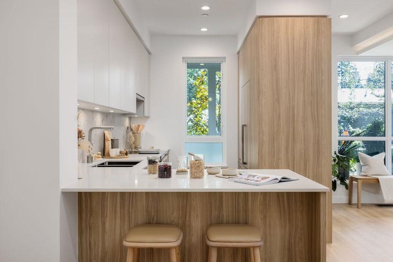 GST PAID , READY TO GO at Lynn is the next chapter at Mosaic's Lynn Valley masterplan community. 3 and 4 bedroom townhomes perfect for families, overlooking Kirkstone Park with stunning North Shore scenery all around. This Al-Plan Atwell Series townhome has 1,654 square feet of living space with balanced spaces for the whole family. A flex space on the lower floor is the perfect place to clean off from your outdoor adventures, while the main floor was made for entertaining. With the kitchen and patio on opposite ends, there's lots of room for a big dining table. Up the stairs, there are 2 bedrooms and 2 bathrooms. The main bedroom on the upper floor is the ultimate retreat with a spa-like bathroom and a large closet.