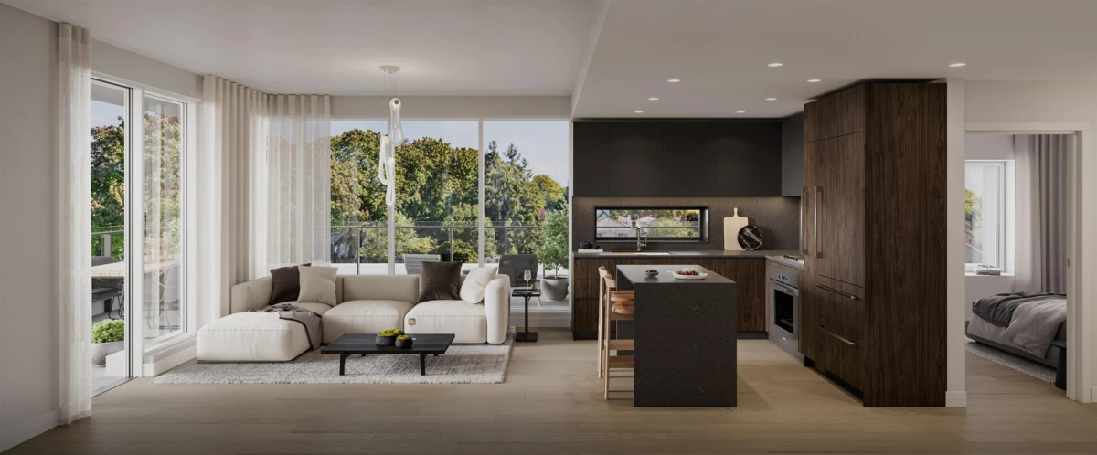 Fränk at Oak & 64th brings modern architecture and timeless design to the heart of Vancouver’s Marpole West. Designed by award-winning Arno Matis Architecture and built by Enrich Developments, these homes feature sleek German-engineered kitchens by Häcker, premium Miele appliances, and carefully considered layouts that maximize comfort and style. Residents will enjoy outstanding amenities, including a fully equipped dining lounge with fireplace, flexible workspaces, and an outdoor garden with children playground and public art. Perfectly located within minutes of downtown Vancouver, YVR, and Richmond. Fränk is where contemporary design meets everyday comfort. Estimated completion: end of 2027.