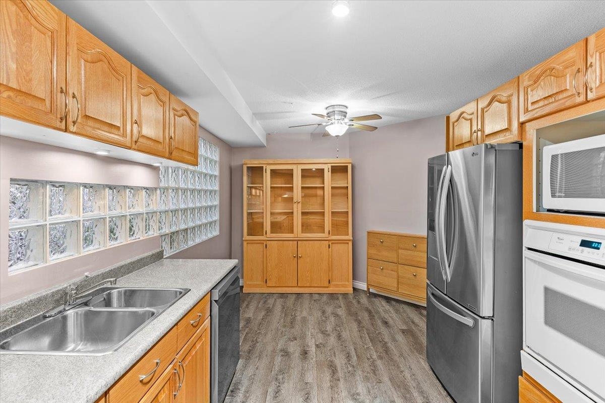 Welcome to this well maintained 2 bedroom, 2 bathroom ground floor unit at Merklin Residence, located blocks away from the heart of White Rock! This great 1275 sqft floor plan is ready for you to come and make it your own. A large primary suite features a walk-in closet and a 5 piece ensuite bathroom. An open Kitchen area and large dining/living room is perfect for entertaining and family gatherings; and walk onto your private outdoor patio that looks onto a peaceful greenspace. The large laundry room offers ample storage along with many closets and a pantry. Two parking stalls and a large storage locker come included with this unit. You are minutes away from uptown White Rock, the farmer's market, schools, shopping, and of course White Rock Beach! Open House Sun Nov 23, 2-4pm.