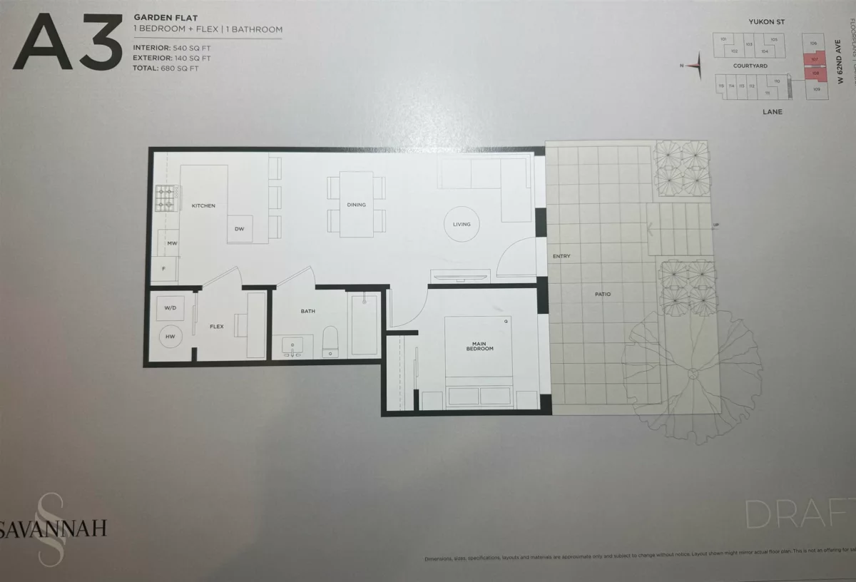 Assignment of Contract: Move-in Jan 2026. Welcome to Savannah, a timeless Georgian-inspired architecture meets modern West Coast living. Situated off Cambie on the Cheery-tree lined Yukon street overlooking scenic Winona Park. This elegant one bed unit with large yard, thoughtfully designed with sophisticated and refinded finishes including crown mouldings and satin finish hardwares. Enjoy open-concept living and dining areas 9'ft ceiling, Fisher & Paykel appliance package. Located directly across from Winona Park and steps to Marine Gateway SkyTrain Station. Prestigious school catchment Churchill Secondary & Sexsmith Elementary.
