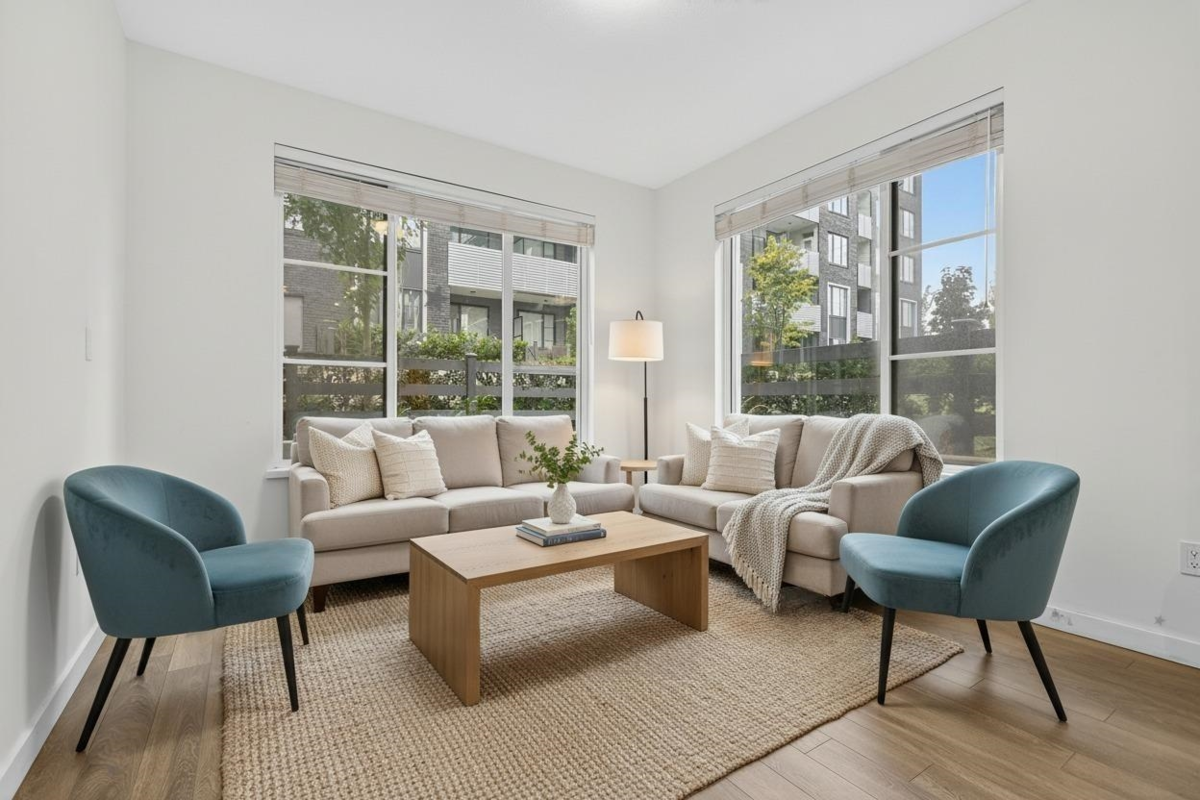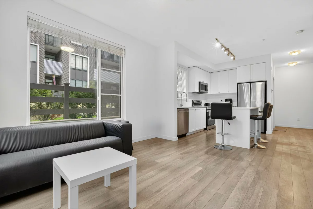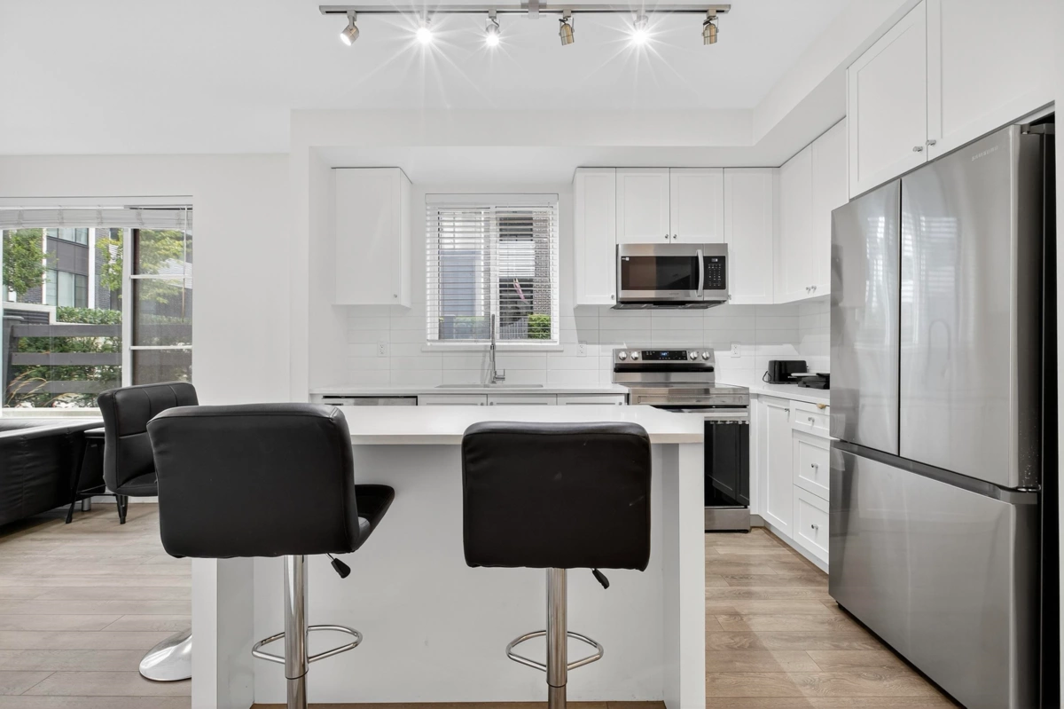GROUND LEVEL CORNER UNIT at Fleetwood Village 2 by Dawson + Sawyer! This modern 3 bed, 2 bath home offers 875 sq ft of open-concept living with large windows, high ceilings, and stylish finishes. The gourmet kitchen features quartz countertops, Samsung stainless appliances, and a spacious island. Primary bedroom includes a walk-through closet and ensuite. Enjoy your private patio perfect for relaxing or entertaining. Family-friendly community with on-site daycare, lounge, and gym. Steps to schools, parks, shopping, and the future SkyTrain station.