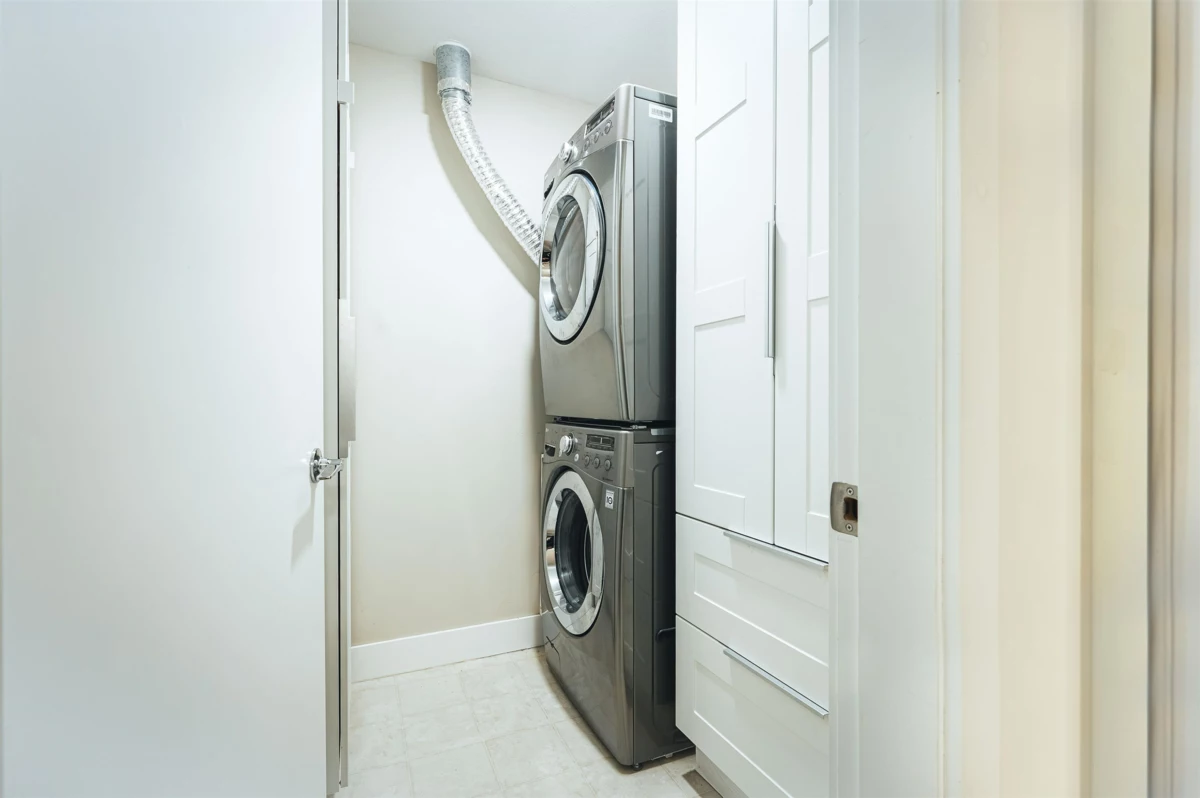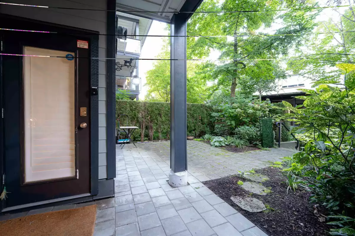 Welcome home for this stunning residence in Folio by Intracorp! This large 1 Bed + 1 Bath + Den unit has been tastefully renovated and is move-in or rent ready. Updates include a gourmet kitchen with custom millwork and deep drawers, full size LG washer/dryer & additional pantry cabinets, new laminate flooring, plantation shutters, and a high-end appliance package with a 30' range, Jen Air fridge & stove, and Miele dishwasher. The 9' ceilings and private entrance off of your almost 400 SQFT patio give this unit a private, townhouse feel. Situated on a peaceful street just steps to all the best UBC has to offer- Pacific Spirit Park, beaches, restaurants, the golf course, aquatic center, libraries, and bus. Pets and rental friendly!