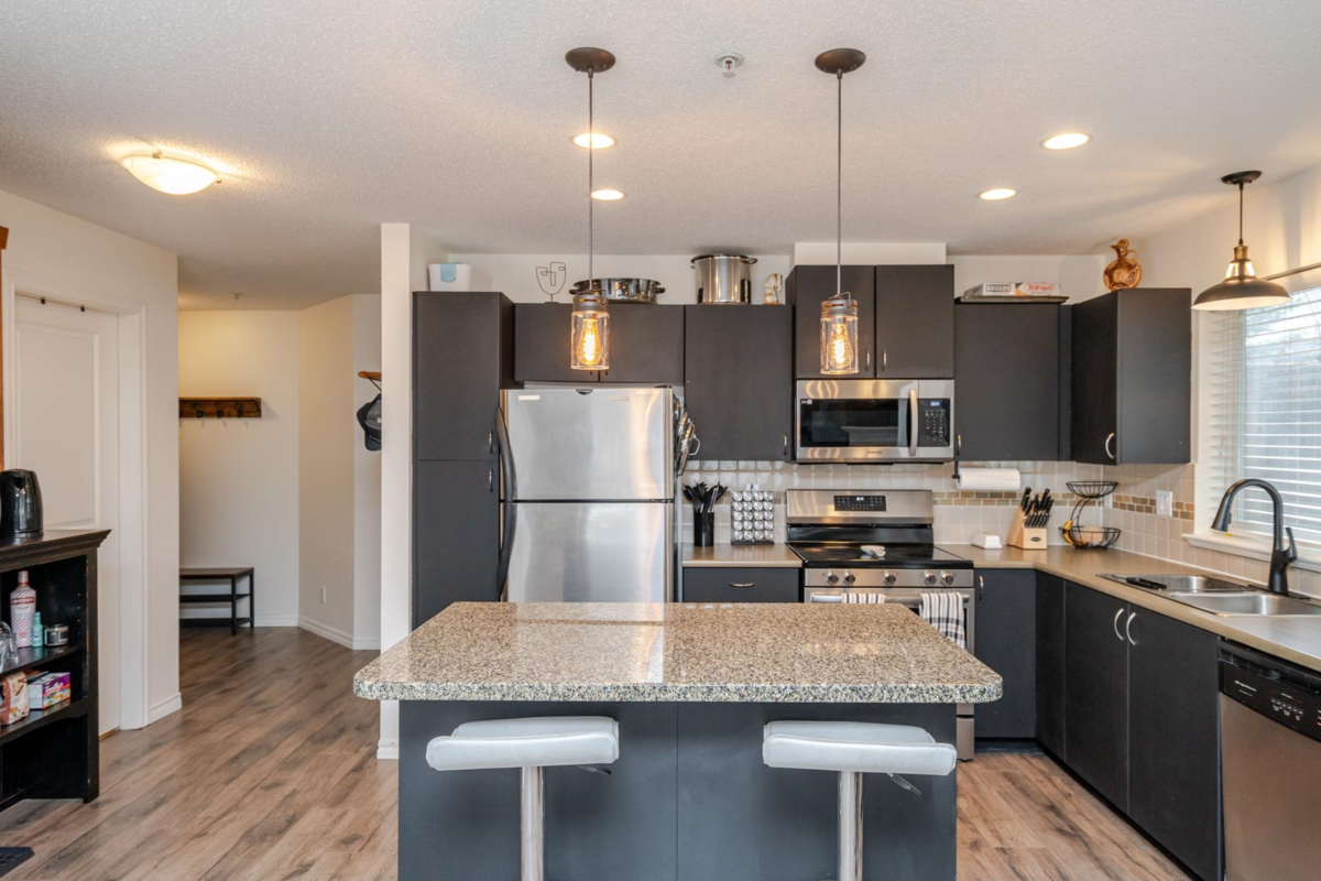 Welcome to this stunning 2 bed, 2 bath ground floor corner unit at Cobblestone! A home filled with natural light and thoughtful design. You’ll fall in love with the open concept layout, perfect for daily living or entertaining. The kitchen features a granite island, new stove and microwave, and stylish newly painted cabinets. Spacious primary bedroom with a walk through closet and private ensuite. Large second bedroom perfect for family, guests, or a home office. Full laundry room with space for storage. Step outside to your large private patio with room for a bbq and patio furniture. Perfect for a morning coffee or evening relaxation. Well run strata and a well kept building all within walking distance to transit, shopping, recreation, and parks. Call today for your private showing!