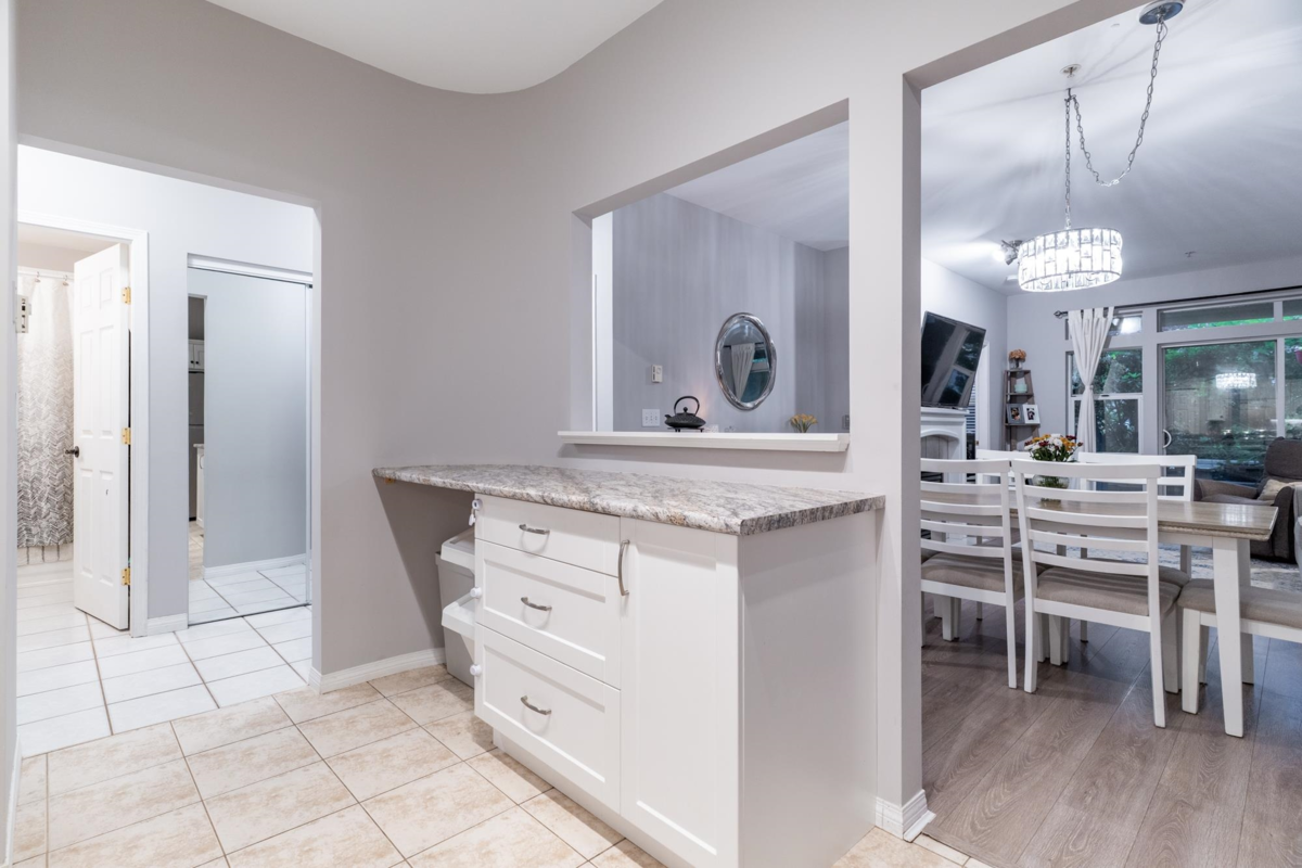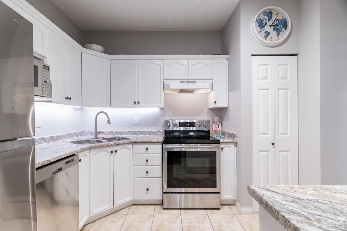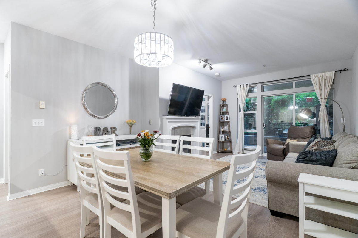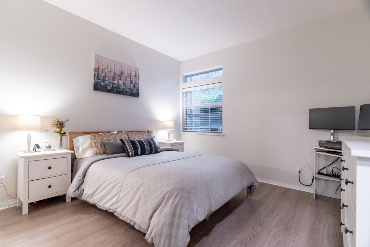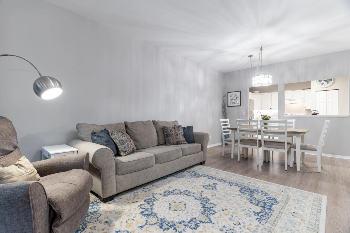Step inside this spacious 2-bedroom ground-floor home at The Heritage Grand, where well-planned living space is paired with 9-foot ceilings and large windows that bring in plenty of light. The laminate flooring throughout the main living areas and bedrooms gives the home a warm, cohesive feel, while the kitchen features stainless steel appliances, making daily life easy and functional. The living and dining spaces open onto a large covered patio, perfect for morning coffee, year-round BBQs, or just a quiet spot to unwind. You’re tucked into one of Port Moody’s most walkable neighbourhoods, just steps to shops, Rocky Point Park, scenic trails, and Skytrain The building is fully rain-screened, well maintained, and allows two pets. Bonus: two parking stalls Included. Open Saturday Nov 29 1-3
