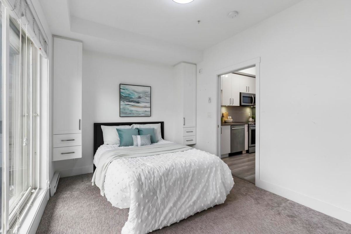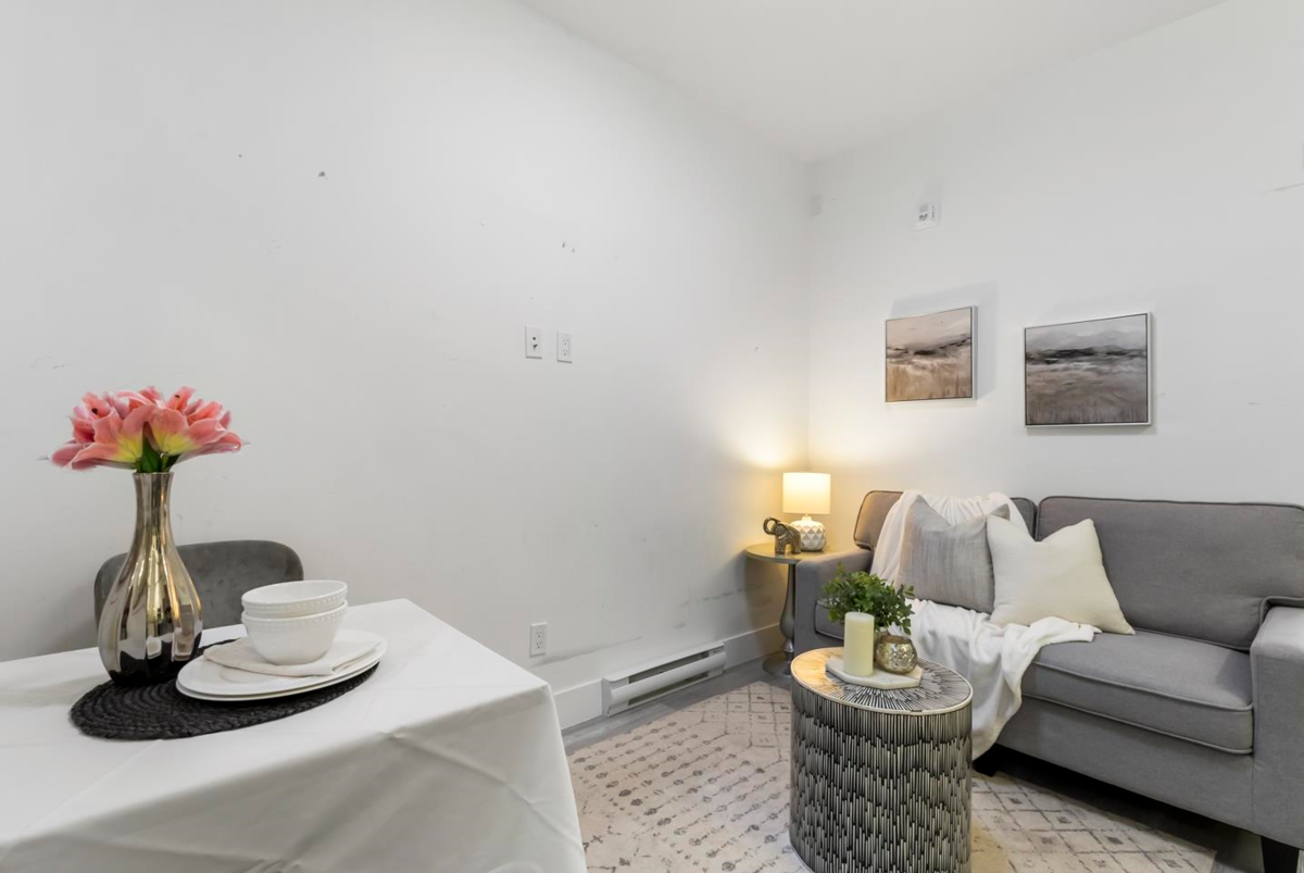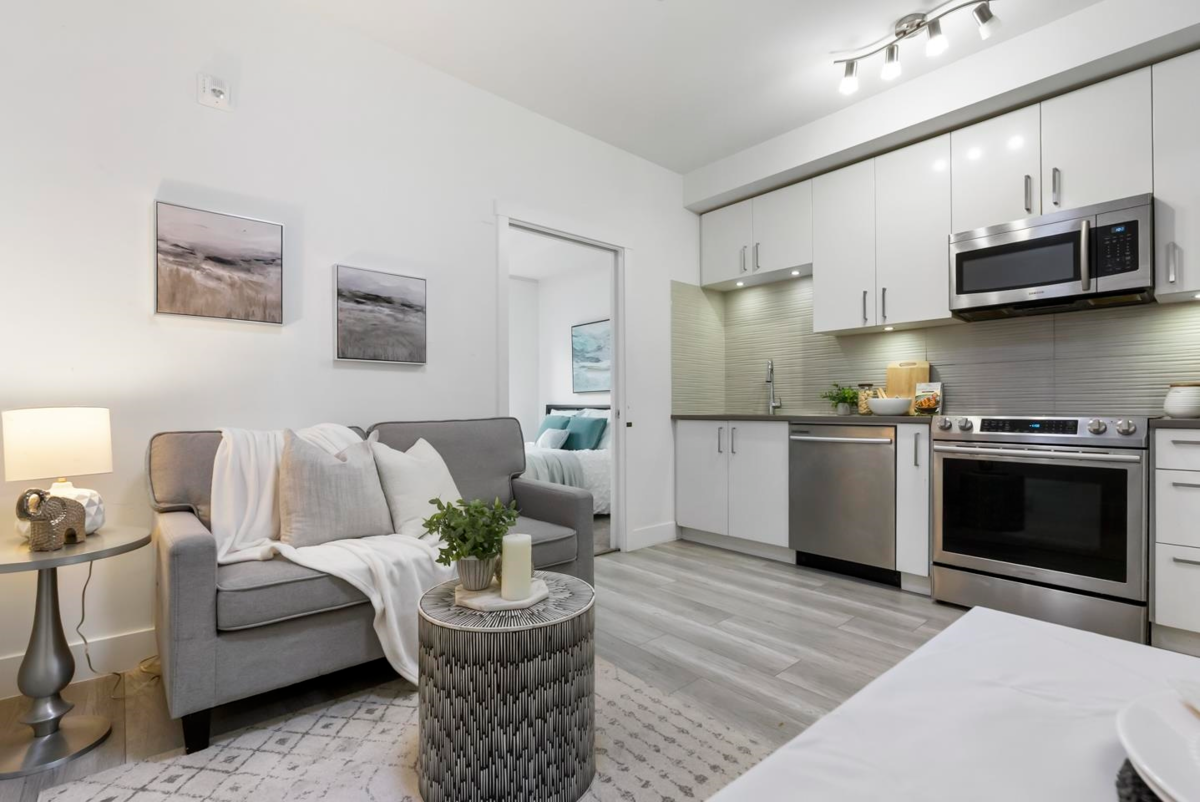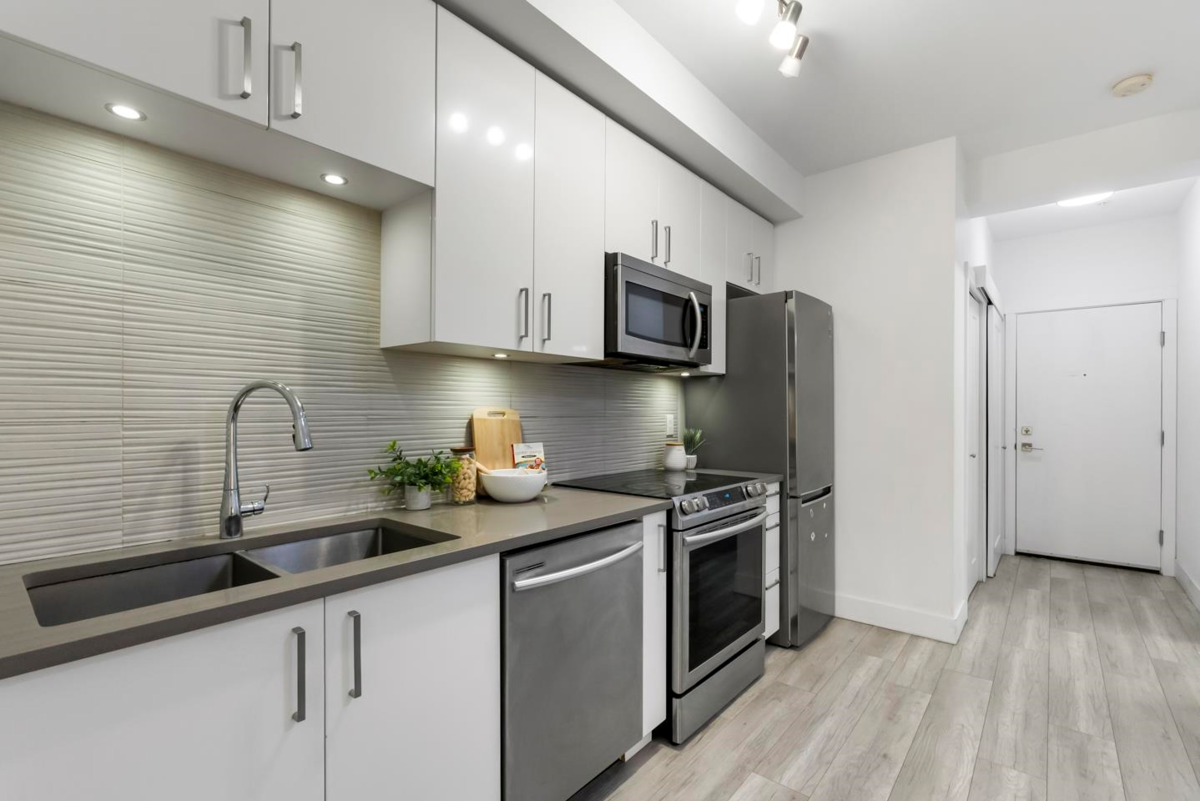 Welcome to Fraser Landmark! This rare ground-floor studio + den offers exceptional privacy with no neighbours on either side and its own private entrance. Enjoy a bright, modern kitchen with quartz countertops and stainless steel appliances, along with two patios that extend your living and entertaining space. INCLUDES 3 PARKING STALLS. Located steps from the future SkyTrain and minutes to schools, shopping, and Surrey Memorial Hospital, this is an ideal opportunity for first-time buyers and investors alike.