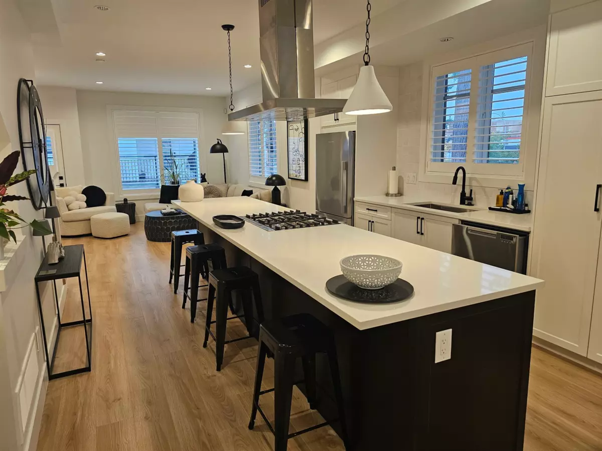 South Village, 5 year new building .Outside unit with plenty of windows ,on the quiet side facing 23 A Avenue. Featuring a spacious wrap around yard fully fenced . Great family home with 3 bedrooms and 3 bathrooms . Lots of high end upgrades air conditioning, Beautiful large fireplace .gorgeous lite colored quartz counter tops and huge oversize quartz island with seating for 4. Fisher & Paykal appliances.Up graded kitchen venting. Electric blackout blinds and California shutters. Walk to Edgewood elementary and Grandview Heights Secondary. Easy to show and quick possession possible Front and rear decks as well as patio and side yard