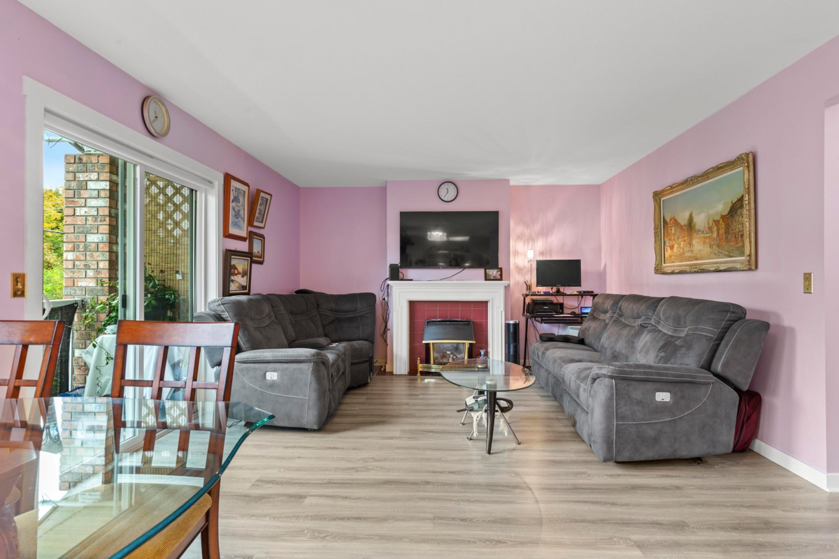 Bright, south-facing, top-floor townhome. This desirable 970 sq ft unit feels even bigger thanks to a large open-plan living area flooded with light from numerous windows. The thoughtful layout provides maximum privacy with two bedrooms on opposite sides, perfect for guests. Enjoy cozy evenings by the gas fireplace in the living room, which features patio doors leading out to a spacious deck. The kitchen and dining area are integrated into the main living space, creating an ideal flow for entertaining. Laundry is conveniently located off the foyer. Storage is easy with an included storage area and access to a residents' workshop. This is a well-maintained, self-managed complex of only 14 units, fostering a quiet, neighbourly atmosphere. One cat or dog (14" at shoulder). Close to amenities.