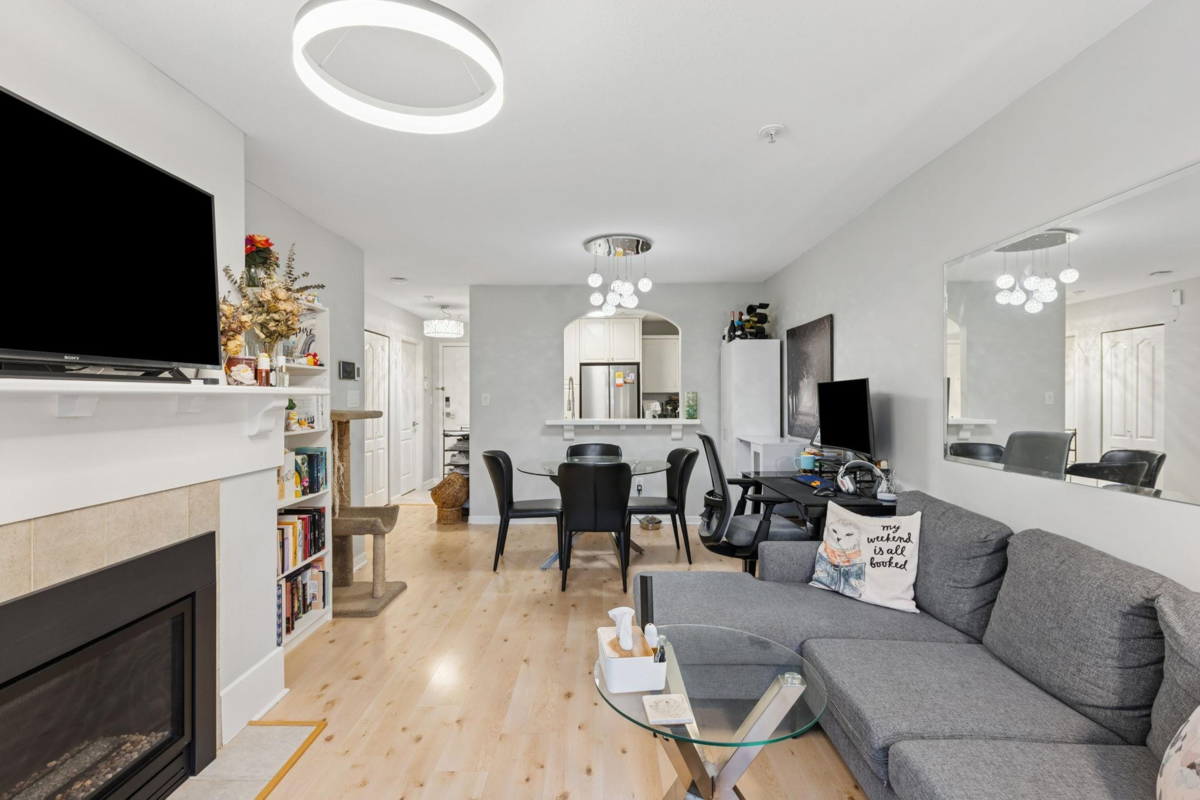 Discover spacious, sun-lit living in this beautifully updated 1 bedroom, south-facing home overlooking the park at The Hamptons. This perfect home features upgraded laminate flooring throughout for ease of maintenance, upgraded kitchen with quartz countertops and stainless-steel appliances, and new bathroom vanity. Cozy up by the gas fireplace with remote control, and enjoy seamless smart-home comfort via electronic thermostats you can manage with your phone. Step outside to a rare bonus of over 200sqft private fenced patio—ideal for quiet mornings or evening entertaining. In-suite storage space and one parking included. Just steps to the Dyke trail, Park, and Oval for effortless outdoor living. Open House Sunday Nov 30th 2-4PM