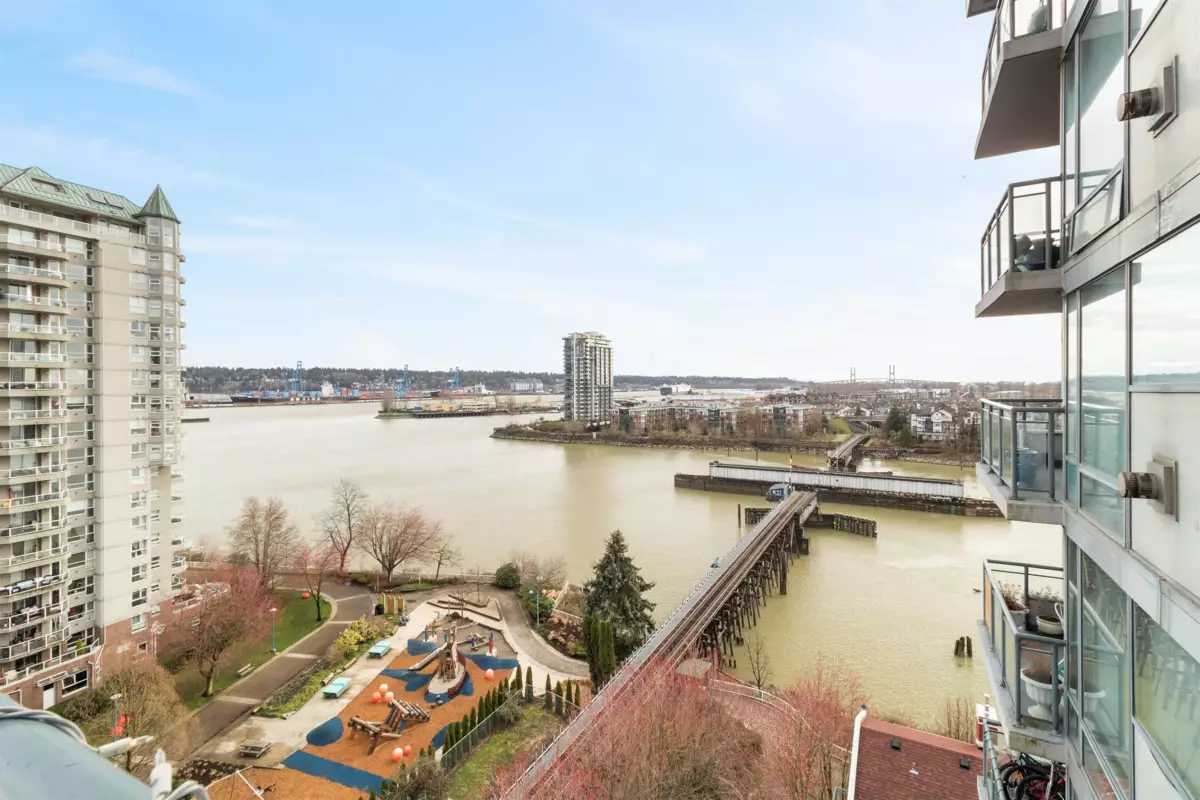 Incredible value in the heart of the Quay! This spacious 1,300 sq. ft. 2-bedroom, 2-bath corner unit on the 11th floor offers sweeping Southeast-facing views of the water and city from every room. The bright, open layout features a refreshed kitchen with an induction stove and plenty of space to entertain. Lovingly maintained and move-in ready, this home checks all the boxes. Enjoy resort-style amenities including an indoor pool, gym, sauna, and library—plus strata fees that include natural gas and hot water. Located right along the waterfront with direct access to Quayside Park, the riverwalk, dog parks, shopping, dining, and just a short stroll to the SkyTrain. This is one you don’t want to miss—book your showing today!