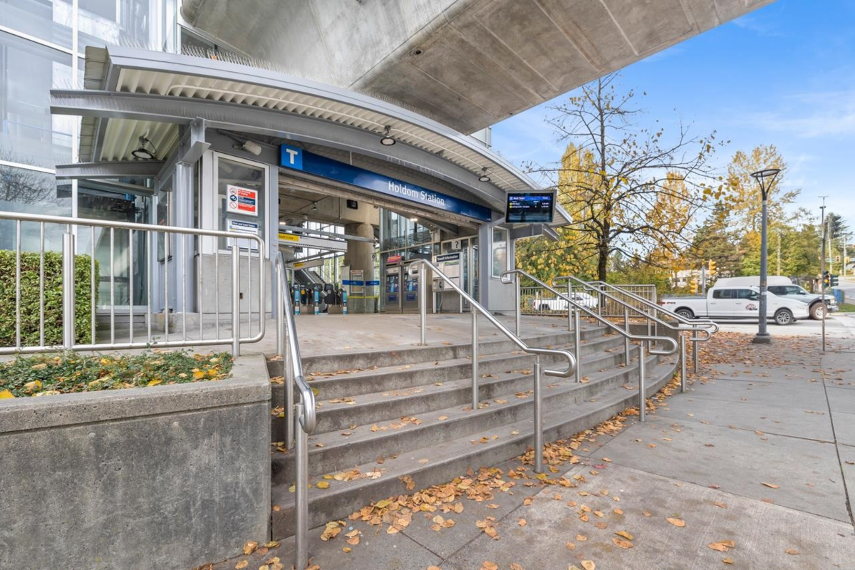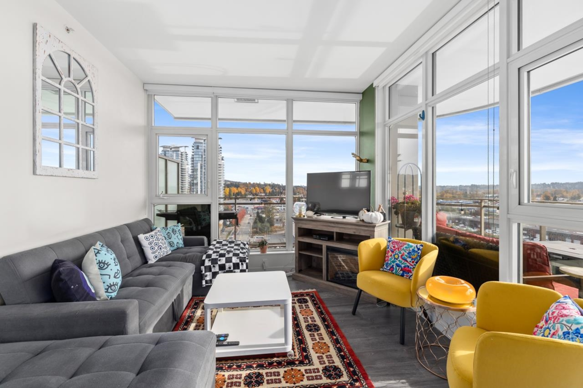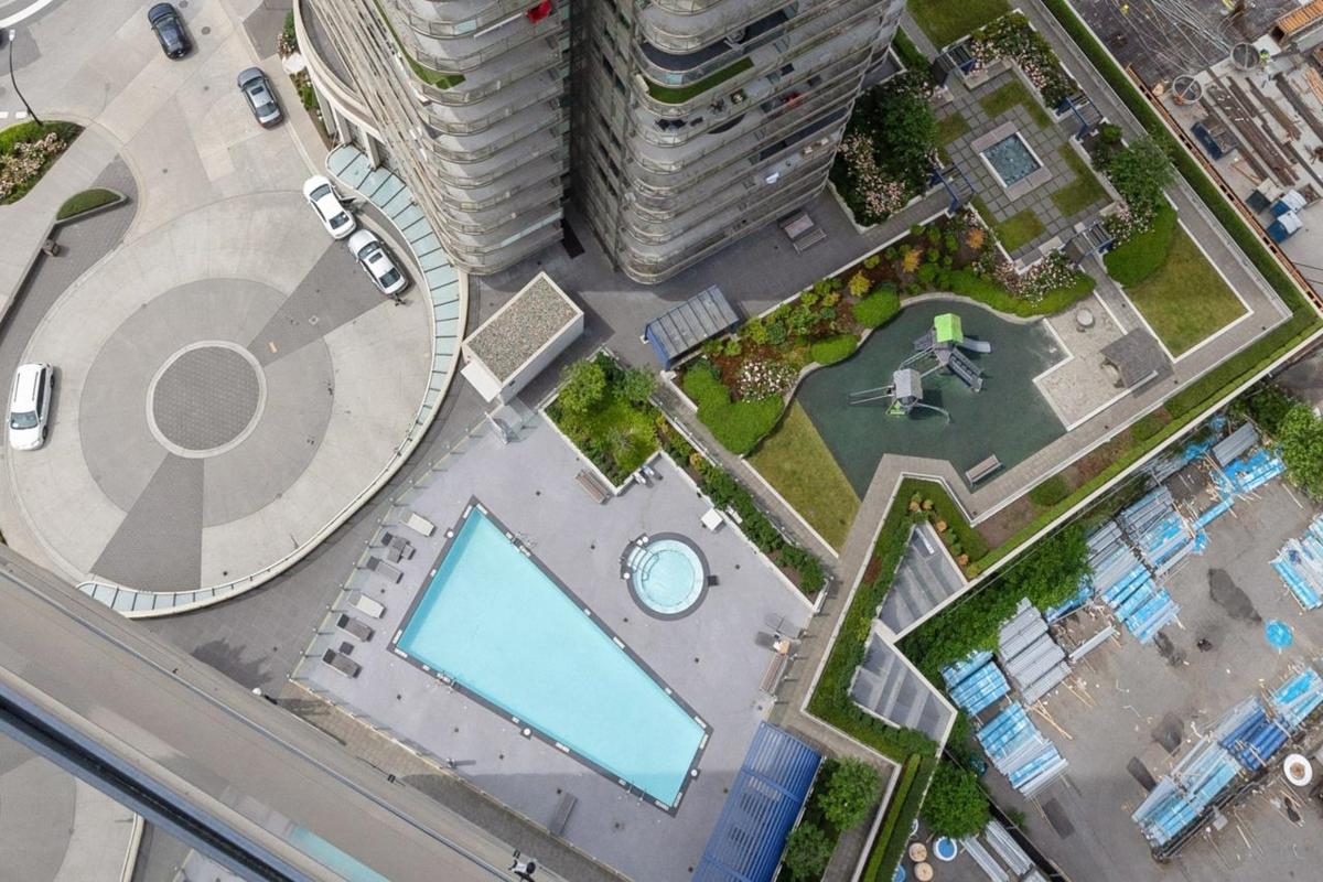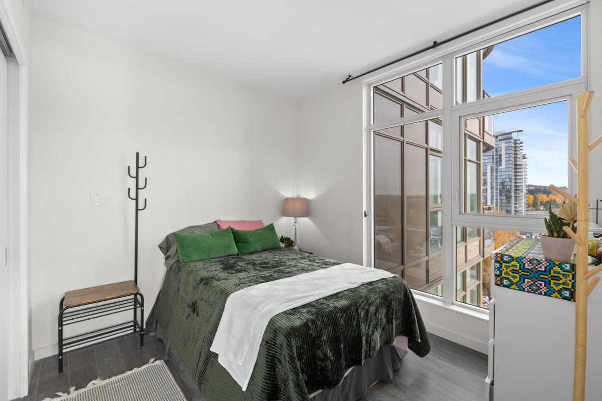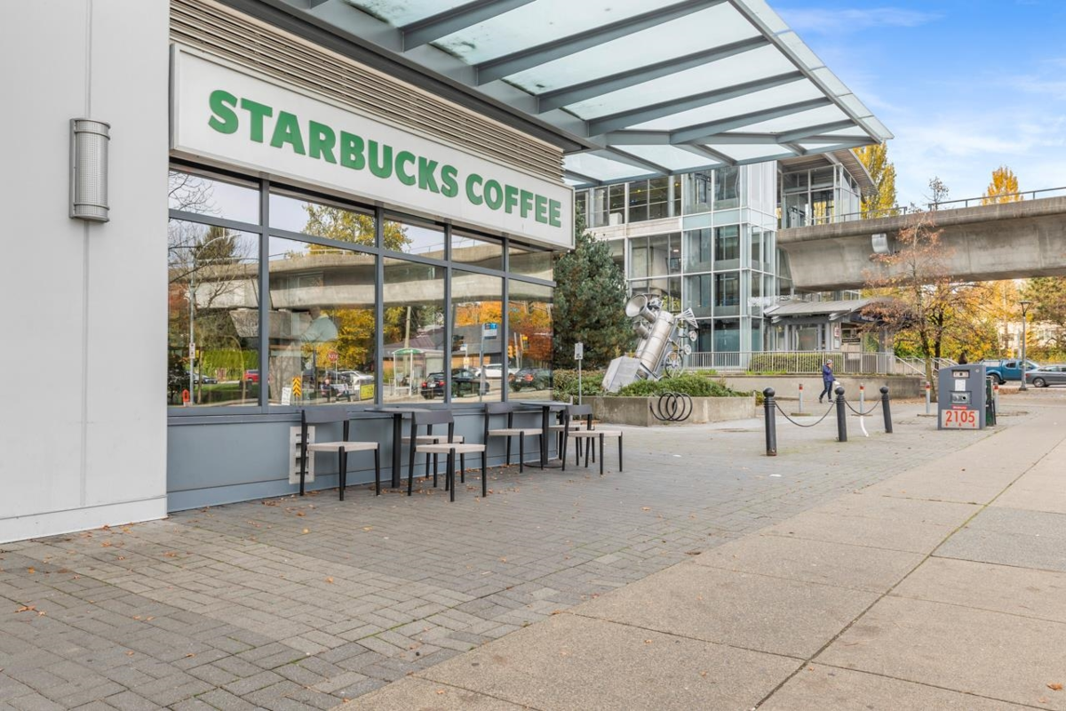 Welcome to Etoile, where modern elegance meets effortless Brentwood living. This rare 2 bed+ den, 2 bath corner home invites you to live both indoors and out, featuring 879 sqft of refined interior space and an extraordinary 377 sqft wrap-around balcony. Soaring ceilings and wall-to-wall windows frame sweeping city and mountain views, while a sleek kitchen with Bosch appliances and a waterfall island anchors the home. The den offers the perfect work-from-home retreat. Unwind in spa-inspired bathrooms or entertain under the stars on your heated terrace. Resort-style amenities include a fitness centre, steam rooms, outdoor pool, hot tub, and concierge. Steps to SkyTrain, Brentwood, parks, cafes, restaurants, and Whole Foods. Urban living, elevated.