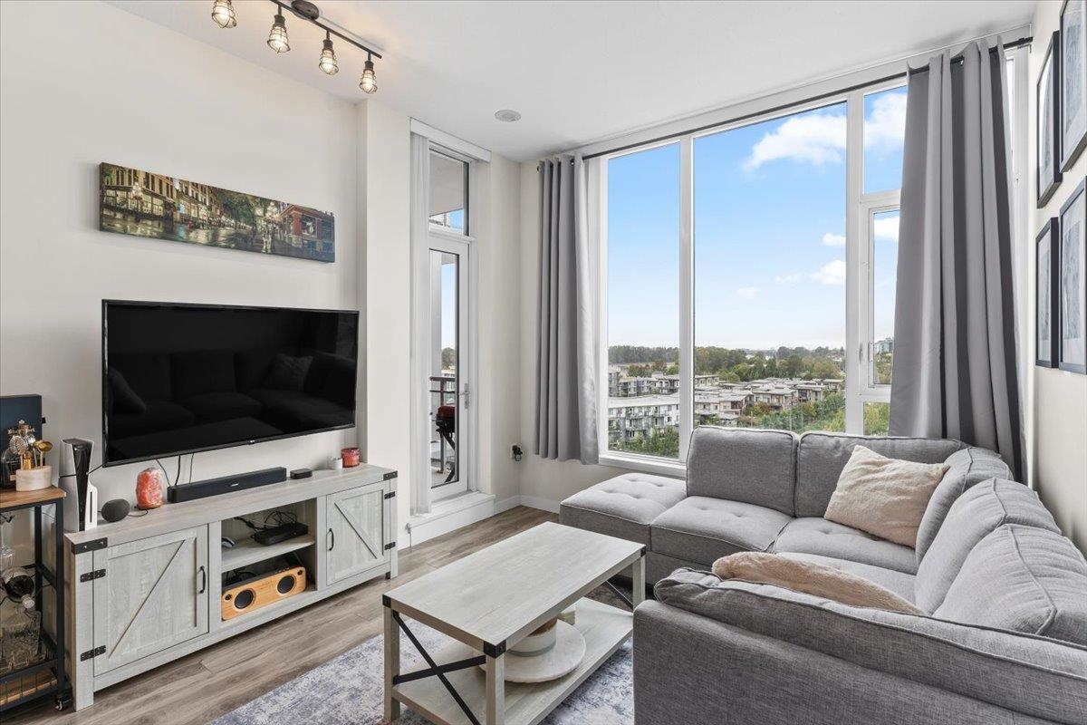Sub-penthouse 2 Bed + Den at Rhythm by Polygon. The 1O' ceilings and unobstructed west-facing views of the Fraser River make for great sunsets on the balcony. Bright, open layout with separated bedrooms, modern kitchen with quartz counters, s/s appliances, and ample storage. Den makes an ideal office or nursery. Enjoy top-tier amenities at Rhythm Club: A/C fitness centre, lounge, meeting room, and courtyard. Kid-friendly community steps to parks, playgrounds, Fraser River Trail, and 2 blocks from River District Town Centre. 1 parking, 1 locker. Easy access to Burnaby, Richmond & New West. Schools: Cook Elem. & Killarney Sec. OPEN HOUSE: SUNDAY, NOV 30, 12-2PM.