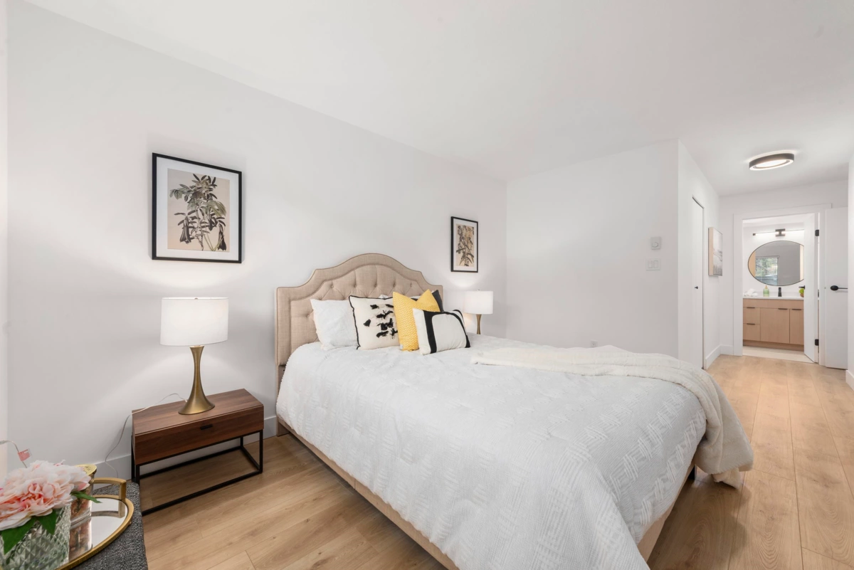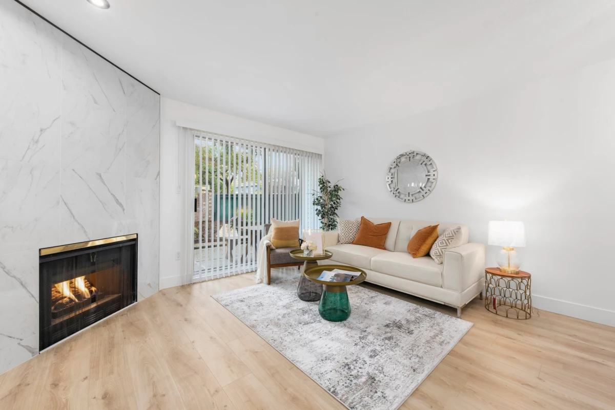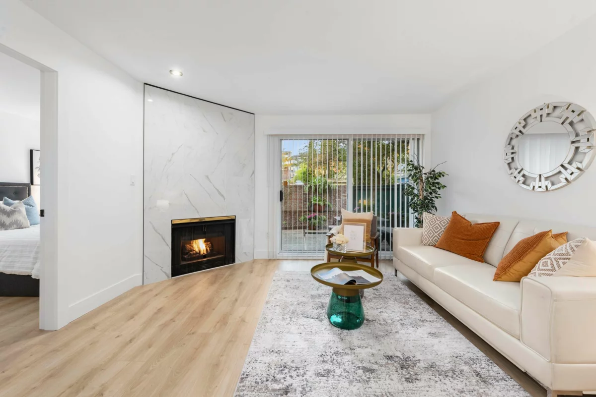 Absolutely STUNNING 2 bed/2 bath home in the heart of METROTOWN with a LARGE PRIVATE PATIO and just a 3MIN WALK to the SKYTRAIN. This home boasts nearly 1000 SqFt of living space & has been FULLY RENOVATED. The main living space features stylish WIDE PLANK flooring, all NEW LIGHT FIXTURES throughout, a beautifully retiled GAS FIREPLACE, plenty of room for large dining and living room furniture, and a STUNNING KITCHEN with all NEW APPLIANCES, including a NEW WASHER/DRYER and HOT WATER TANK. The primary bedroom can easily accommodate a KING SIZE BED, has a large WALK-IN CLOSET, and 4-piece ensuite. Just steps to BURNABY SOUTH SECONDARY School, a 3min walk to ROYAL OAK Skytrain, walking distance to METROTOWN MALL, and easy access to HWY 1 & MARINE DR. Comes with PARKING & STORAGE. PETS okay!