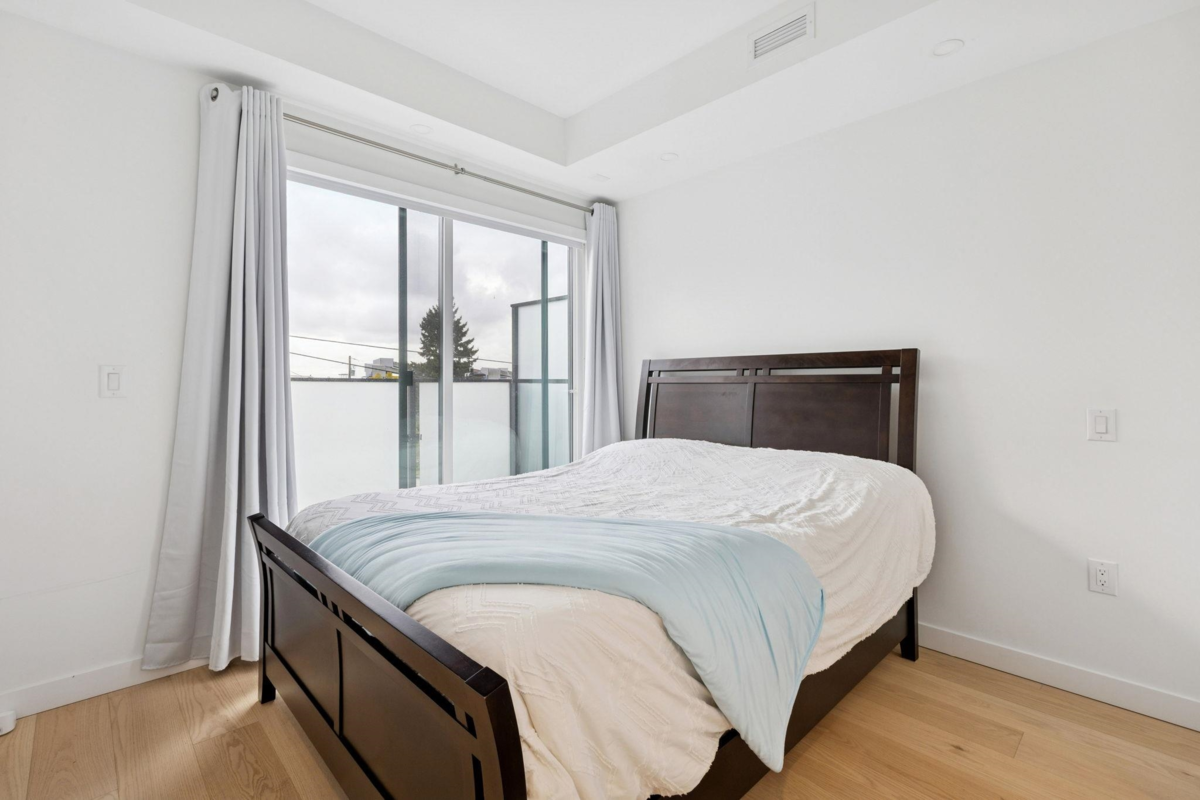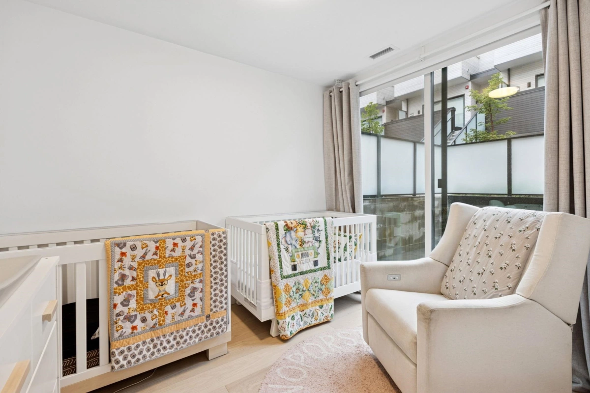 Welcome home to your bright, South facing, front row townhome in Moodyville’s coveted Morrison On The Park w/ beautiful top floor city + water views and impressive upgrades. You’ll love the contemporary design and efficient use of space in this home. The front patio welcomes you and your guests into your open concept Living/Dining area and beautiful chef’s kitchen complete w/ premium SS appliance pkg. Also on the main floor is a multi purpose bdrm or office/den space with the primary and third bdrm on the upper floor. The lower level offers a perfect Rec Room for visitors, WFH space or gym w/ direct access into the parkade and nearby parking stalls + 382 SF storage ROOM w/ endless possibilities for all the gear + tools! $150K+ spent in upgrades incl. AC, XL Storage Rm, HW floors + 2nd pkg!