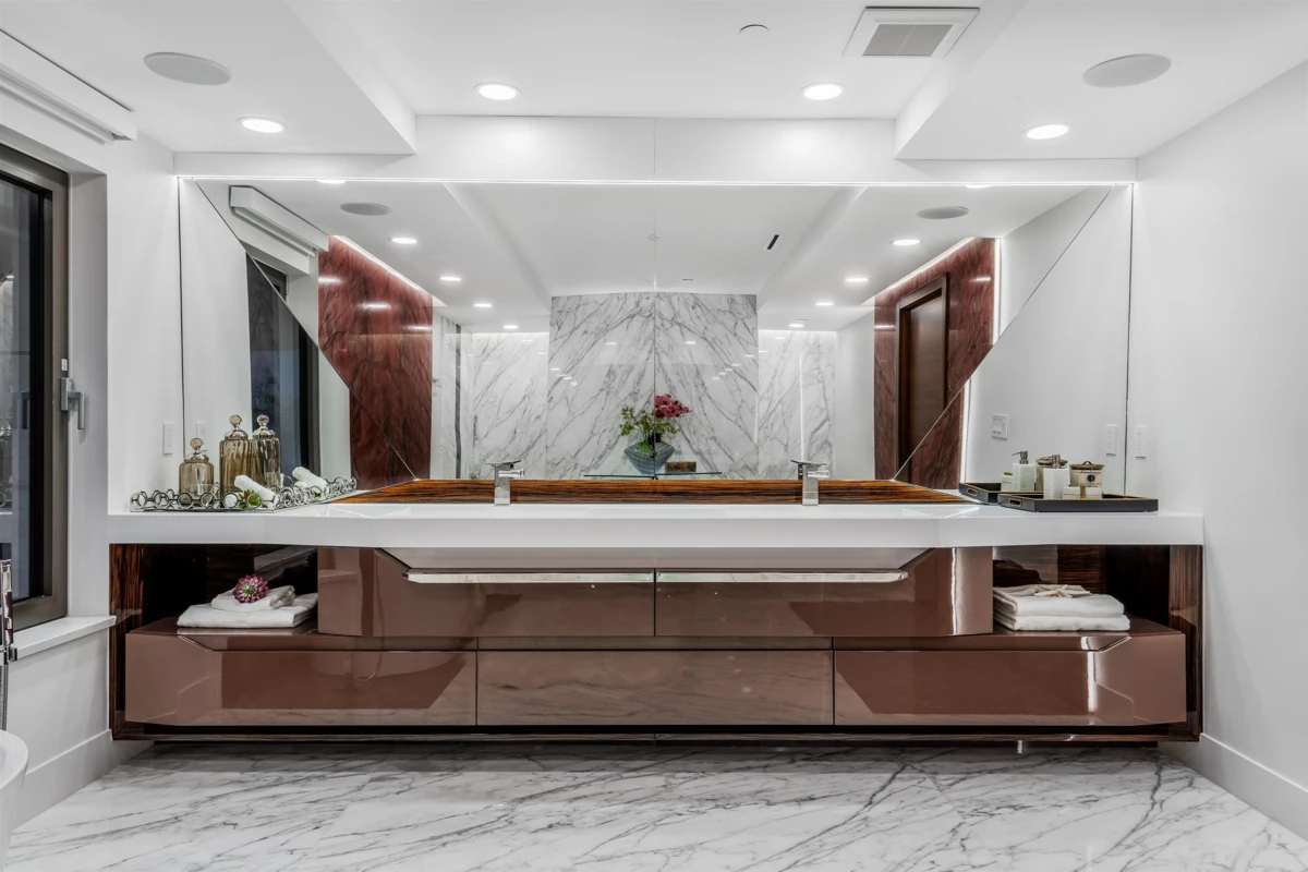 Chateau Crestline is a European inspired luxury residence situated on a .52 acre property in West Vancouver’s most exclusive British Properties enclave providing spectacular views of the ocean, Stanley Park and downtown skyline. Experience approx. 10,000 sf of luxurious living space providing a sophisticated lifestyle that combines timeless Italian sophistication and modern elements that blend seamlessly to create an international masterpiece. Features include Italian marble floors, Fendi kitchen, a private elevator, Control 4 automation, home theatre, an entertainment lounge with wet bar, 600 bottle wine display, private office, yoga studio w-spa and heated driveway. Designed by world famous Marque Thomson, built by award winning Homes by Valentino and interior furnishings by BFJ Design.