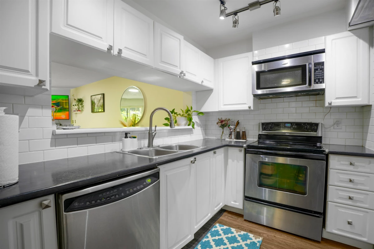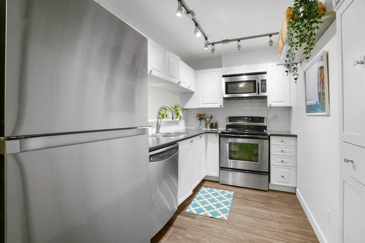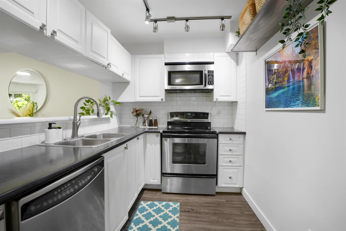 Offering just around 1,000 sq. ft., this bright and beautifully maintained 2-bedroom, 2-bath home is tucked away on the quiet side of the building and features a large private deck overlooking the courtyard. Recent updates include flooring, lighting, blinds, fresh paint, and stainless-steel appliances. The open-concept layout showcases a cozy gas fireplace in the living room and an extra-large primary bedroom with a versatile nook, perfect for a home office . Enjoy the convenience of 1 parking stall, a storage locker, and access to a bike room. Surrounded by greenspace, this well-kept building is ideally located within walking distance to schools, transit, shopping, parks, the Fleetwood Rec Centre—and just steps from the future SkyTrain station. Don’t miss this exceptional opportunity!