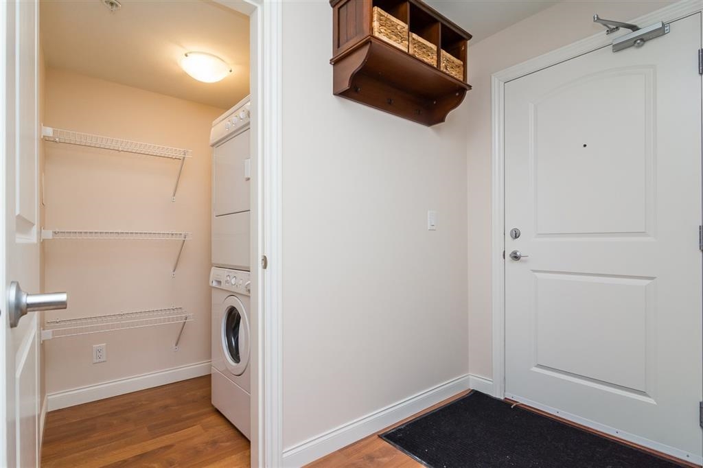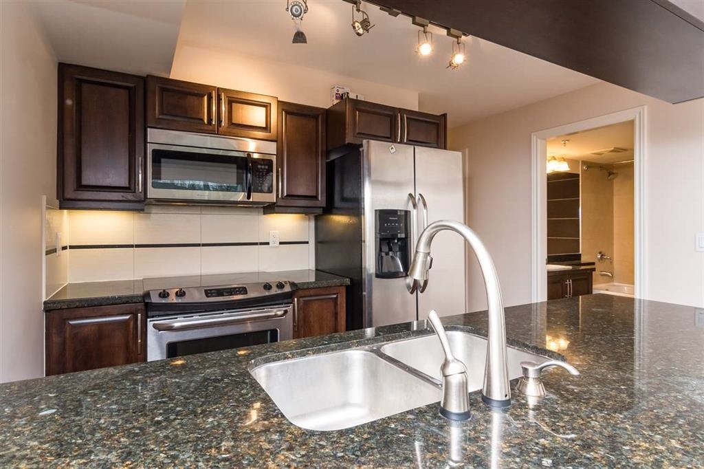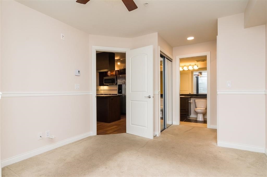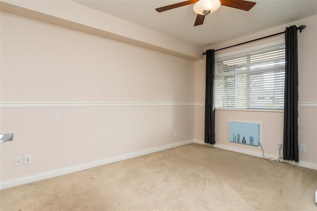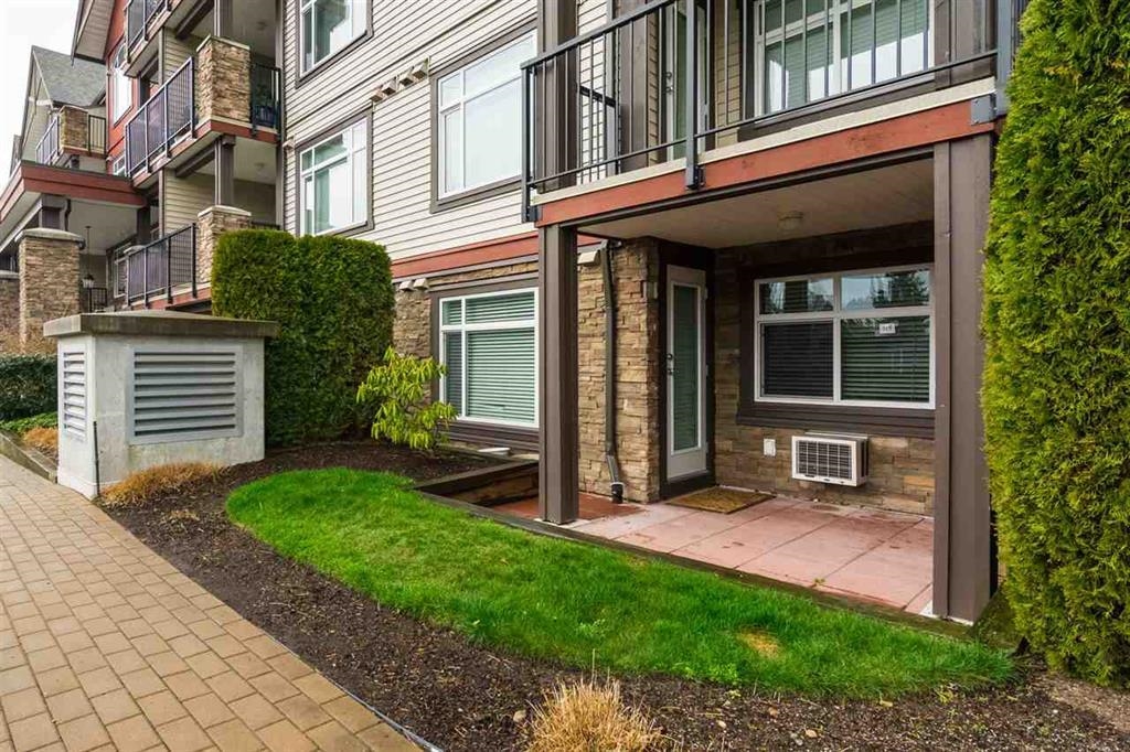 Quick possession possible! Welcome to Madison Crossing by Quadra Homes! This beautiful 1 bedroom + Den ground floor unit has bright southern exposure with lots of windows and your own private entrance! Open concept kitchen with cherry cabinets, stainless steel appliances, granite countertops & a large island. Perfect for entertaining! Master bedroom with ensuite. Use the den as an office or 2nd room! Large outdoor patio, great for those with kids or pets! In-wall air conditioning included. Located on a quiet street and near Willowbrook Mall, schools (Nicomekl Elementary & Global Montessori), transit, near future Skytrain Station, restaurants and parks. Rentals allowed, no restrict/. Perfect for first time buyers or investors!