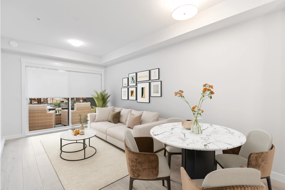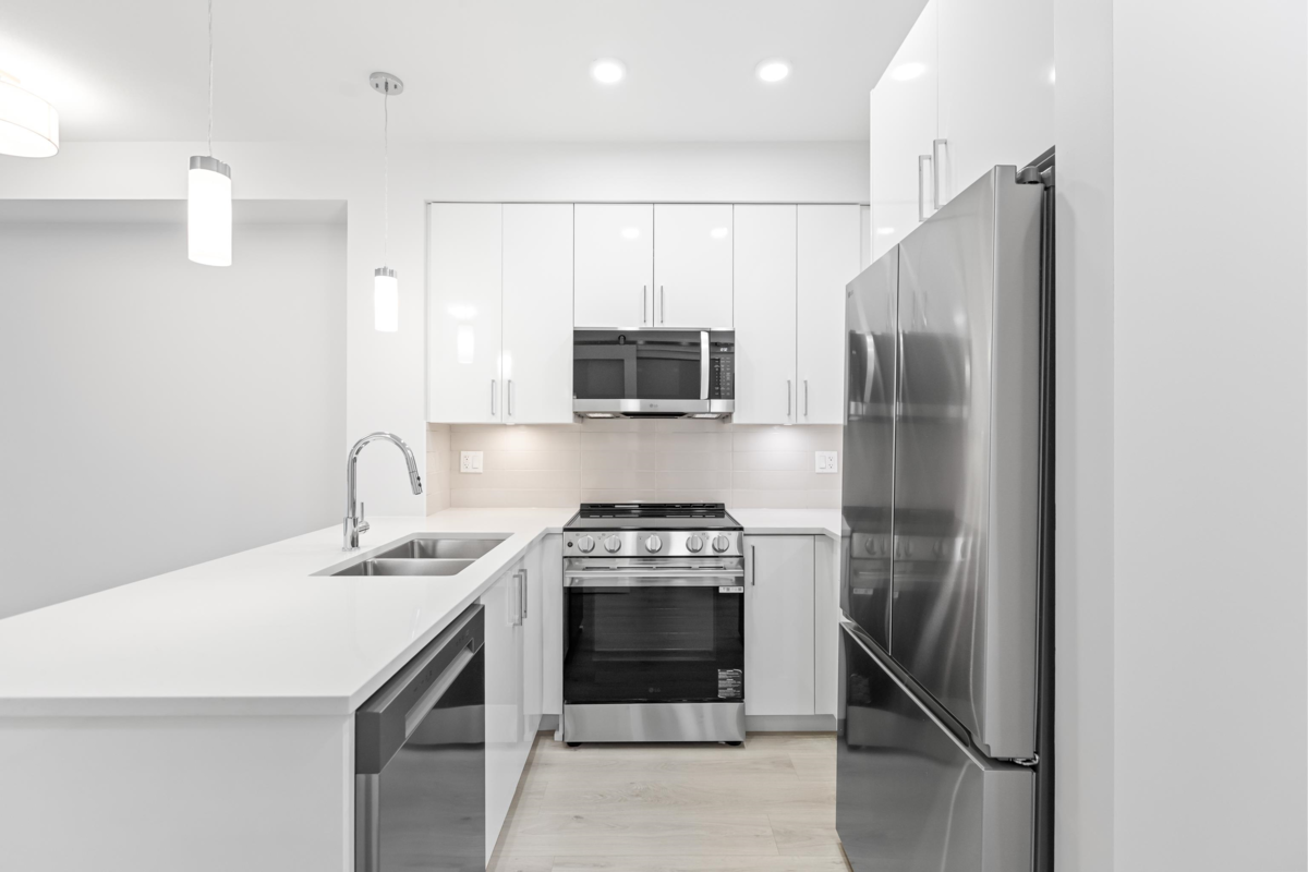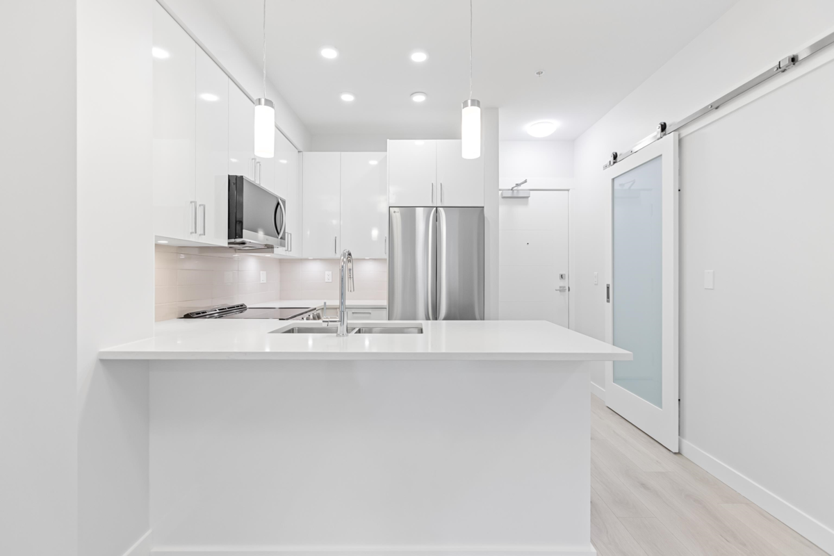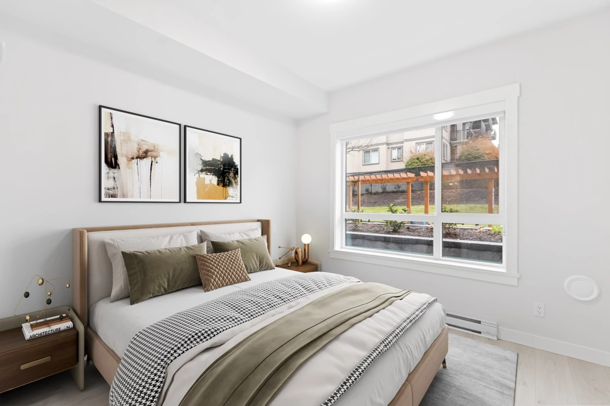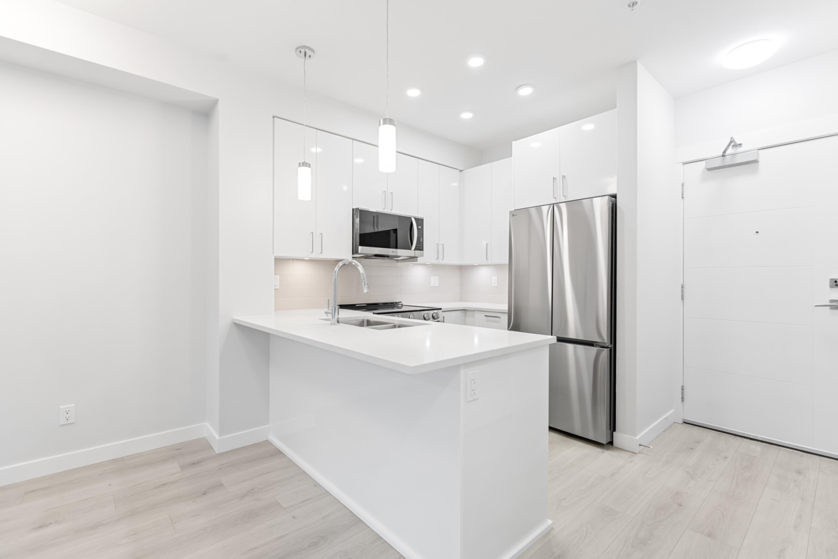 YOUR OPPORTUNITY TO OWN A BRAND NEW CONDO! This Jr. 2-bedroom ground floor unit at Abbotsford's JACOB Complex is brand new and move-in ready at the end of Summer. Situated nearby Historic Downtown Abbotsford and the Rail Disrict - everything you need is in walking distance or a short drive: Mill Lake Park, Seven Oaks Mall, Abbotsford Centre, UFV, Costco and 4 minutes from all levels of school. Designed by reputable Redekop Faye; the JACOB is timeless and low maintenance; with manicured courtyard 'The Gathering Place' and family friendly playground. Unit 115 includes: high end appliances, upgraded Laminate flooring throughout main living space and both bedrooms, 1 parking (truck size), 1 storage unit, and is in the "Light" Colour Scheme, with easy first-floor access for pets and kids!