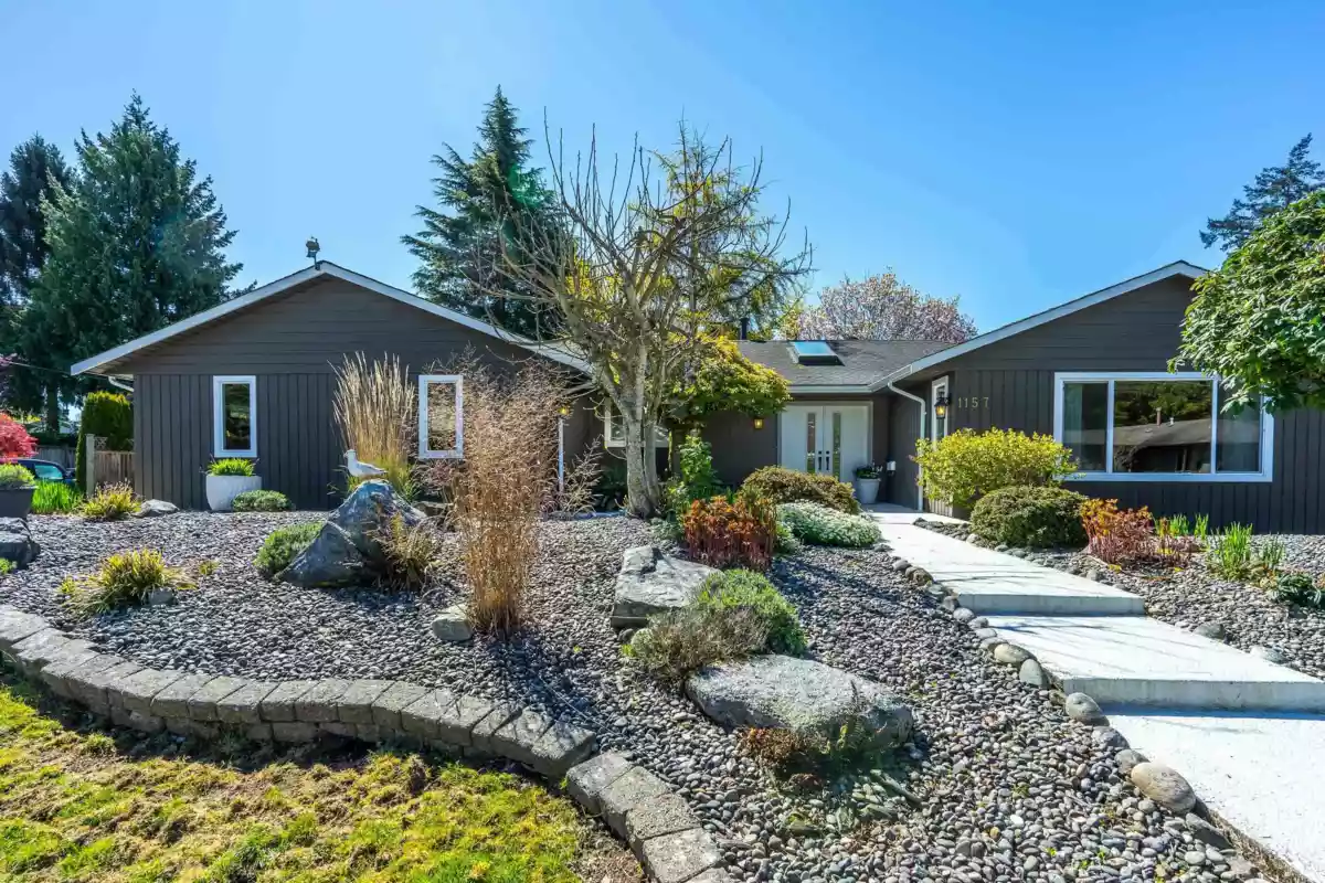 Sprawling Rancher in the highly sought after Village!!This special home has 2488 sq.ft of living space, hardwood flooring in formal living/dining areas, huge family room with French doors leading to garden patio, NEW contemporary kitchen (quartz counters, 6 burner gas range, s/steel appliances) opens onto large eating area with more French doors to backyard!Three large bedrooms, primary bedroom has a third set of French doors to the private south exposed backyard, four piece ensuite and walk in closet. Engineered wood flooring in remainder of home, vinyl windows new front doors! Garden is a delight-enjoy the sun year round with both south and western exposure,large patio offers full privacy, veggie garden with raised beds too!Ideal home for down-sizers or a family set on a 9608 sq.ft lot!