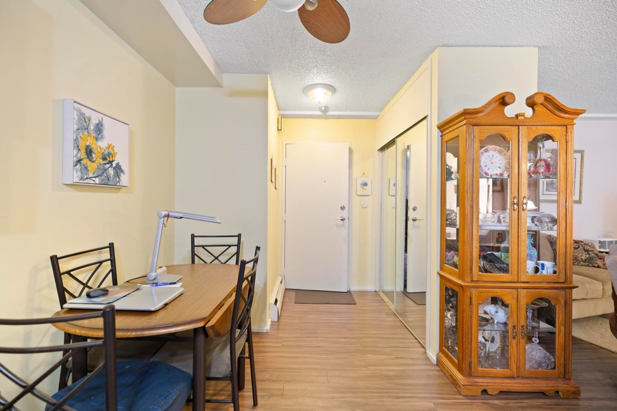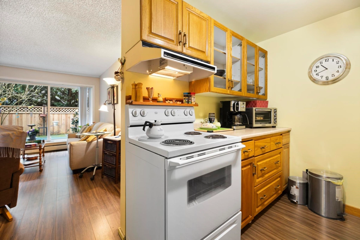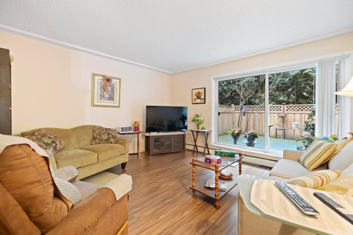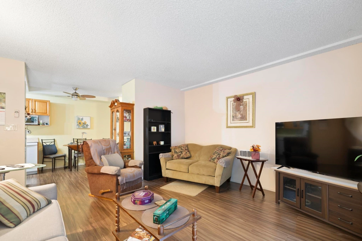 Discover this spacious & cozy ground-floor 1 bed home in the sought-after Sussex Square complex. Upgrades to the complex in recent years include new windows, balconies, patio fencing, building exterior, repaved parking lot and plumbing for the buildings. This south-facing unit features a large quiet patio perfect for outdoor relaxation. Inside, you'll find a functional layout with a generously sized bedroom & an additional storage room for added convenience. The property is leasehold title, with a maintenance fee covering property tax, heat & hot water. While the complex has a no-pet policy, it offers excellent rental returns, with 2 levels of schools nearby. Enjoy easy access to the Railway Trail, community center, and a short drive to the airport, Vancouver, and shopping destinations.