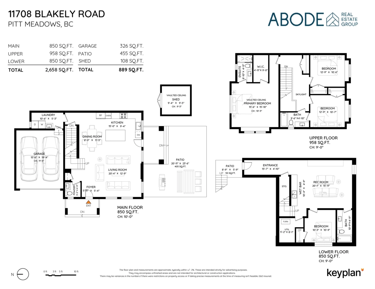 Welcome home to the perfect Duplex! Enjoy your open concept living space & spectacular kitchen with quartz countertops, S/S appliances, large entertainers island, 10 ft ceilings & huge windows. Upstairs, your primary bedroom features vaulted ceilings, large walk-in closet & impressive ensuite. Two more well sized bedrooms (one w ensuite) top it off. In the basement, you have a large rec room, wet bar, bedroom & full bath, and is set up for in-law or Nanny suite w/separate entrance. Lots of parking including a Double garage w 11.5” ceilings. Enjoy your fully fenced & functional yard spac! Low maintenance turf, lots of sun & a spectacular 100 sqft entertainment shed in the yard all ready to go! Easy access to shopping, recreation & transit!