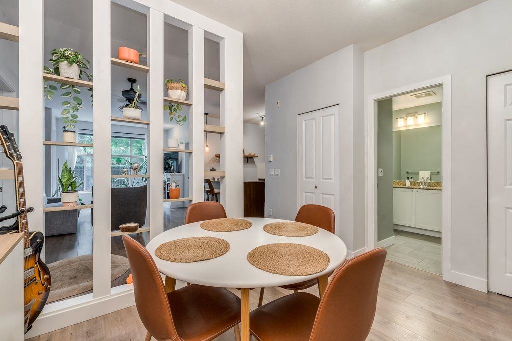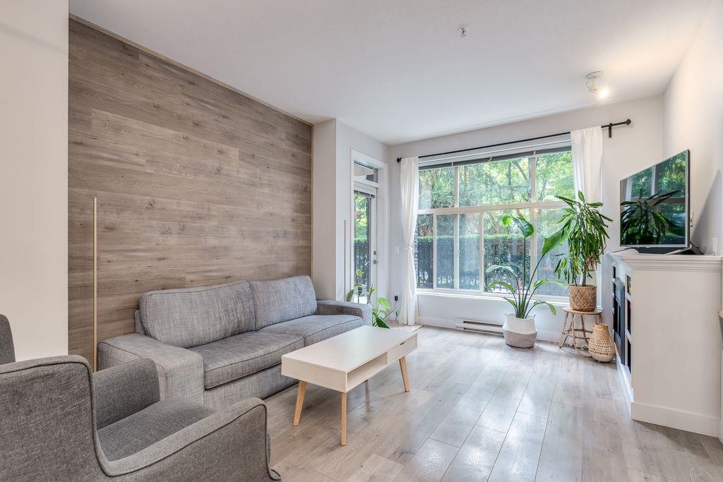 Welcome to your new home! This ideally situated, immaculate ground floor 2 bedroom 2 bathroom unit with private entrance is the perfect starter, downsizer or investment property! Recent upgrades include laminate flooring throughout, granite counters, custom lighting, custom electric fireplace, custom dining room wall feature, paint and more! The ground floor location offers a huge gated balcony with private street entrance just half a block to the newly refurbished Gates Park and all the shopping, recreation, restaurants and transit Downtown Port Coquitlam has to offer. Comes with 1 underground parking spot plus gym and a theatre room! Excellent quality building, very well run strata, everything you need in one convenient location! Book your private showing today!