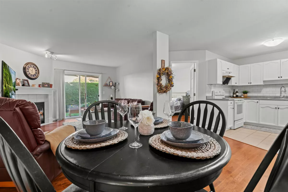 Well-maintained 2 bed, 2 bath ground-floor townhouse in desirable Little Mountain! Freshly painted with a functional layout, this bright home offers spacious rooms, no stairs, and a cozy gas fireplace. The kitchen features white cabinetry, tiled backsplash, and stainless steel appliances. Enjoy the private patio—perfect for outdoor dining or relaxing. The large primary bedroom includes a 2-pc ensuite with walk-in shower. Includes a full 4-pc bath, laundry room with shelving, and extra storage. Located near walking trails and in a well-maintained complex with a clubhouse and workshop. 2 pets allowed. Quick possession available—don’t miss this one!