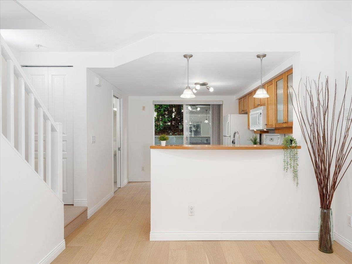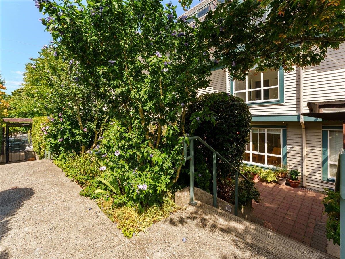 Sought after St. David’s Landing in vibrant & popular Lower Lonsdale neighbourhood! This Cozy & Chic 2 bed, 2 bath Townhouse provides a smart open-concept, well-designed floorplan w/ an abundance of natural light featuring a cozy gas fireplace. Enjoy ample room for cooking in the well-equipped kitchen, which flows effortlessly to one of the two patios for BBQing and entertaining! Upstairs, has a spacious primary bedroom w/ private Juliet balcony surrounded by privacy trees and Mtn views. Just down the hall, the 2nd bedroom for a cozy children's room, guest room or a functional home office. Recently updated flooring, paint, and blinds. Well-maintained building includes 1 parking, 1 storage, & pets allowed. Open Nov 29 Saturday 2-4 p.m.