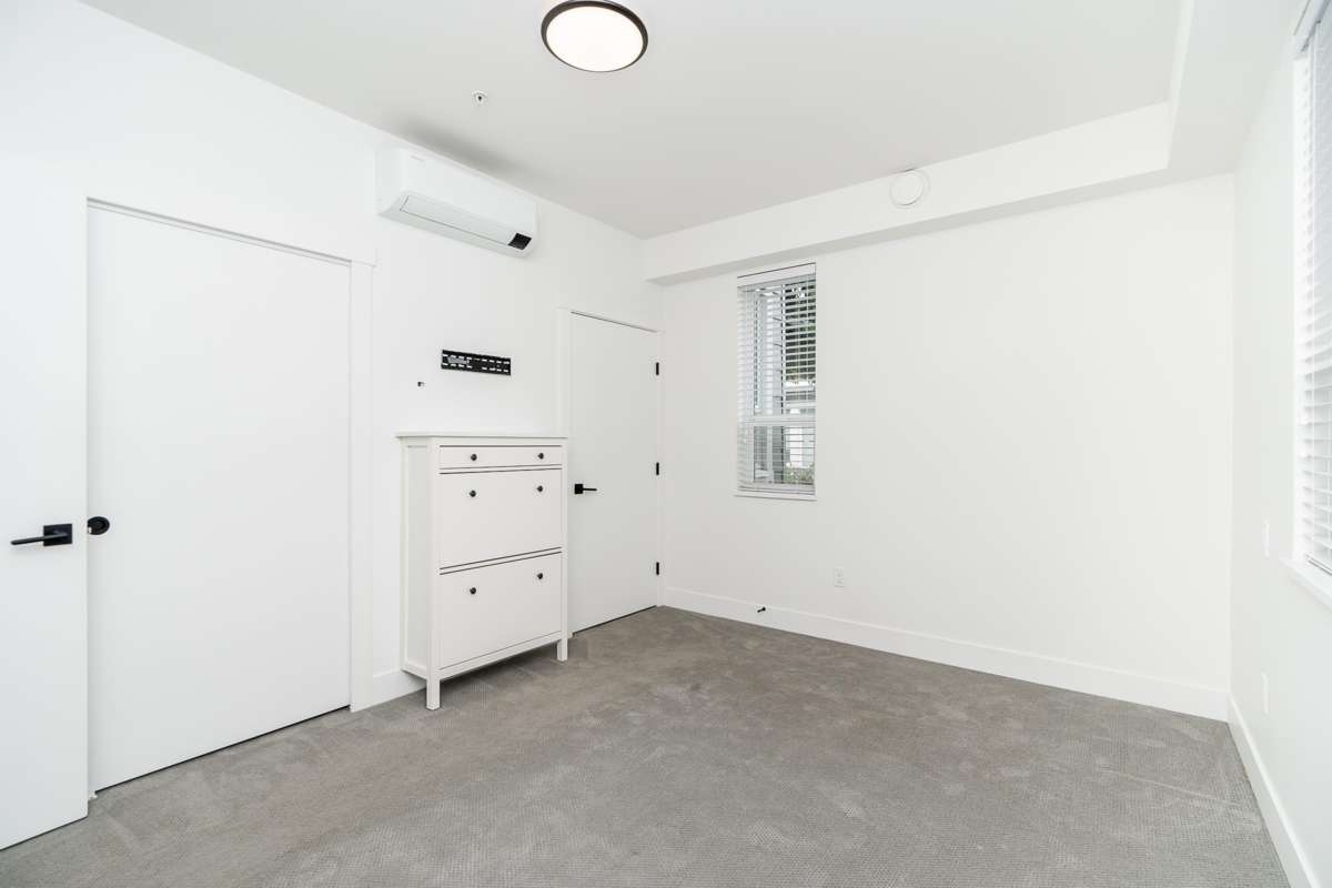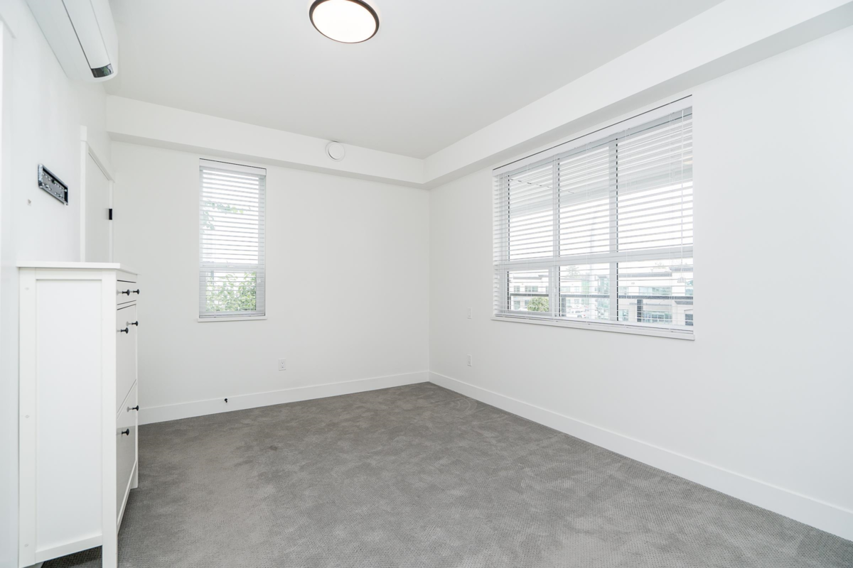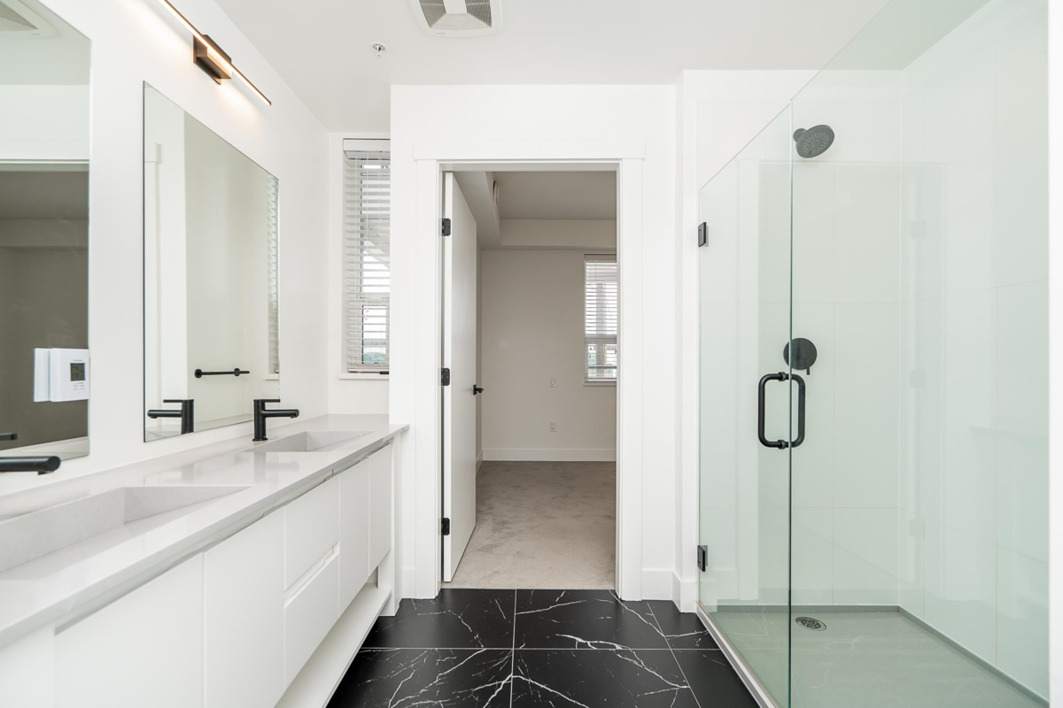 AIR CONDITIONED, 1 bedroom with 2 FULL BATHROOMS at Montrose Square! This unique plan offers 762 sqft of bright & spacious living space w/modern finishings throughout. Enjoy an open plan w/ a functional kitchen with quartz counters, counter seating for 4, & ample storage w/ceiling height cabinetry. Living is generous & opens to a large patio w/the convenience of courtyard & street access. Primary has a spa-inspired ensuite w/thoughtful finishings including double vanity & a frameless glass shower. Large laundry room w/ space for storage. Locker + Bike Locker. Enjoy a large pedestrian plaza, private courtyard w/ water feature, all steps away from the new POCO Community Centre + walkability to transit including WCE, shopping, amenities, trails, groceries. Some photos virtually staged.