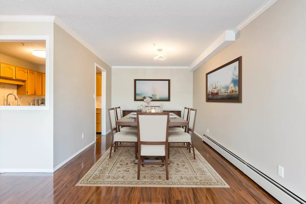 Welcome to Fernwood Manor! This well maintained 2 bed, 1 bath unit is over 1000 sq ft, 1st floor but not ground level. Recently painted through-out, inc doors, mouldings & ceilings, it has some new light fixtures & new plugs, switches & outlet covers. The kitchen has S/S appliances, oak cabinets & ample counter space.The main living space is bright due to the balcony & sliding doors. In-suite laundry adds to the convenience. A big, private storage locker is situated beside the assigned parking stall. This 55+ complex recently replaced the elevator, hallway carpeting & hot water tank, it has 2 guest suites, a workshop, exercise room, pool table, meeting room & library. The strata fee includes heat, hot water & electricity. Complex is located in a quiet neighbourhood close to all amenities.