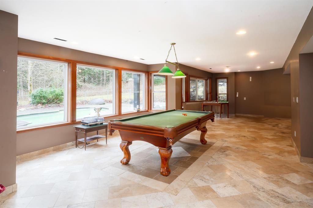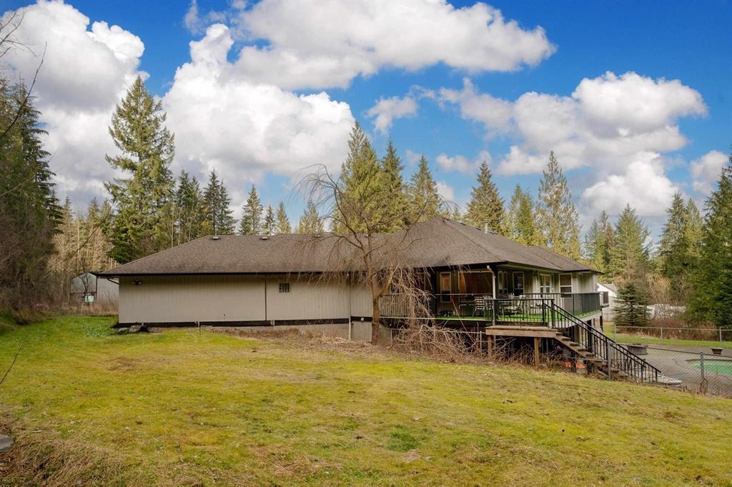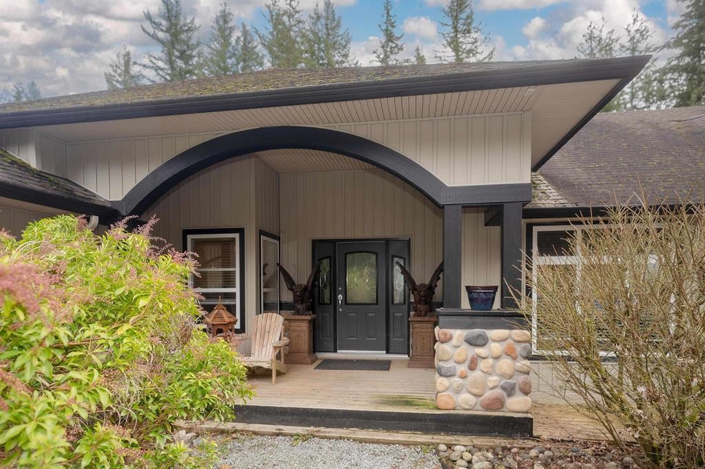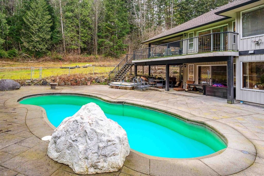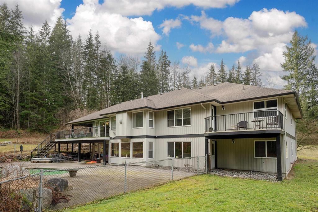 Private and gated Acreage Set just right with an Amazing 2800sf 5 bedroom Rancher with a 3 car garage and a FULL BRIGHT WALKOUT basement (5600sf total!) that you gives you level access to your inground pool! 2x6 construction and Crown mouldings throughout with coffered ceilings. The basement has 2 bdrms, roughed in for a full bath, media room, bar area, cold room, workshop and a huge open rec room! All this on a very private cul-de-sac in an exclusive neighbourhood! Maple Ridge/Mission border in Stave Falls.